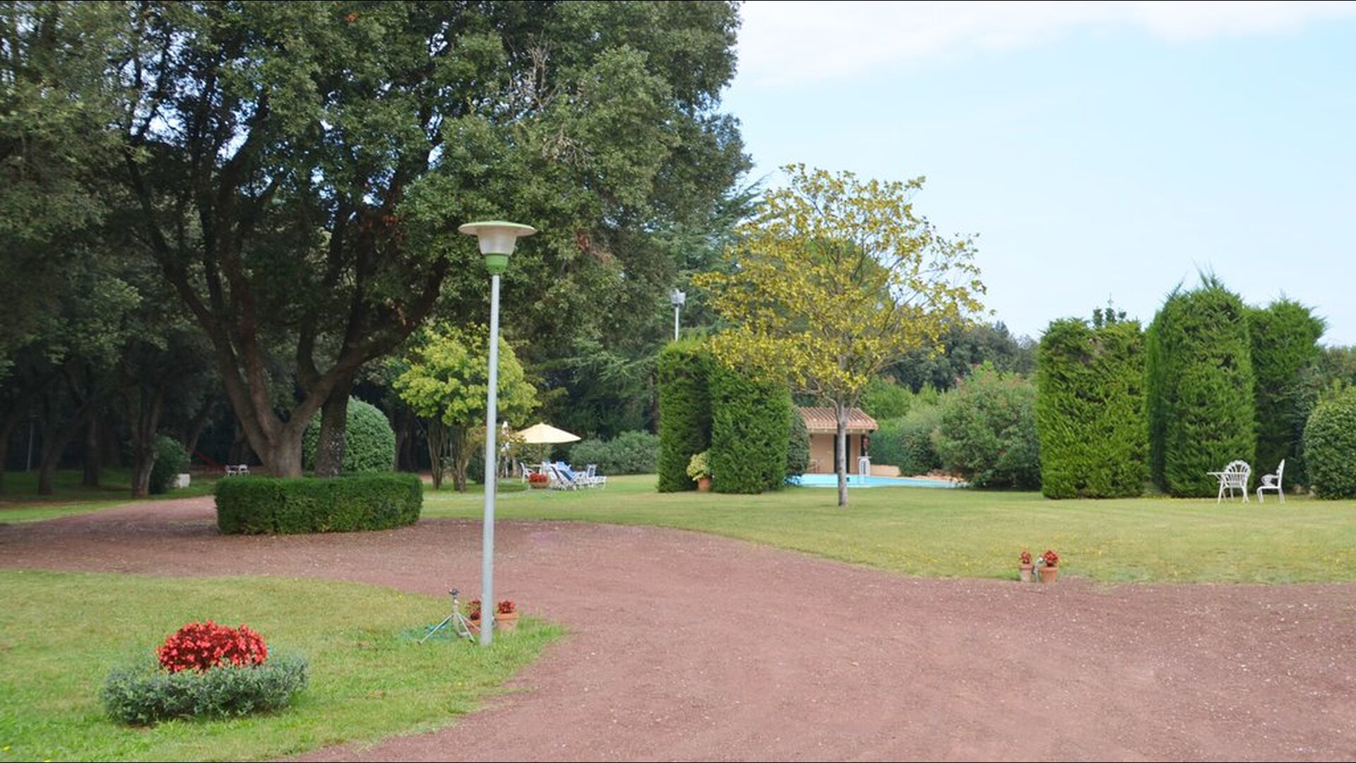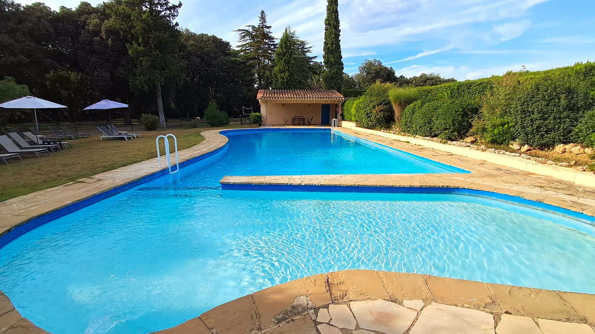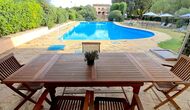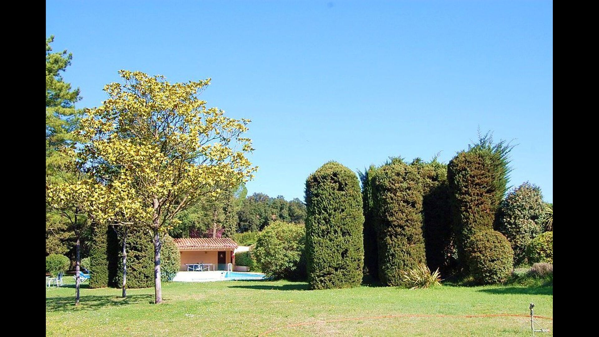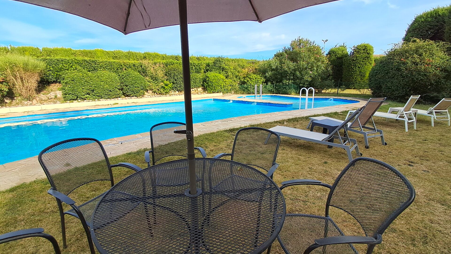 L'jardí enorme ocupa una superfície de 8000 m2 i té moltes instal·lacions exteriors diferents. Una d'aquestes instal·lacions és la gran piscina on refrescar-se durant els molts dies de calor. Hi ha diverses gandules i taules i cadires on es pot passar temps relaxant-se i prenent alguns raigs de sol, alhora que es pot vigilar fàcilment els nens que juguen a la piscina. La zona de la piscina també té dos banys i una nevera situada a la casa de la piscina. Així podreu prendre una beguda fresca fàcilment, sense haver de caminar lluny. També hi ha moltes altres activitats que es poden gaudir durant tot el dia a les instal·lacions de l'ampli jardí com ara la pista de tennis privada, la zona de jocs per als nens amb gronxadors a l'ombra, ping-pong, petanca i fins i tot un petit futbolí privat. corta que té dos objectius. El jardí també té moltes zones d'ombra amb seients i, per descomptat, una granzona de barbacoa, tot un imprescindible per allotjar-se a la bonica i càlida Catalunya.