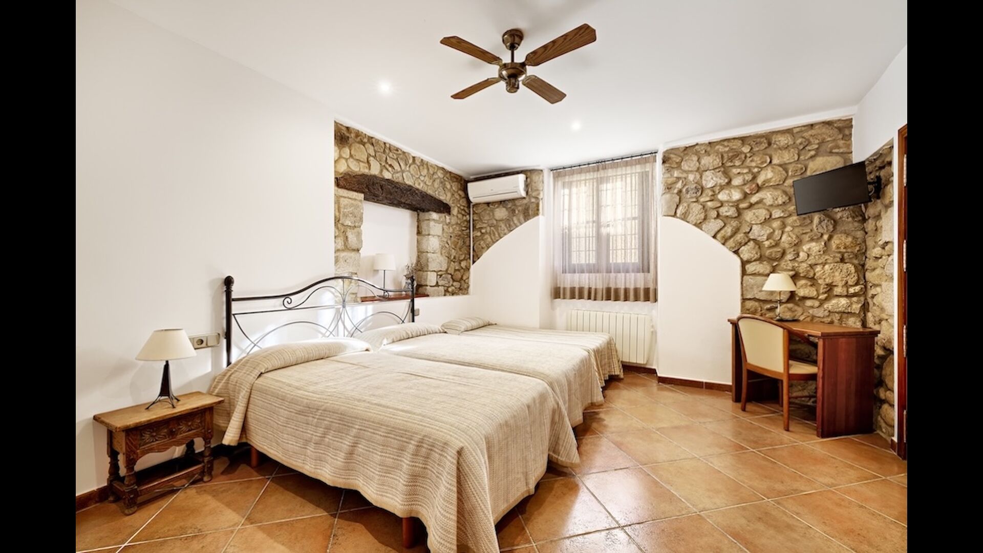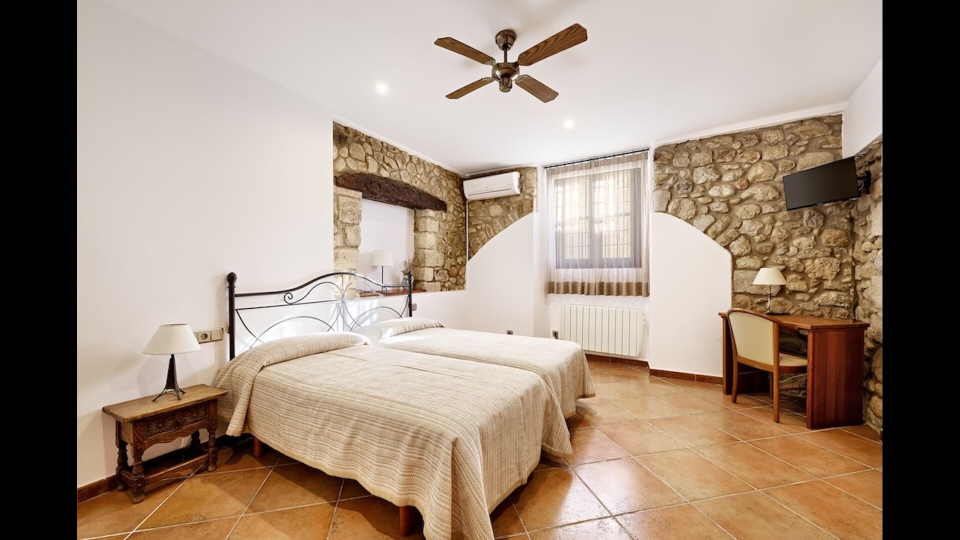La planta baixa de casa Joaquim té2 còmodes sales d'estar, un zona de menjador i una gran cuina. Hi ha un bonic dormitori a la planta baixa que s'adapta a les necessitats de les persones amb discapacitat. A la porta d'entrada hi ha un rebedor amb escales que puja al segon pis. Aquí trobareu 7 de les habitacions ben decorades, totes amb bany privat.