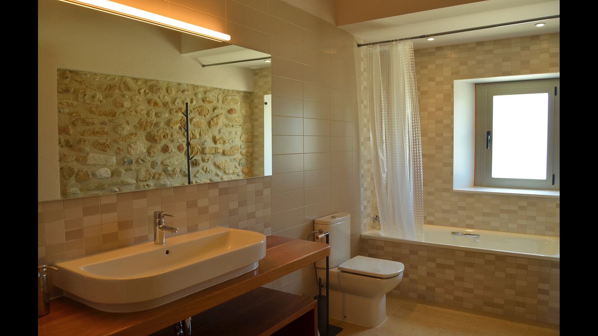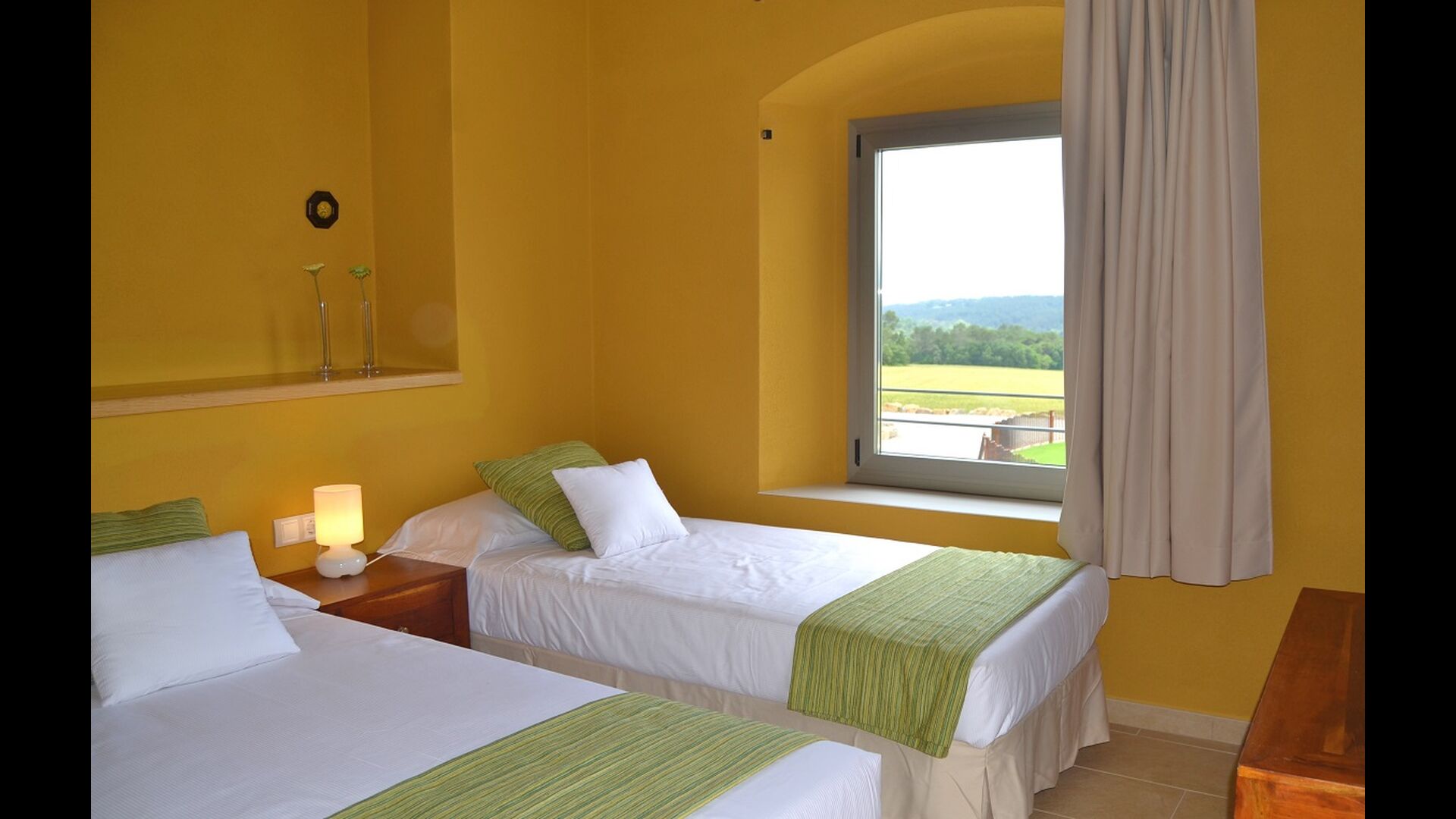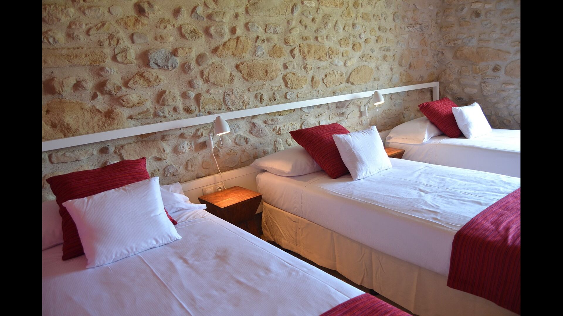 A cada edifici hi ha una habitació per a 3 persones i 4 habitacions dobles. La característica d'aquestes habitacions és que són molt espaioses i modernes. La casa té 6 banys, i com la resta de la casa, són de molt alta qualitat. Les dues cuines de la casa de vacances també són modernes i ben equipades.