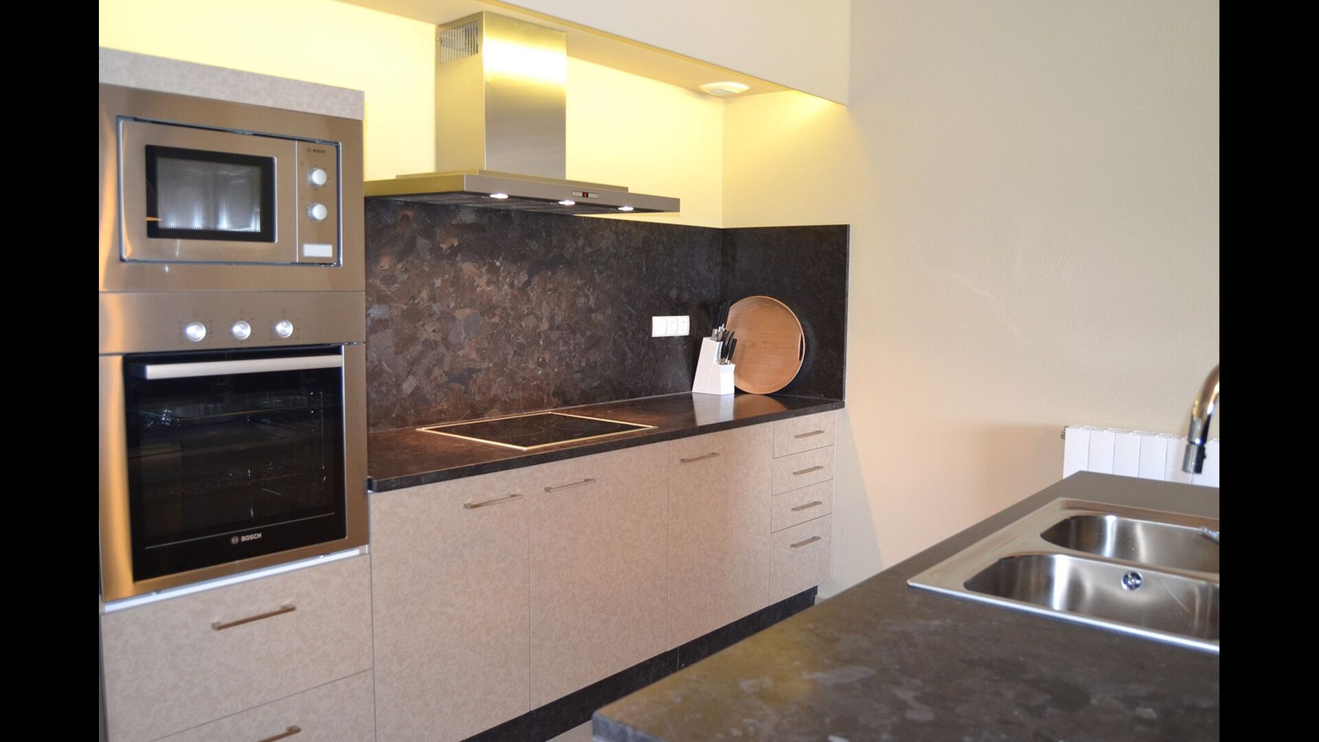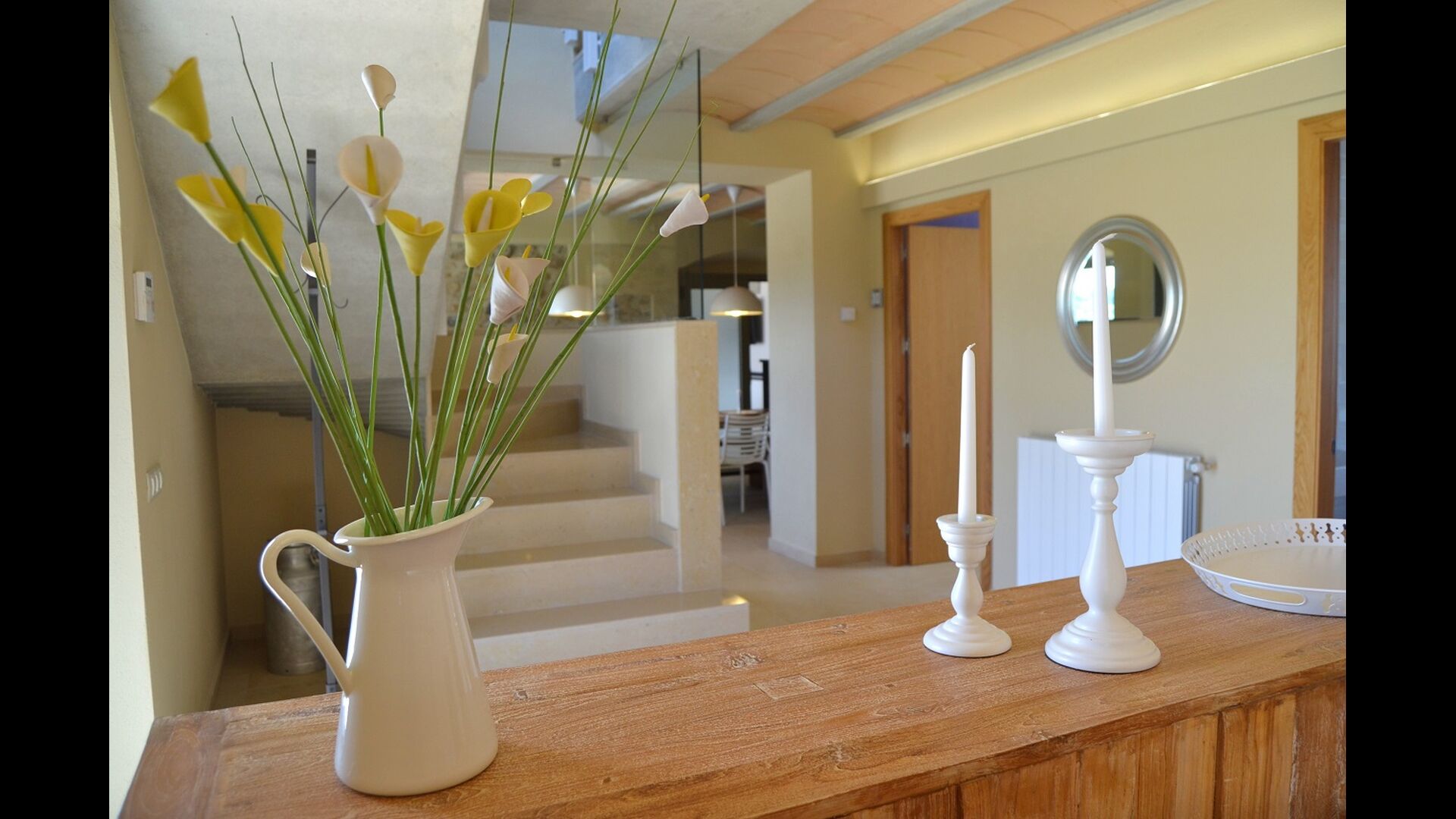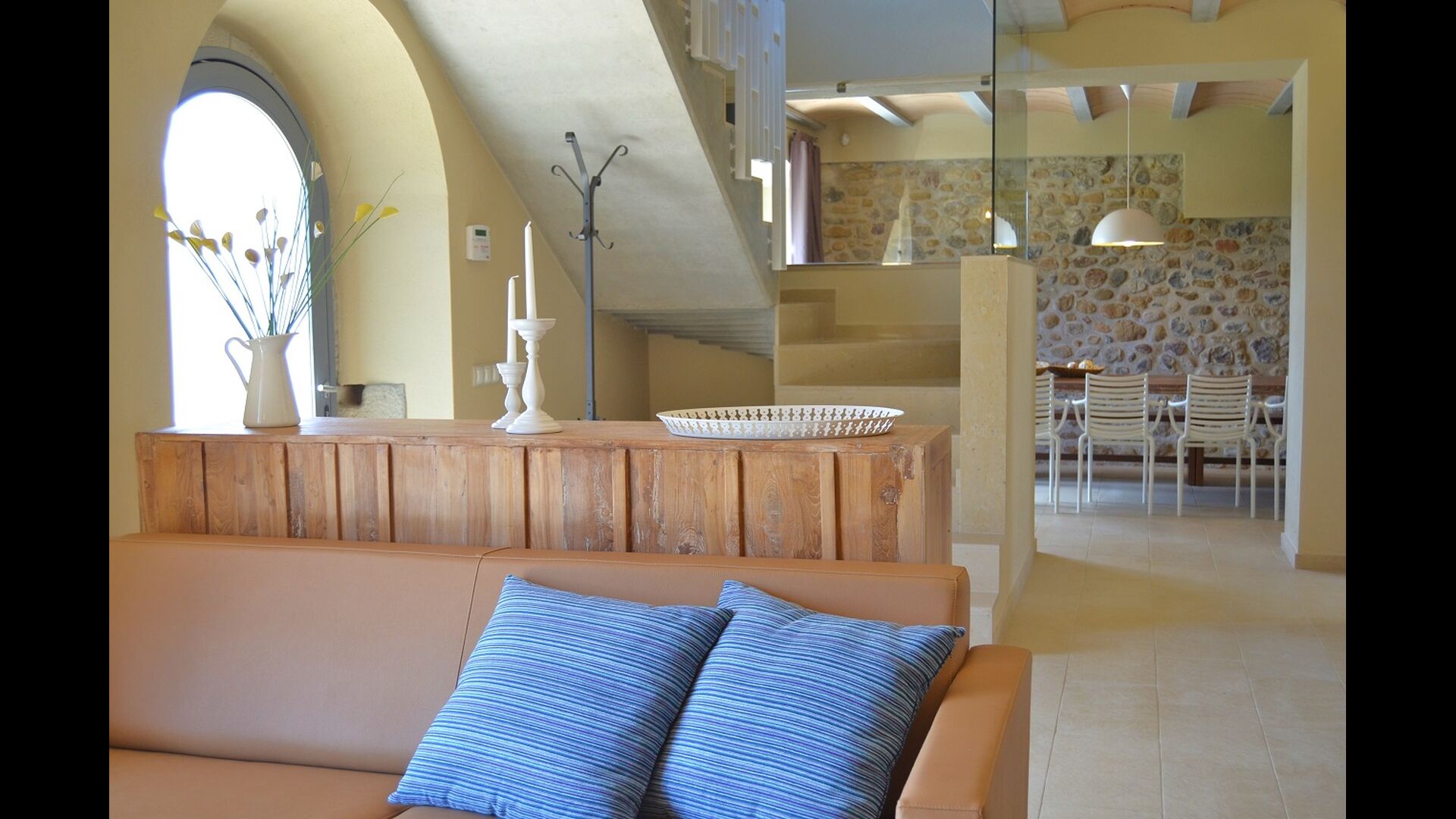 A cada edifici hi ha una habitació per a 3 persones i 4 habitacions dobles. La característica d'aquestes habitacions és que són molt espaioses i modernes. La casa té 6 banys, i com la resta de la casa, són de molt alta qualitat. Les dues cuines de la casa de vacances també són modernes i ben equipades.