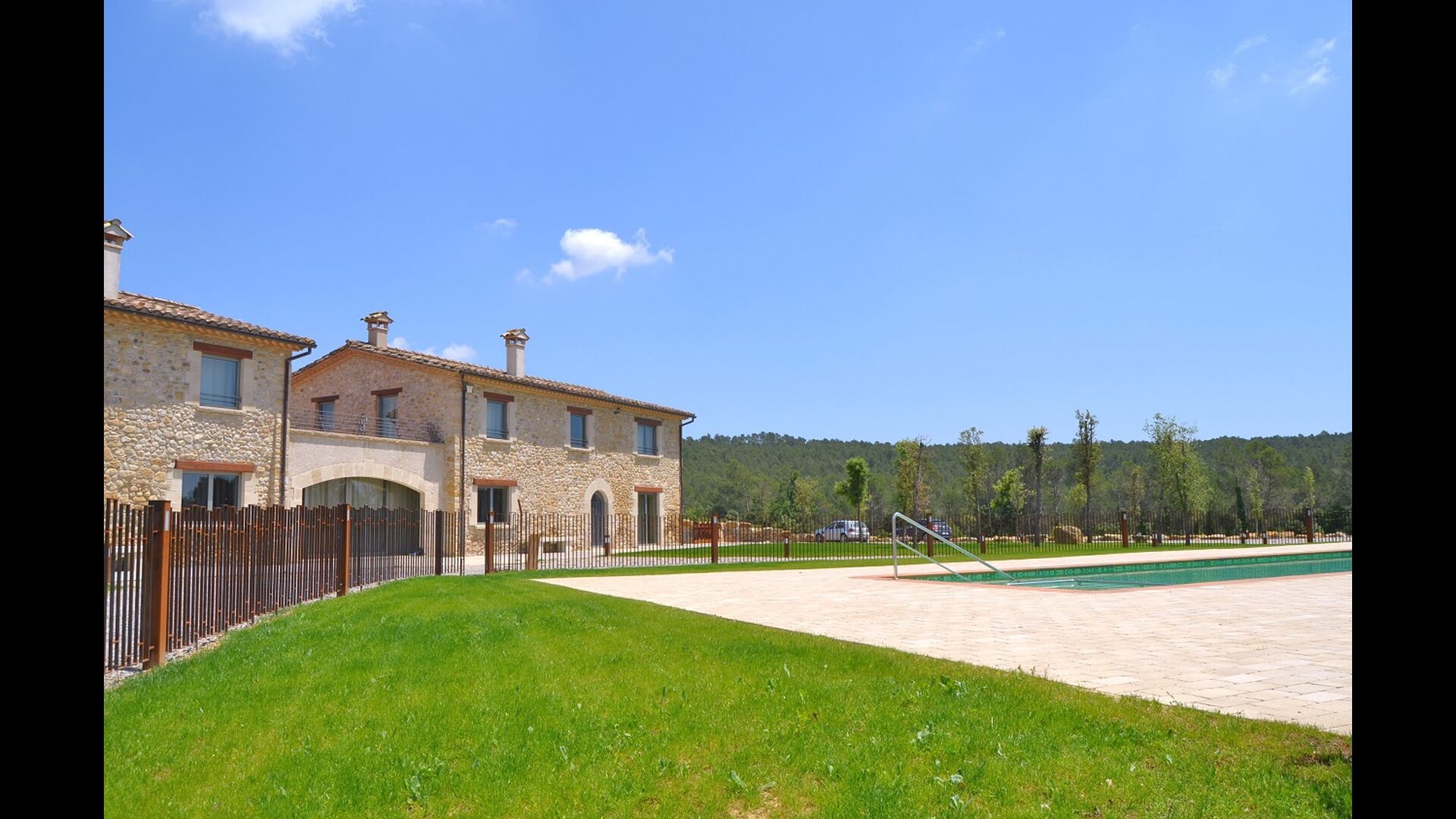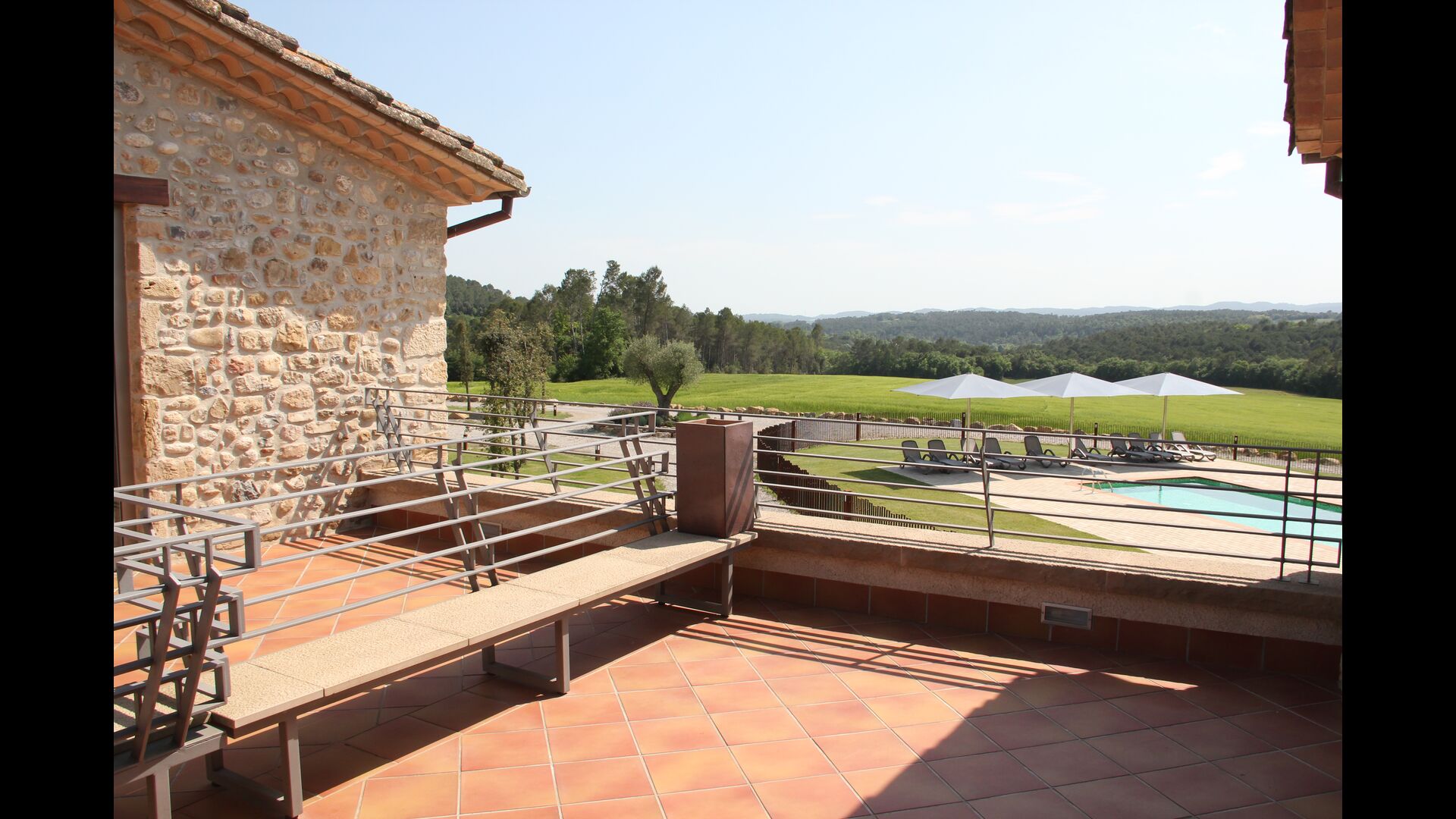 Masia Plañellas consta de dos edificis idèntics amb 5 habitacions cadascun, la qual cosa ofereix més privacitat si esteu en un grup de vacances gran. Aquests dos edificis estan connectats per un menjador on es pot gaudir del sopar. A la planta superior hi ha una terrassa al terrat amb una magnífica vista del paisatge.