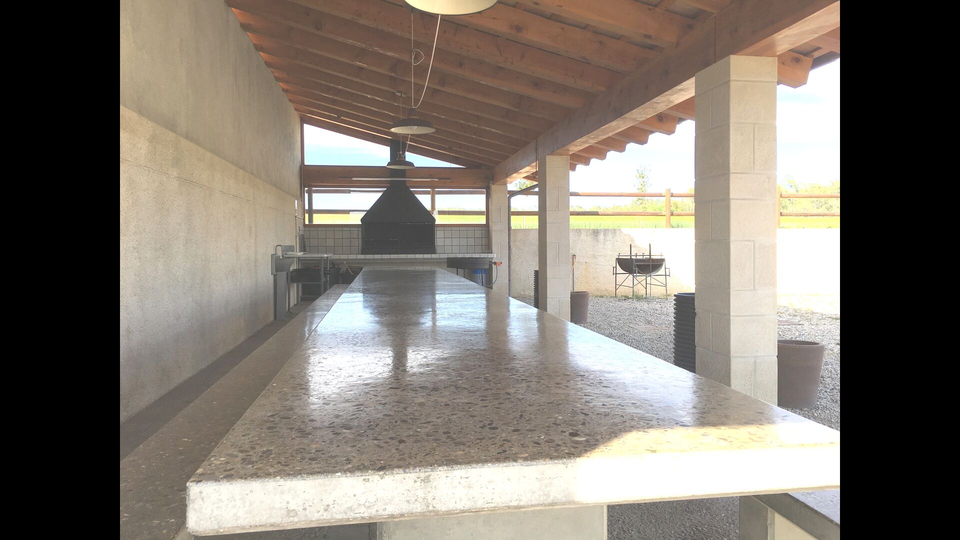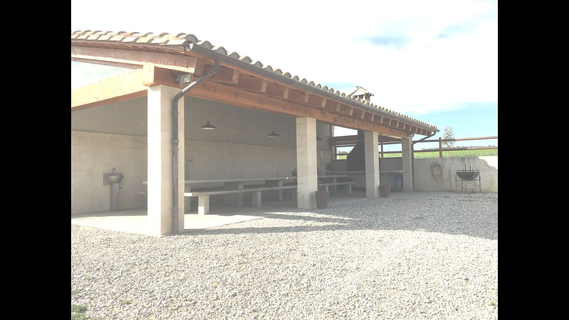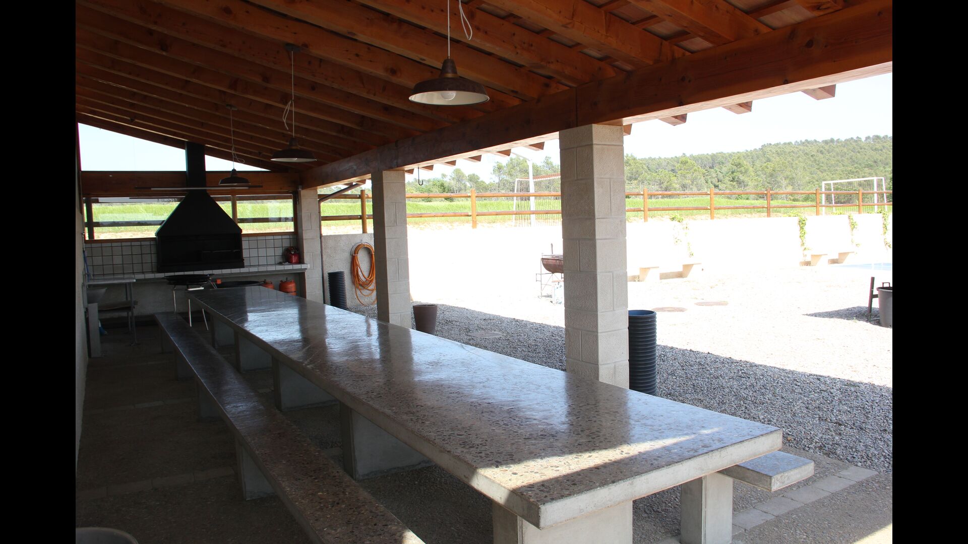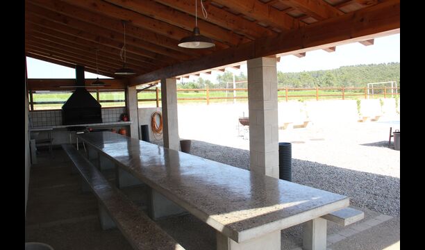 La barbacoa, situada en una gran terrassa exterior, és un lloc perfecte per cuinar. El menjar es pot degustar aquí o al menjador.