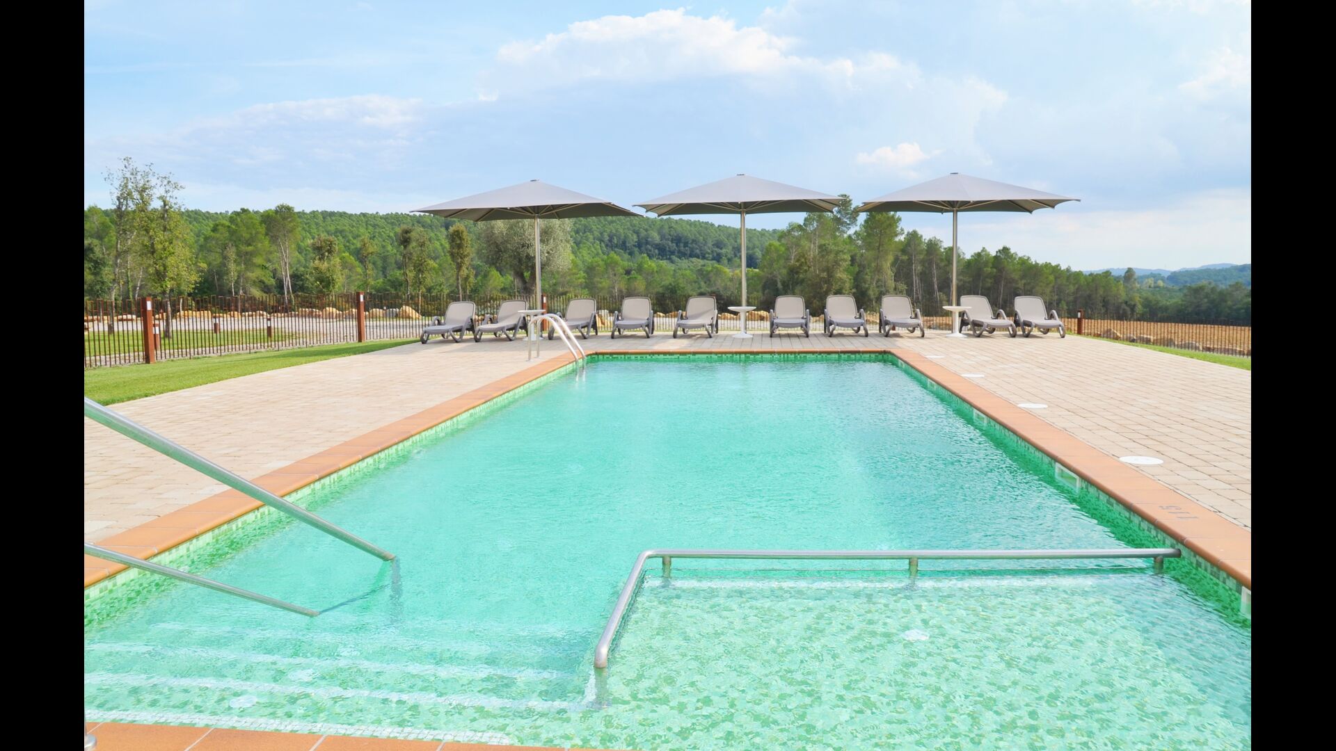 A més de semblar ordenada i ben cuidada, la zona del jardí té tot el necessari per mantenir els nens ocupats. En primer lloc, hi ha la piscina gran, que segurament serà la preferida entre els nens i, per tant, els pares. Aquí podeu fer un bany refrescant sota el sol calent. Per als més petits del grup de vacances hi ha una petita zona de pàdel a la piscina al costat de les escales. Per augmentar la seguretat, la piscina està tancada, de manera que els pares no han de vigilar constantment els nens.