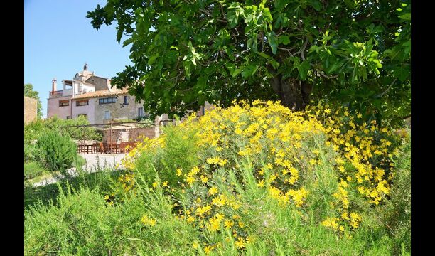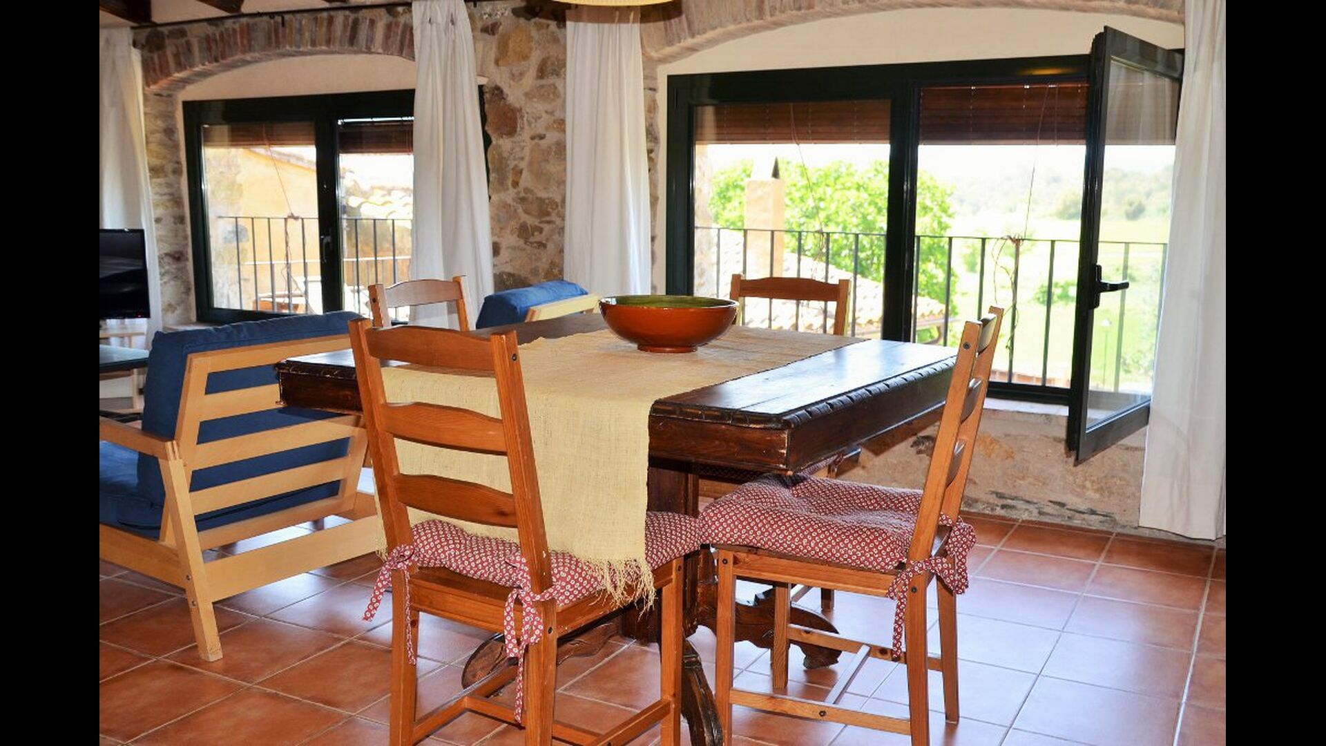 La casa té un jardí molt gran amb una piscina enorme, que està protegida amb una tanca i amb gandules on es pot relaxar, només per ser interrompuda per un refrescant bany. La resta del jardí té diverses zones de pati i tarongers i llimoners aporten l'ombra i el toc de l'ambient mediterrani. Al poble a poca distància, hi ha alguns restaurants i una botiga amb una mica de tot. Tots els dies a les 12:00, un vaixell de pa arriba a la plaça, de manera que es pot comprar pa fresc per dinar. Hi ha supermercats més grans a La Bisbal, coneguda per la seva ceràmica. Aquesta ciutat és a 5 km de la casa.
