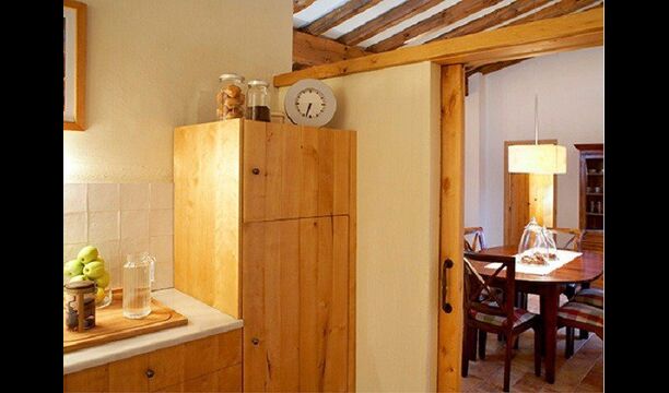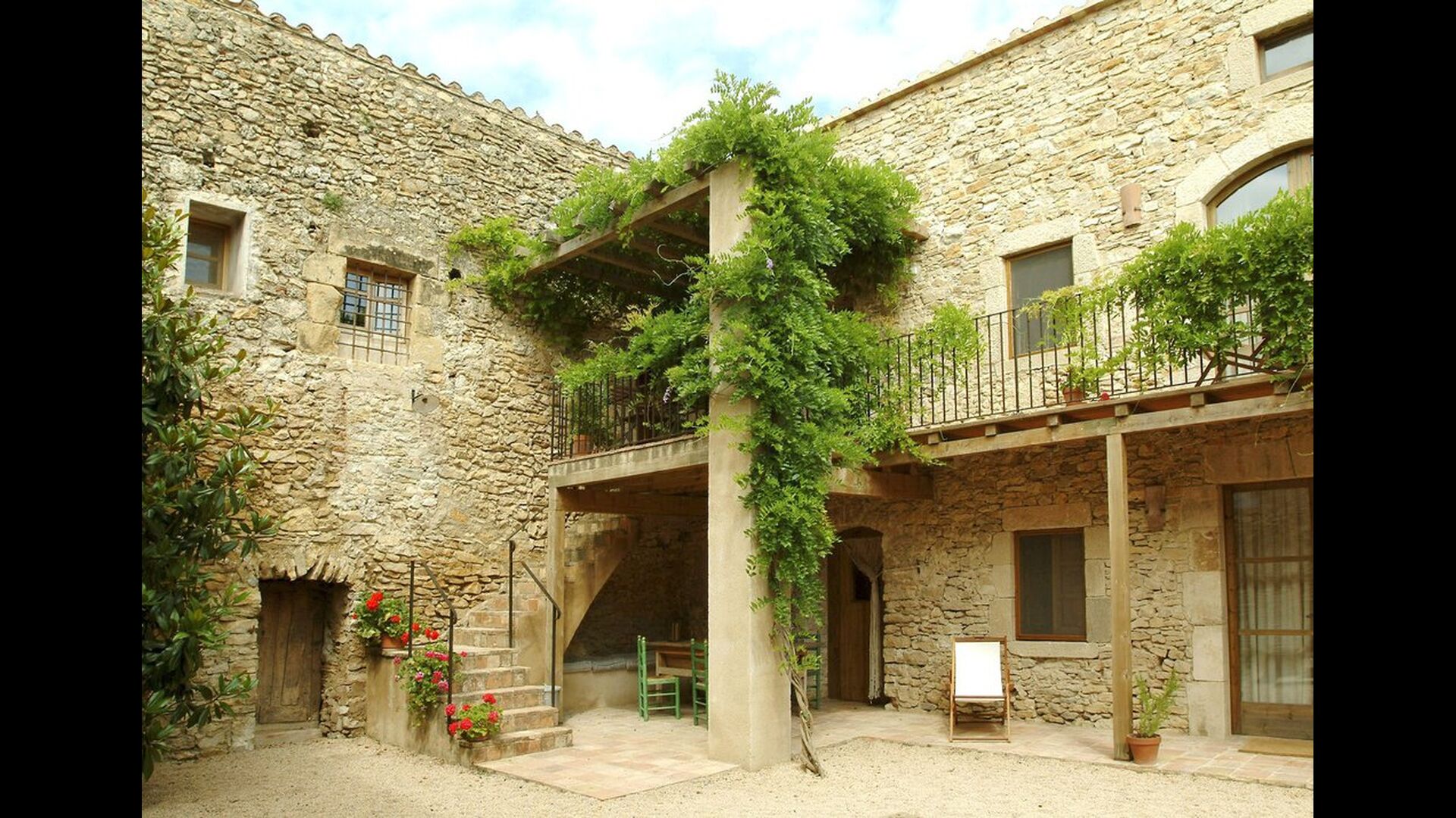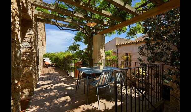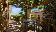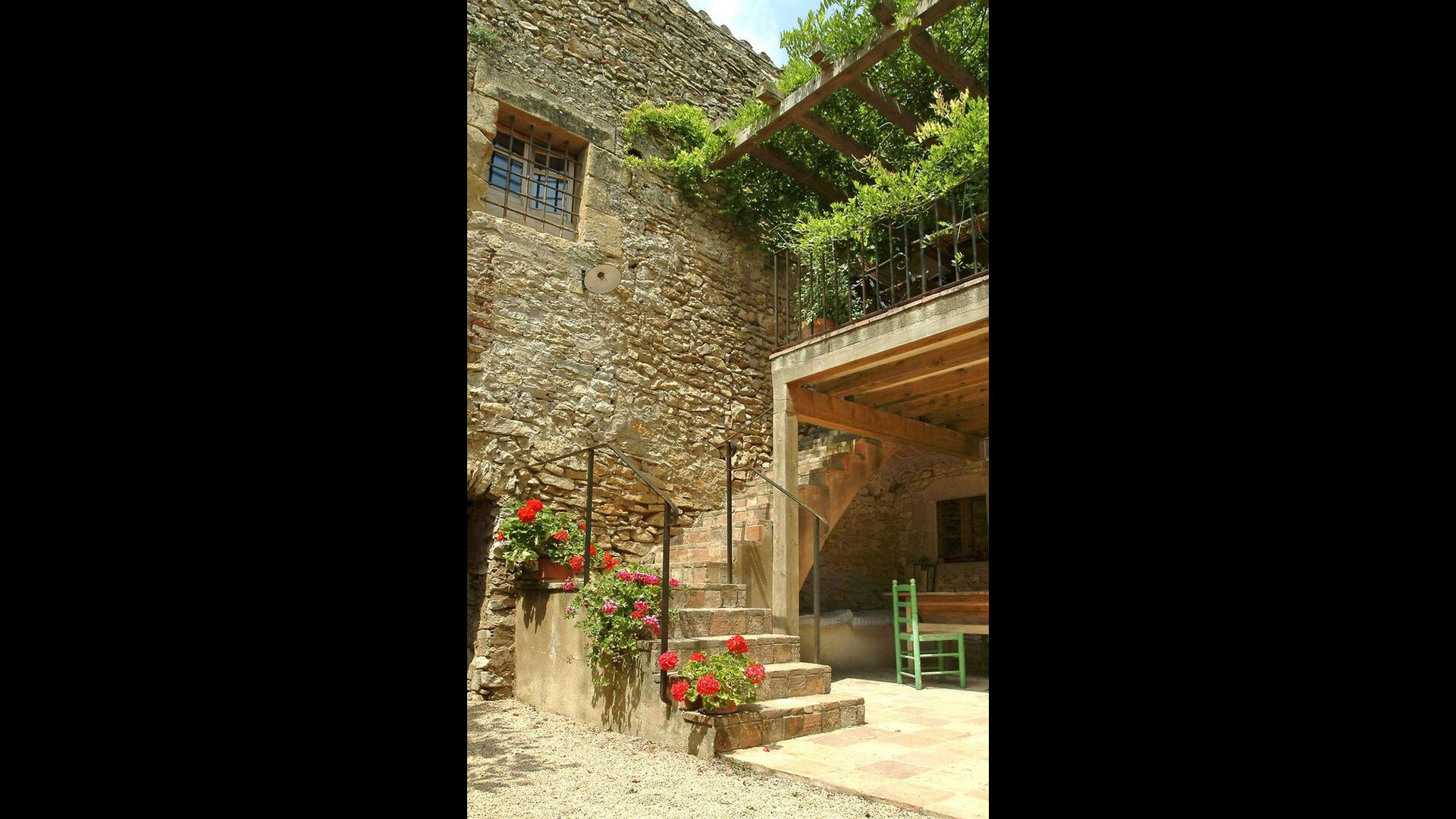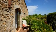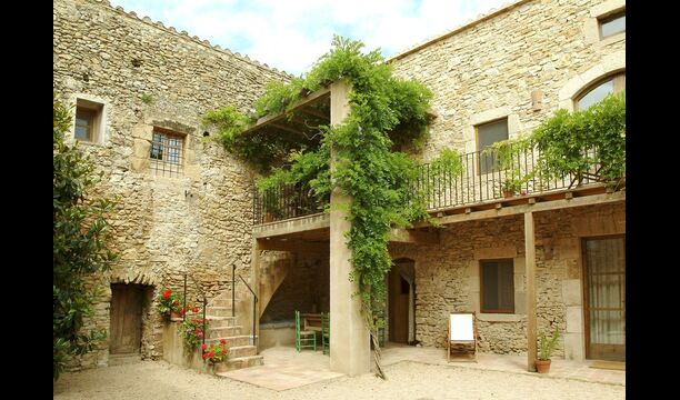 This first floor apartment is located on the upper right side of the large courtyard you are met by after the large wooden gate. The courtyard and the houses are built of stone, which gives a rustic and authentic atmosphere. This apartment has a cosy covered patio in the courtyard, where it is obvious to enjoy the homemade meals during the warm Catalan evenings. In the daytime, it is also a perfect place to relax, as there is a cooling shade.