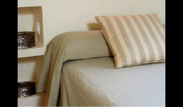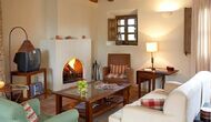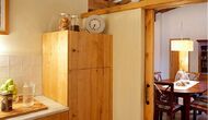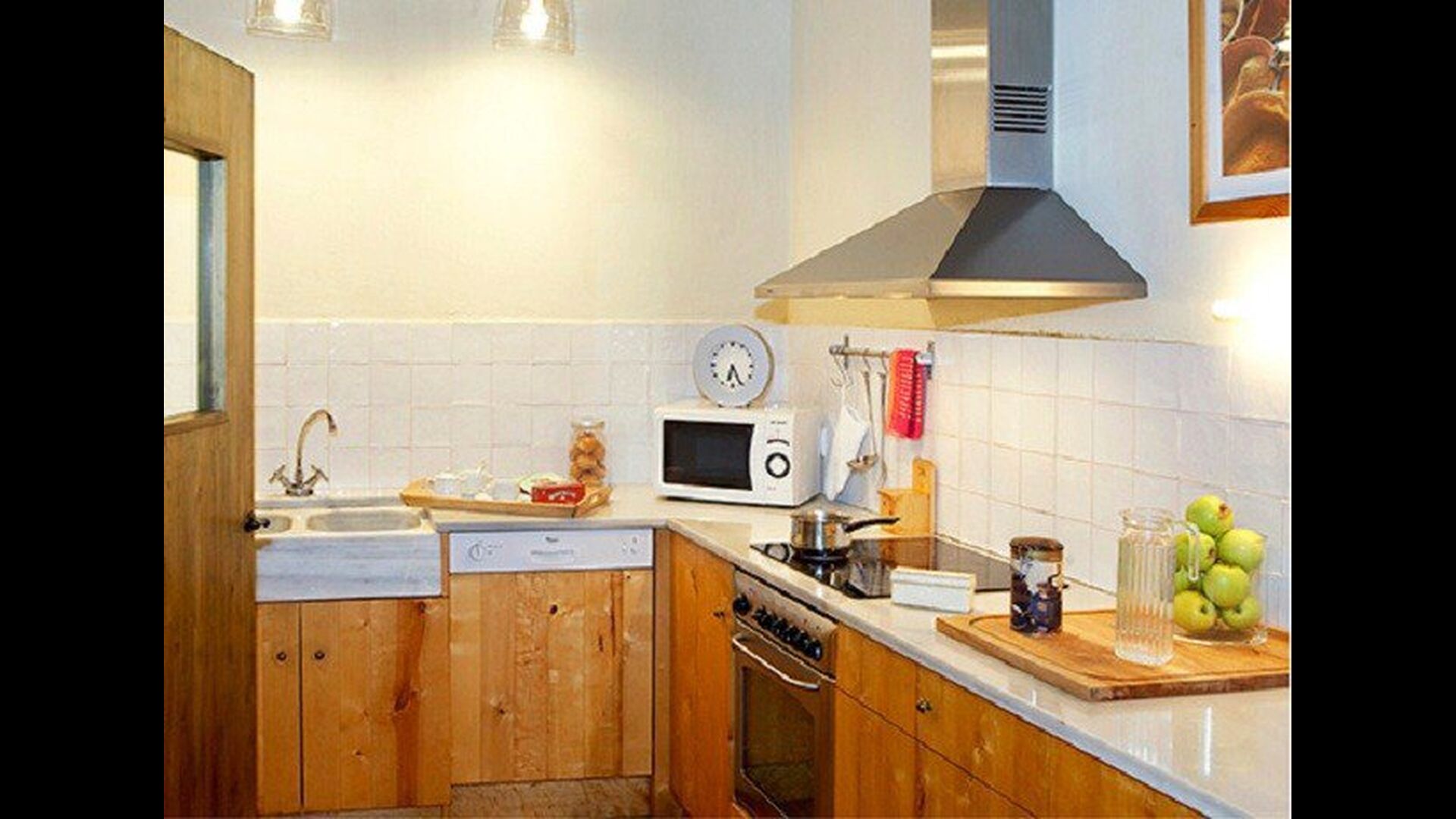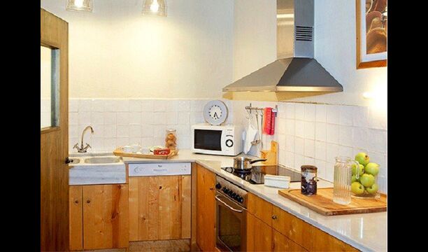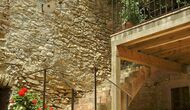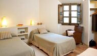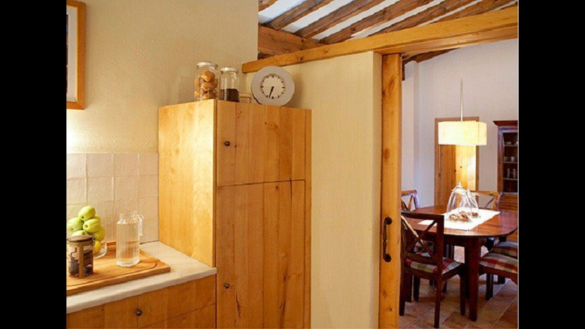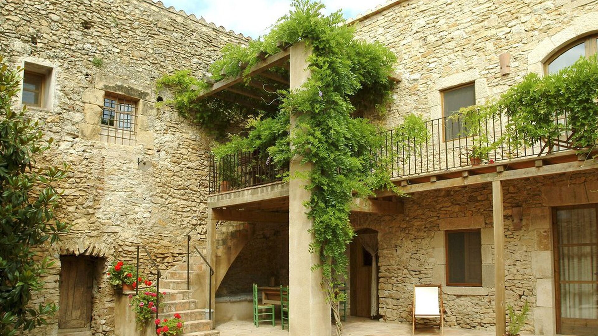 This first floor apartment is located on the upper right side of the large courtyard you are met by after the large wooden gate. The courtyard and the houses are built of stone, which gives a rustic and authentic atmosphere. This apartment has a cosy covered patio in the courtyard, where it is obvious to enjoy the homemade meals during the warm Catalan evenings. In the daytime, it is also a perfect place to relax, as there is a cooling shade.