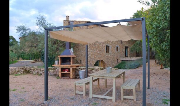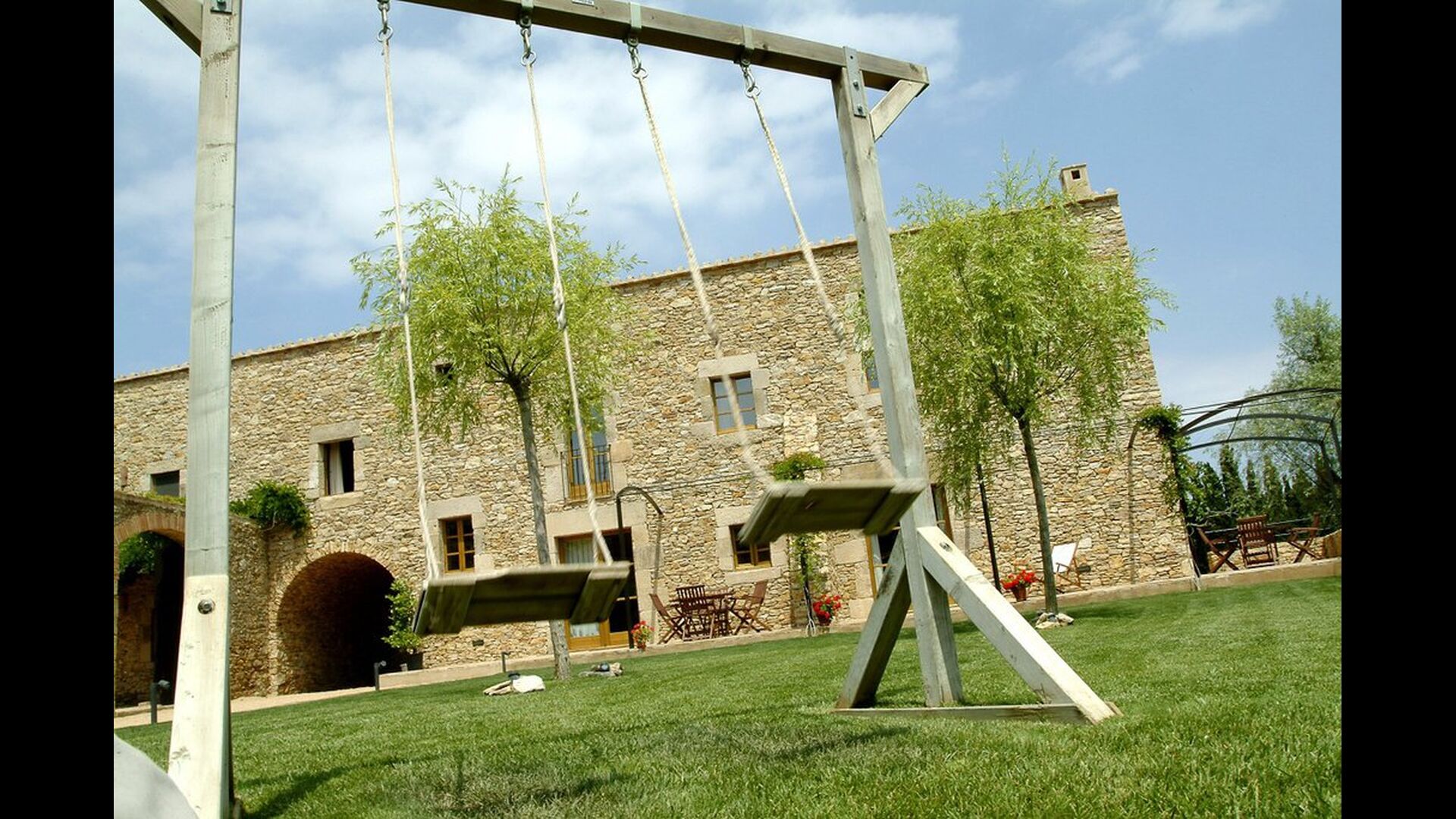 Outside there is a relatively large garden area. There is a shared pool with a size of 50m2. This is a sure hit among the kids that surely will spend lots of time in it. Especially during the summer months, when it is very hot in Catalonia, it is an essential facility because it can be cooled down in a very short time. In addition, there is a largeBBQ grill in the garden with a belonging covered dining table, where you can enjoy the freshly prepared food during the warm Catalan evenings. In addition, there are several seating areas around the garden. For the smaller group is a small playground with playhouse and swings.