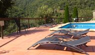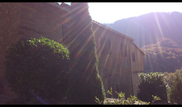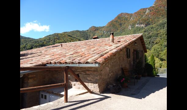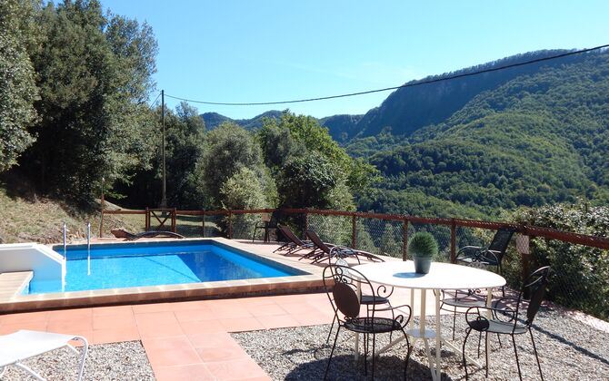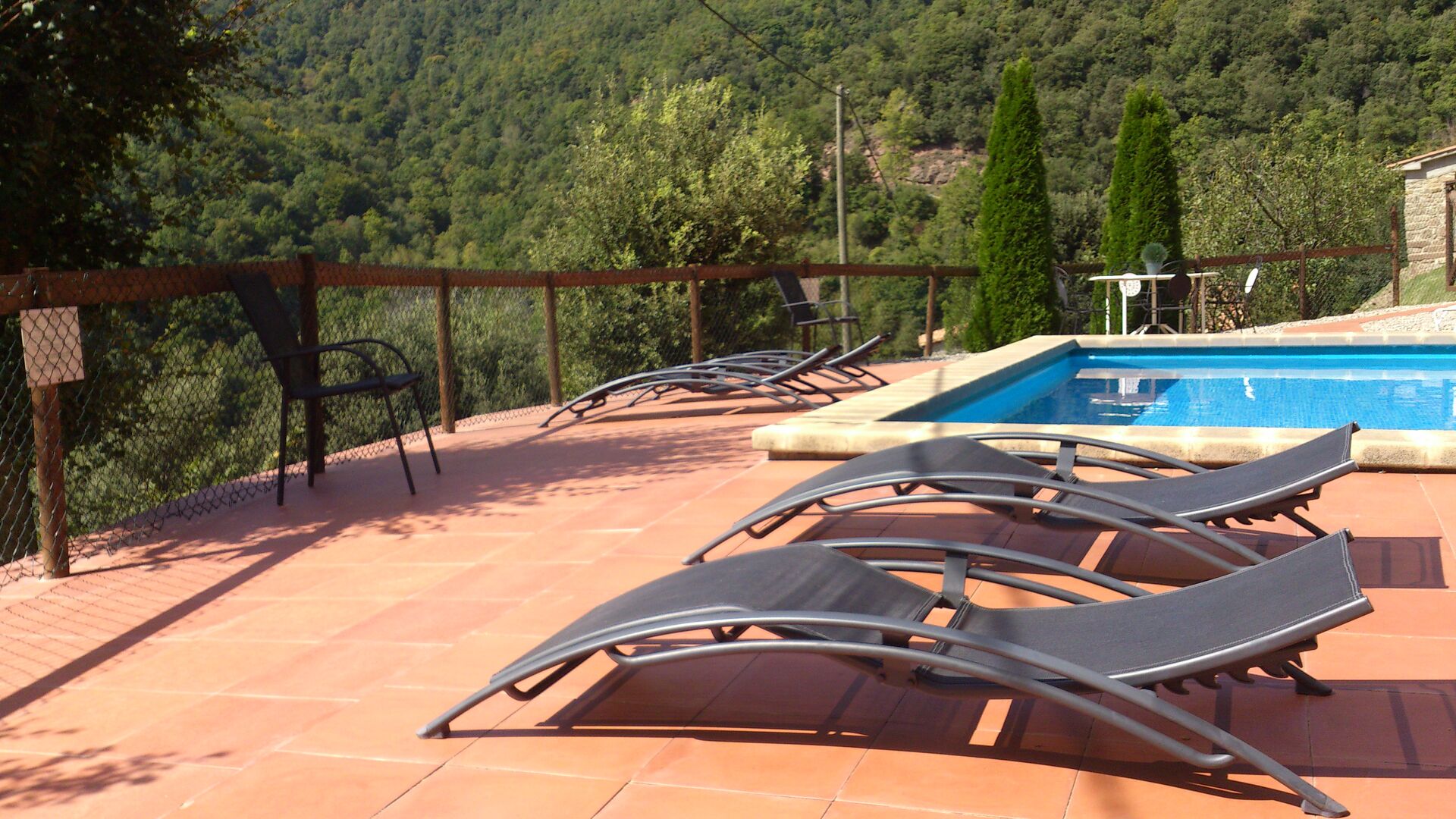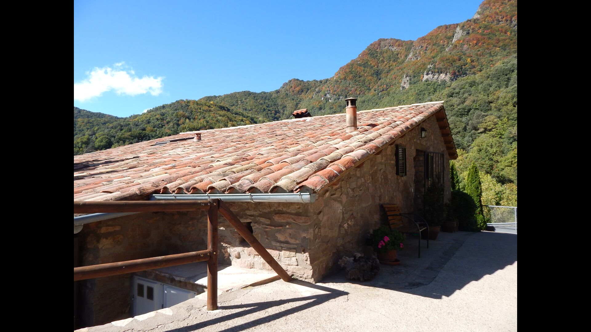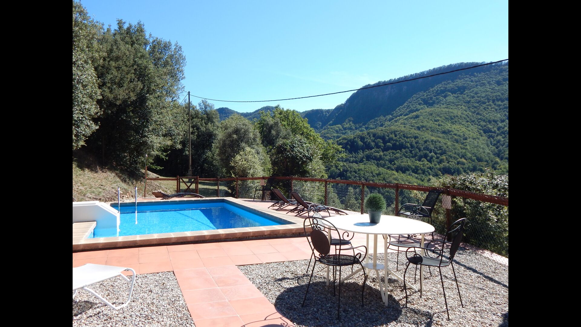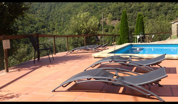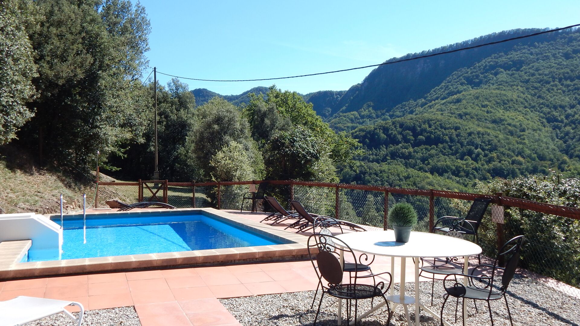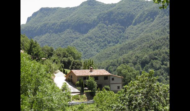 La casa es troba en un entorn molt tranquil i aïllat amb 20.000 m2 de terreny com a part de la propietat, però a només 13 km d'Olot, la capital de la comarca. La casa és una autèntica masia catalana que ha estat completament restaurada. Els vells murs de pedra donen un ambient autèntic molt especial. Hi ha boniques àrees a l'aire lliure amb dues terrasses i una piscina de 8m x 4m. A l'interior, hi ha quatre habitacions grans, amb capacitat per a vuit persones. No hi ha possibilitat d'allotjar a més de vuit persones, llevat que siguin nens. Hi ha dues cambres de bany, un amb dutxa i un altre amb banyera. Hi ha un gran menjador i una cuina totalment equipada amb forn, vitroceràmica, microones, rentavaixelles, nevera, rentadora i planxa. A més, hi ha una terrassa coberta amb barbacoa.