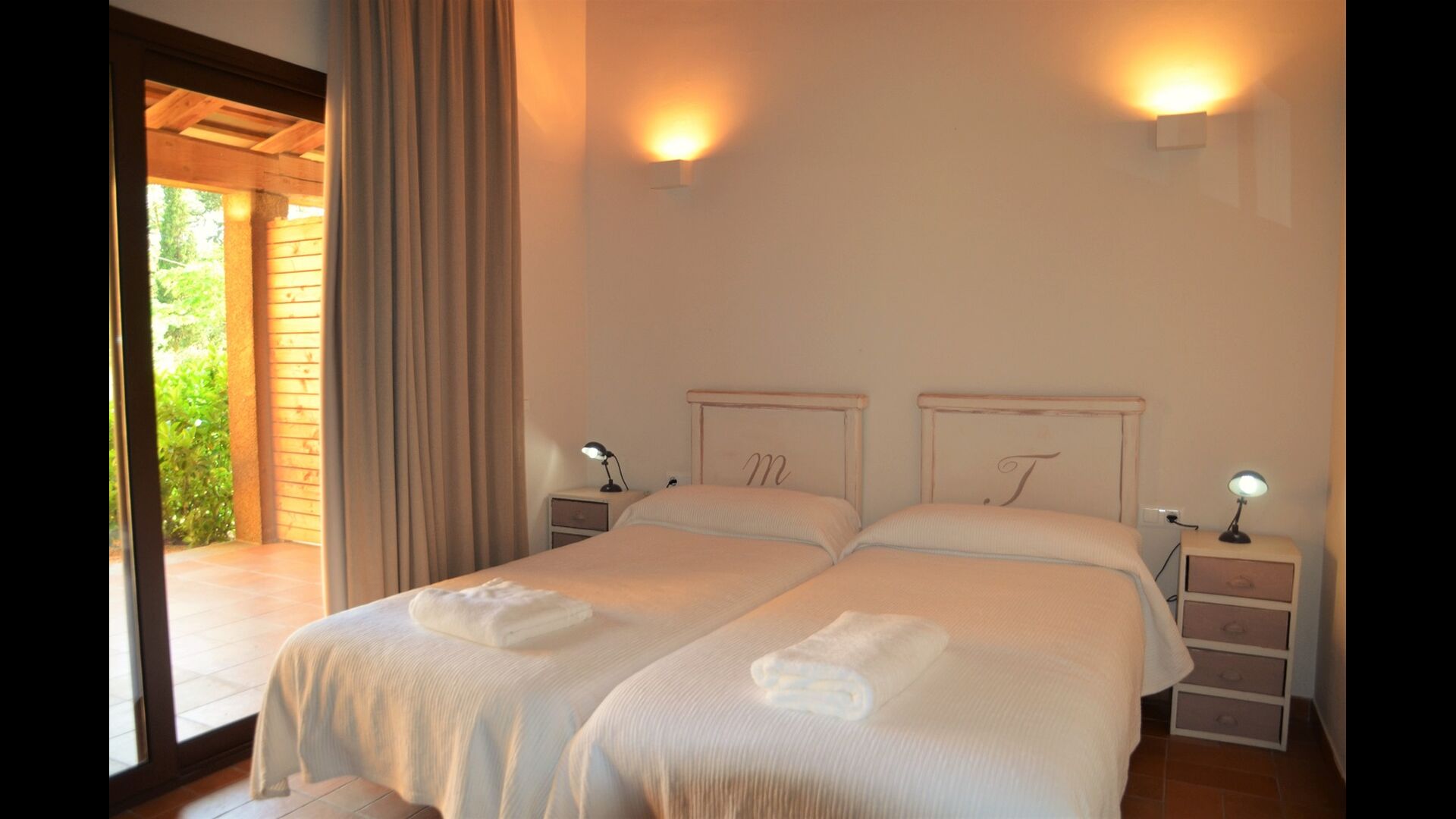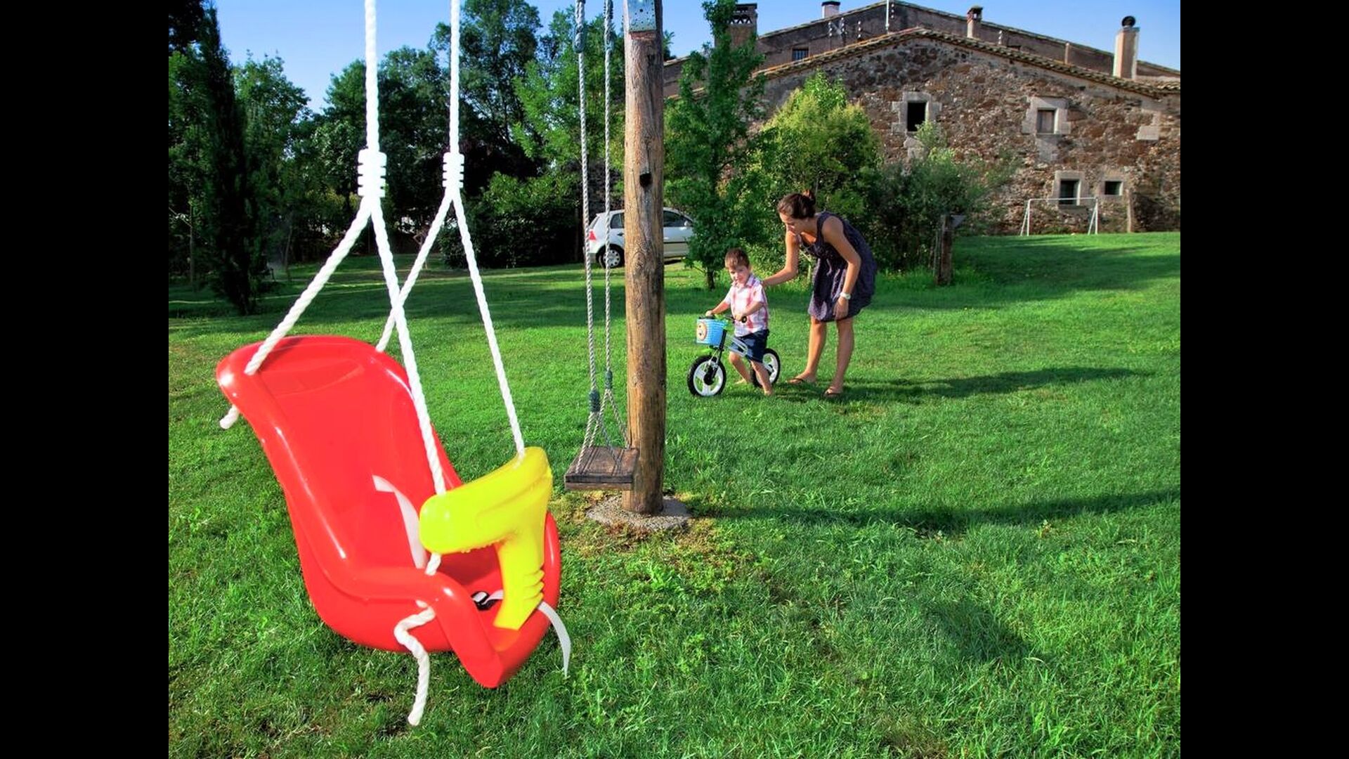 As you walk through the huge garden, you will find the fenced, luxurious pool area. Besides the large 12x6 pool with varying depths that is shared with the other two apartments, there are various lounge chairs, tables, shade areas etc., so the stage is set for optimal relaxation in the lovely Catalan sun with the option of taking a dip in the refreshing pool at any given time. The garden also offers several shaded areas with seating areas, where you are always able to find a place in the beautiful, natural surroundings to read a book or whatever. There is furthermore a playground in the garden for the smaller ones in the holiday group, so they also can have fun and entertain themselves.