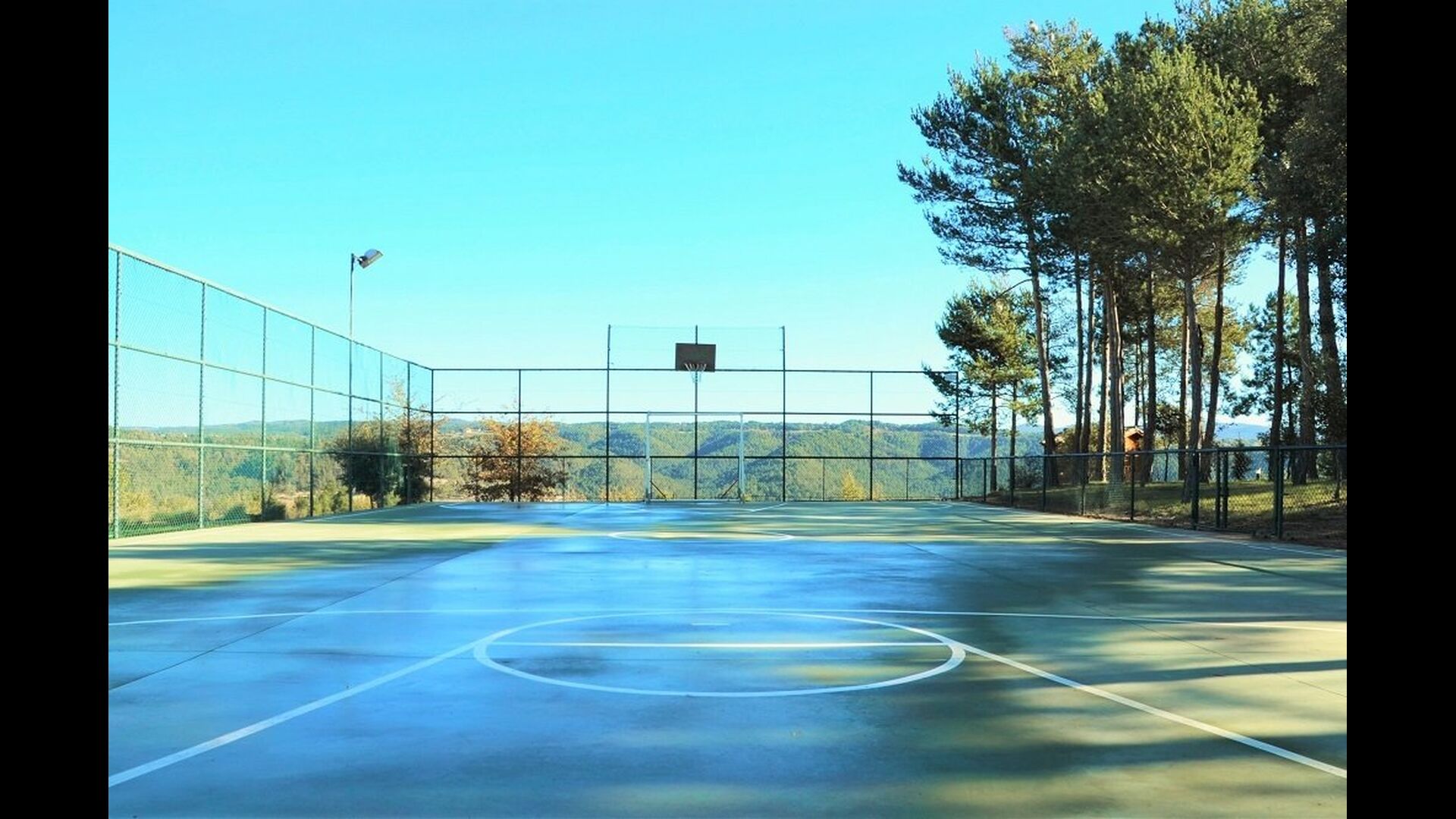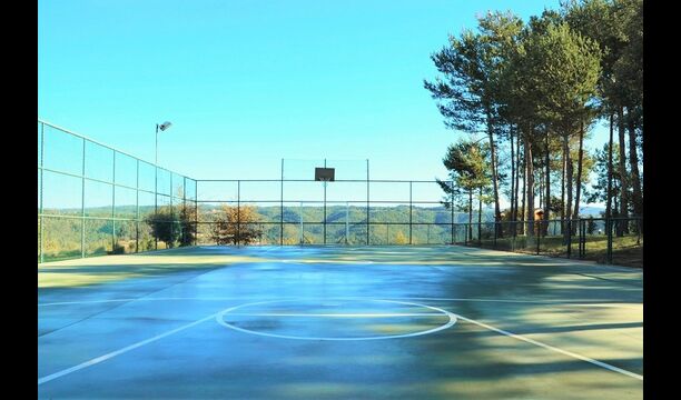There is also a garden area with lots of trees and sitting areas where you can find shady places to relax. Just below, there is a new football and basket field, where you can play all kinds of ball games. There are also table tennis and swings in the garden.