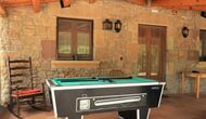 There is a large living room with sofa area and flat-screen TV, billiards and table football. There is also a small bedroom with bunk beds and a bathroom with shower on the ground floor.