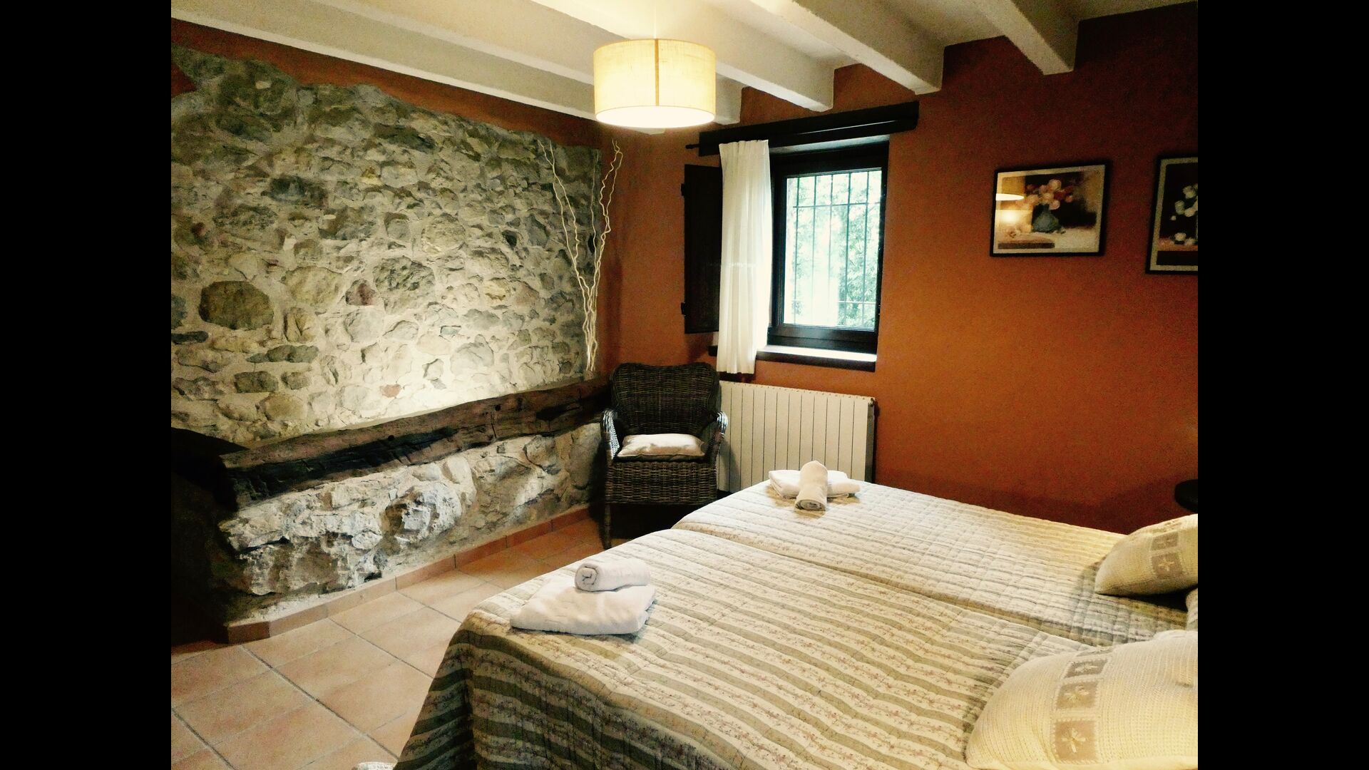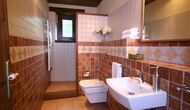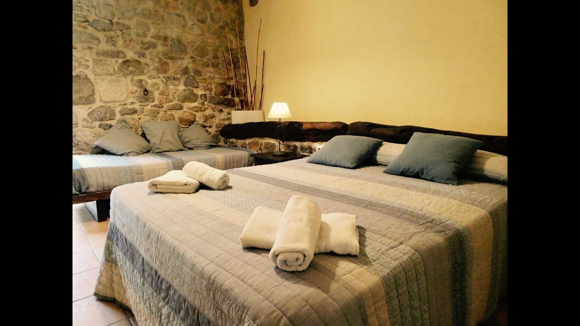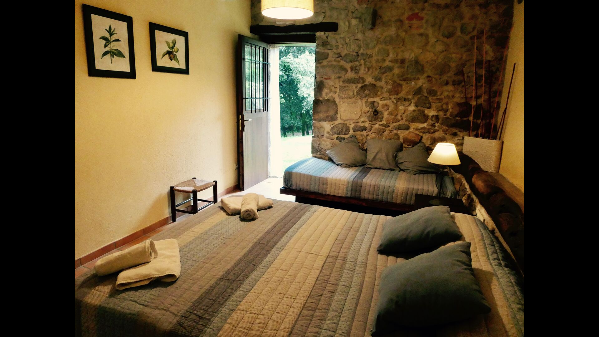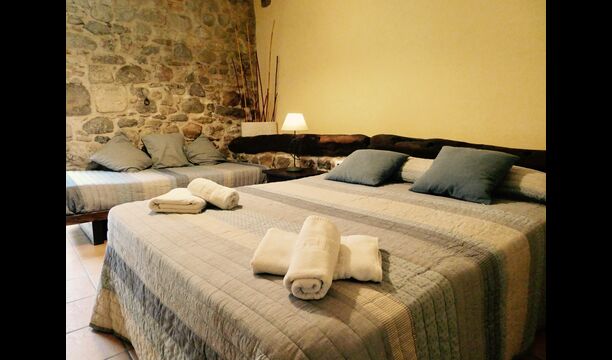 A Can Bosquita - Gran hi ha un total de 6 habitacions, de les quals 2 són habitacions triples i 4 són habitacions dobles, a més de 4 banys. La casa té nivell d’entrada amb el pàrquing. Com que la casa està situada en un pendent, la casa té diversos nivells, cosa que és molt encantadora. Uns passos més amunt són les tres primeres habitacions, totes molt espaioses. Estan equipades amb llits individuals, que es poden configurar com a llits dobles si es prefereix. Una de les habitacions té la seva pròpia sortida al jardí. Aquestes tres habitacions comparteixen dos banys, tots totalment equipats i també amb dutxes. Més amunt hi ha 3 habitacions addicionals, una de les quals és més petita que les altres en estil loft.