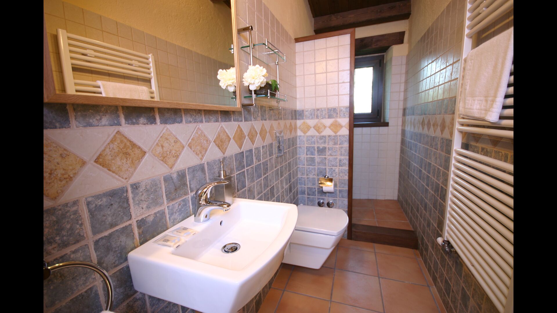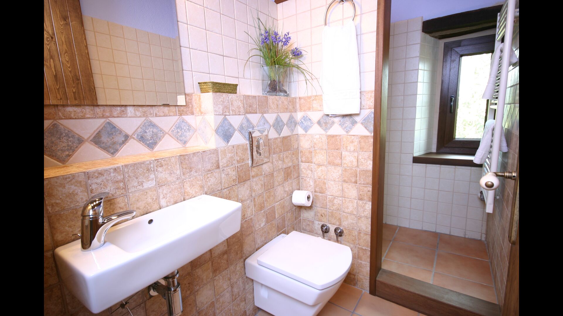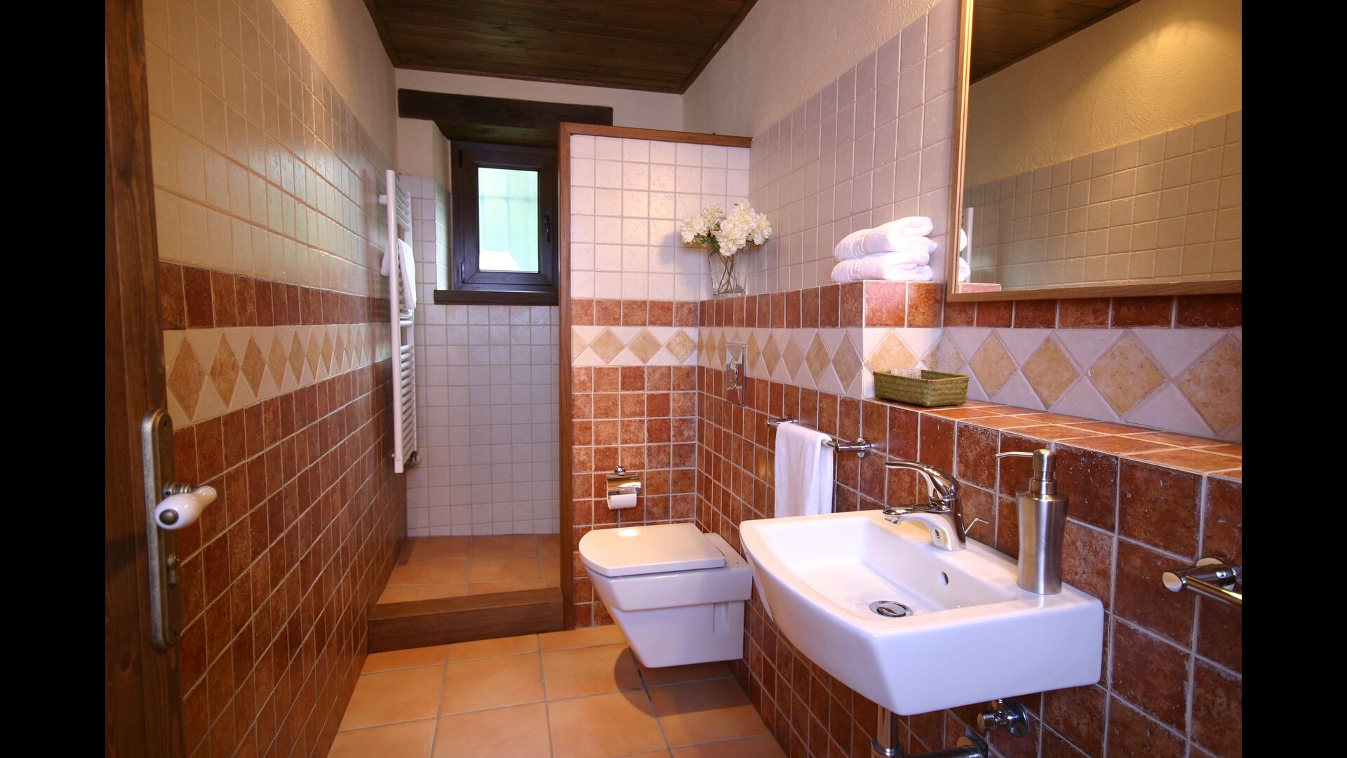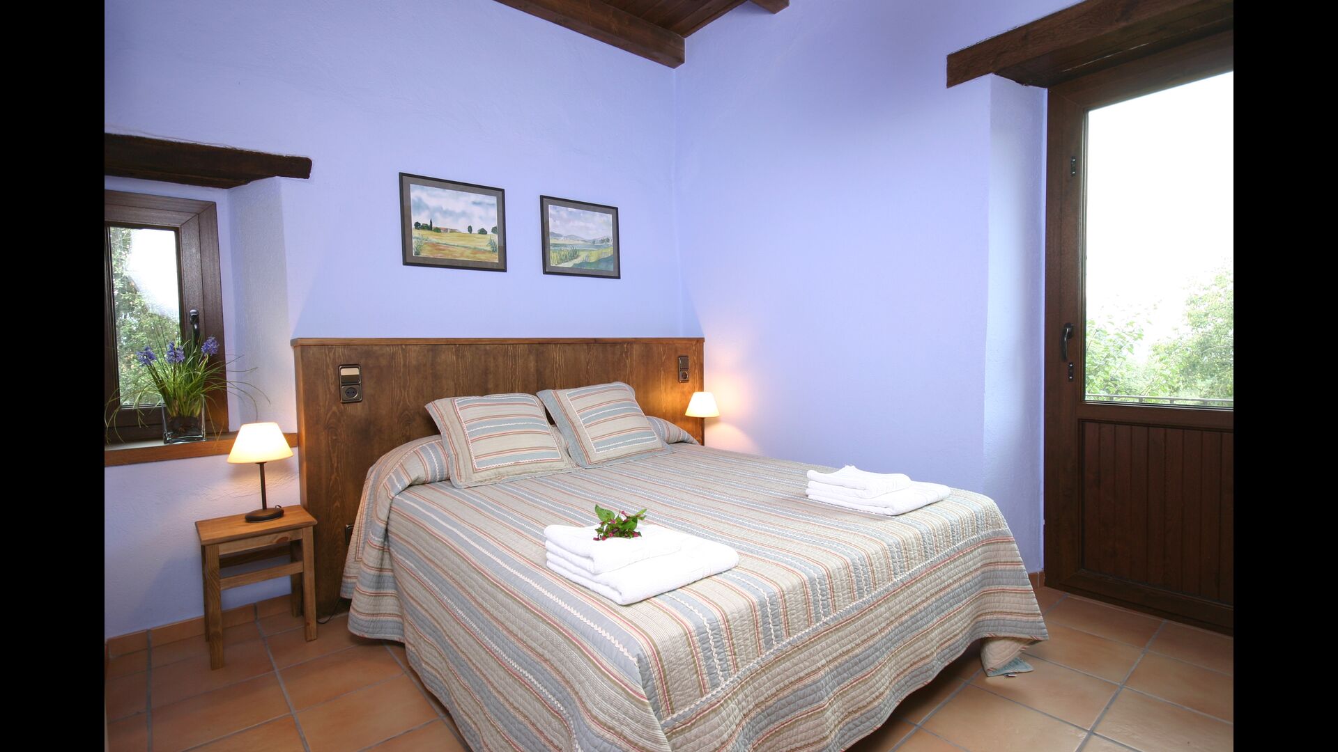 A Can Bosquita - Gran hi ha un total de 6 habitacions, de les quals 2 són habitacions triples i 4 són habitacions dobles, a més de 4 banys. La casa té nivell d’entrada amb el pàrquing. Com que la casa està situada en un pendent, la casa té diversos nivells, cosa que és molt encantadora. Uns passos més amunt són les tres primeres habitacions, totes molt espaioses. Estan equipades amb llits individuals, que es poden configurar com a llits dobles si es prefereix. Una de les habitacions té la seva pròpia sortida al jardí. Aquestes tres habitacions comparteixen dos banys, tots totalment equipats i també amb dutxes. Més amunt hi ha 3 habitacions addicionals, una de les quals és més petita que les altres en estil loft.