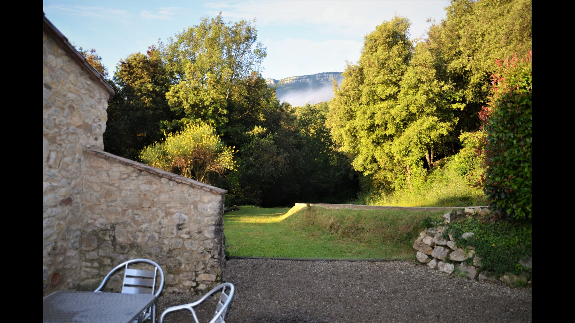 La propietat no es pertorba, ja que és l’última casa abans del bosc, de manera que hi ha grans oportunitats per fer belles passejades i rutes en bicicleta. En l’altra direcció, el poble local és a poca distància. Aquí hi ha alguns restaurants, una fleca, un supermercat i algunes botigues. També hi ha transport públic a Barcelona i Girona.