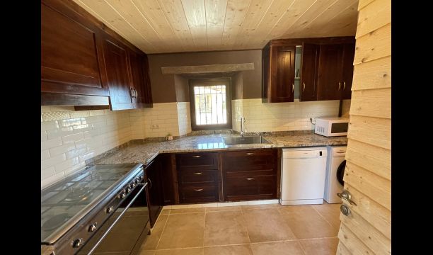 A la primera planta, hi ha unacuina molt gran, que està molt ben equipada amb rentaplats, placa vitroceràmica, forn, microones >, una nevera triple i molt més. A la mateixa sala gran, hi ha unataula de menjador llarga perquè pugueu dinar tots junts.