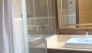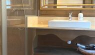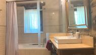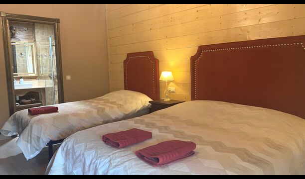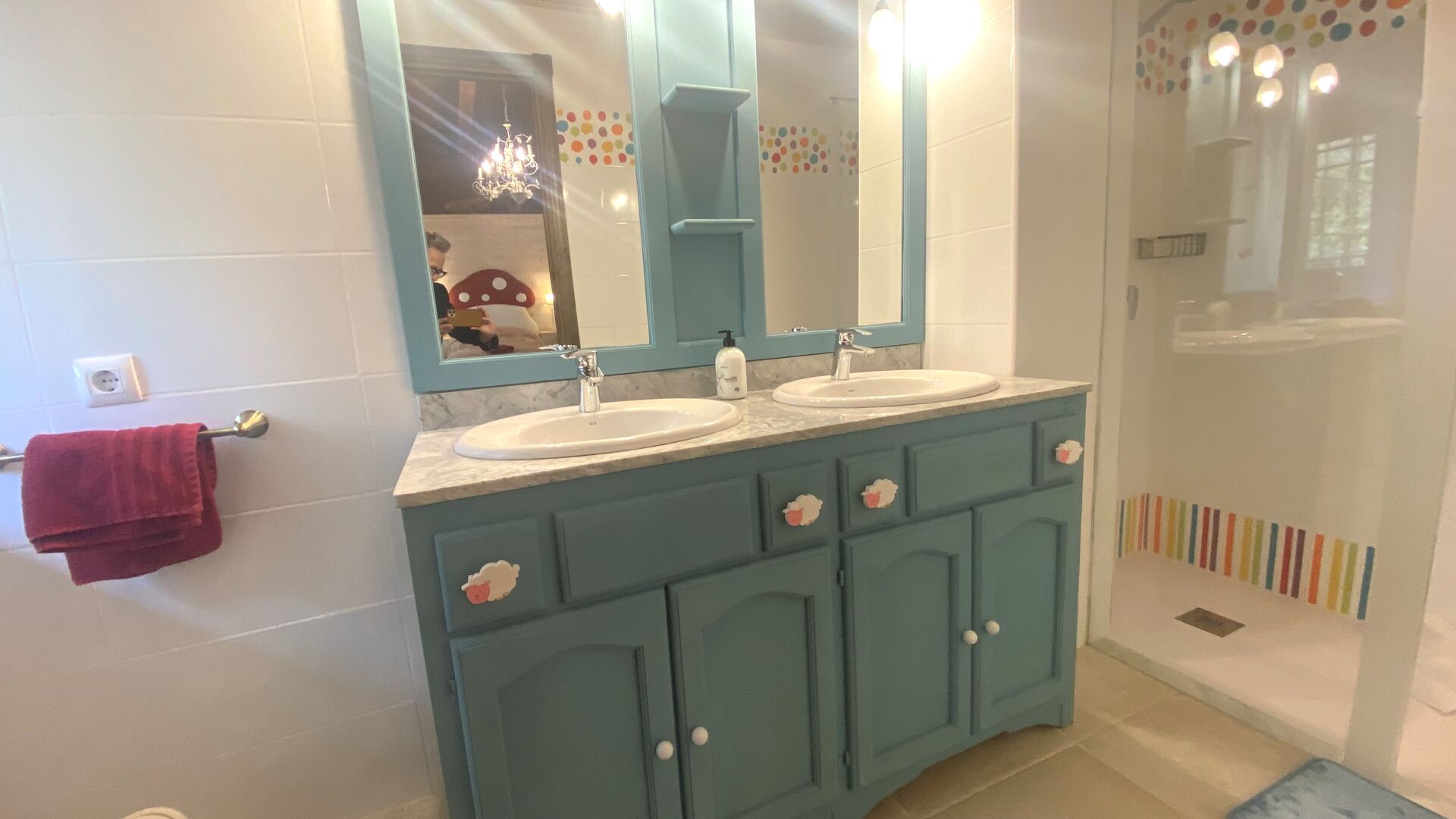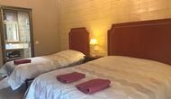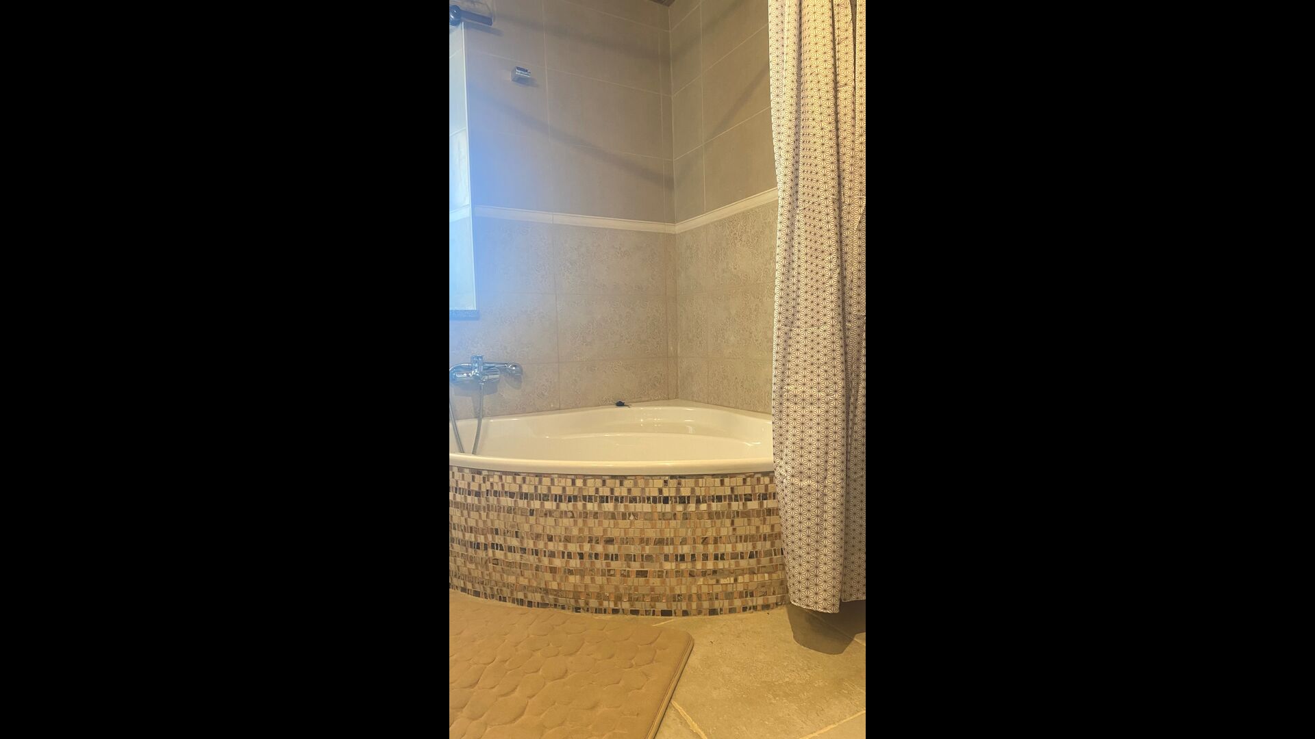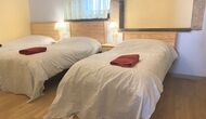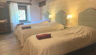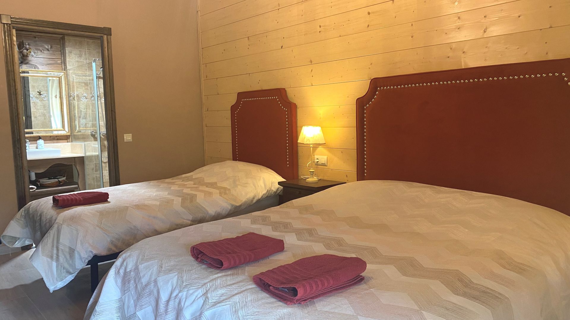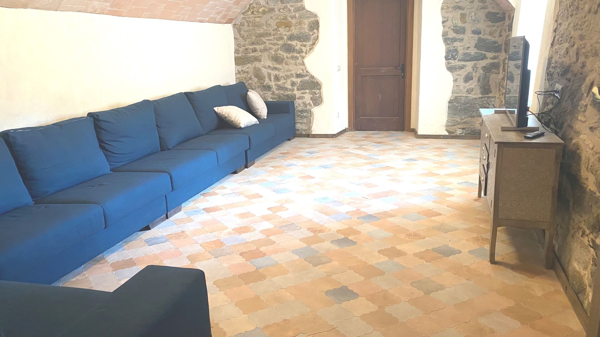 A més, aquí al primer pis hi ha2 habitacions triples (3 llits individuals) i 1 habitació doble amb un llit de matrimoni. Totes tenen bany privat, dos amb dutxa i un amb banyera. Finalment, a la zona comuna, hi ha un enorme sofà amb capacitat per a un mínim de 15 persones, i un televisor d'una mida igual.