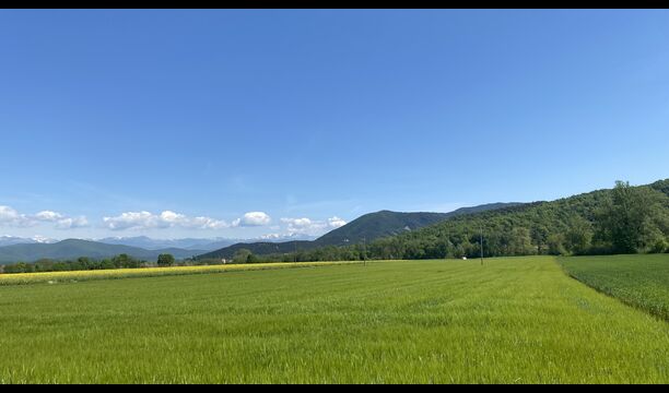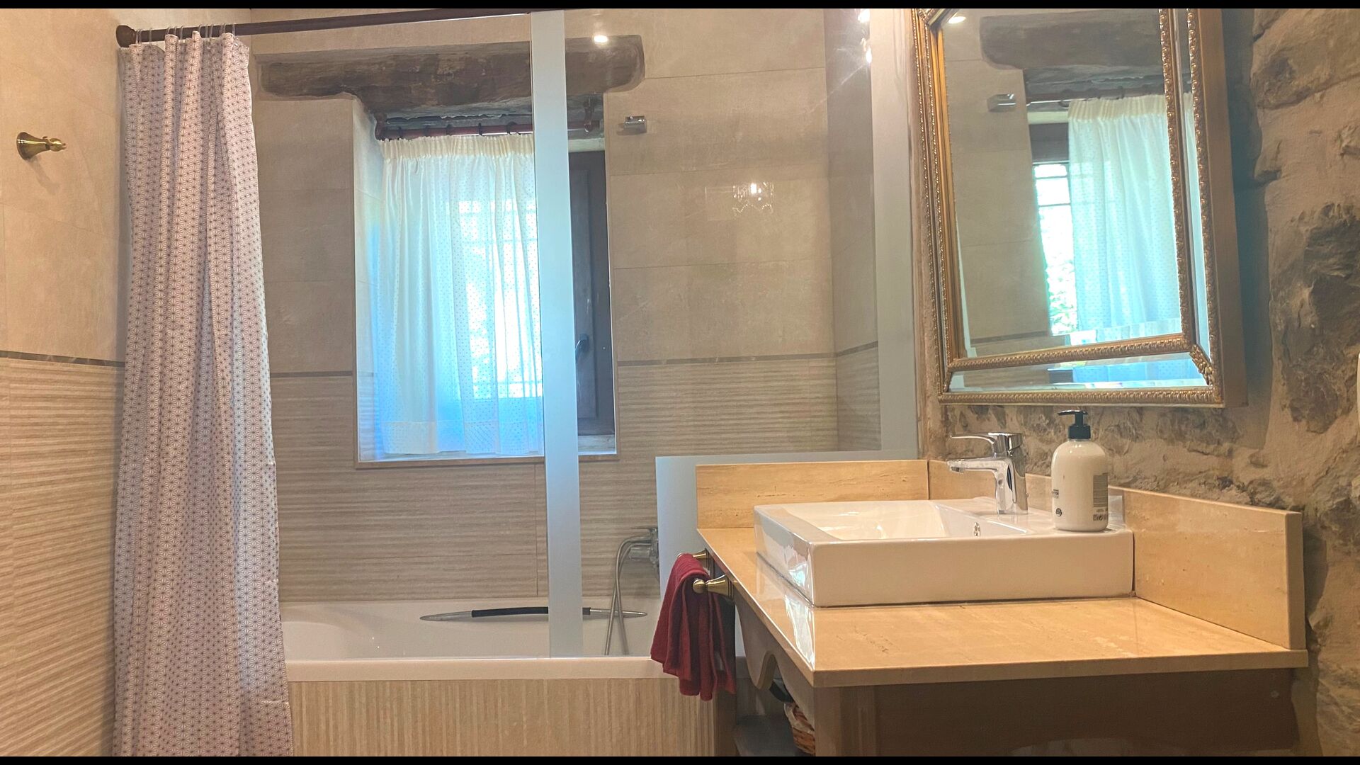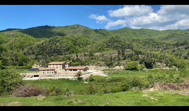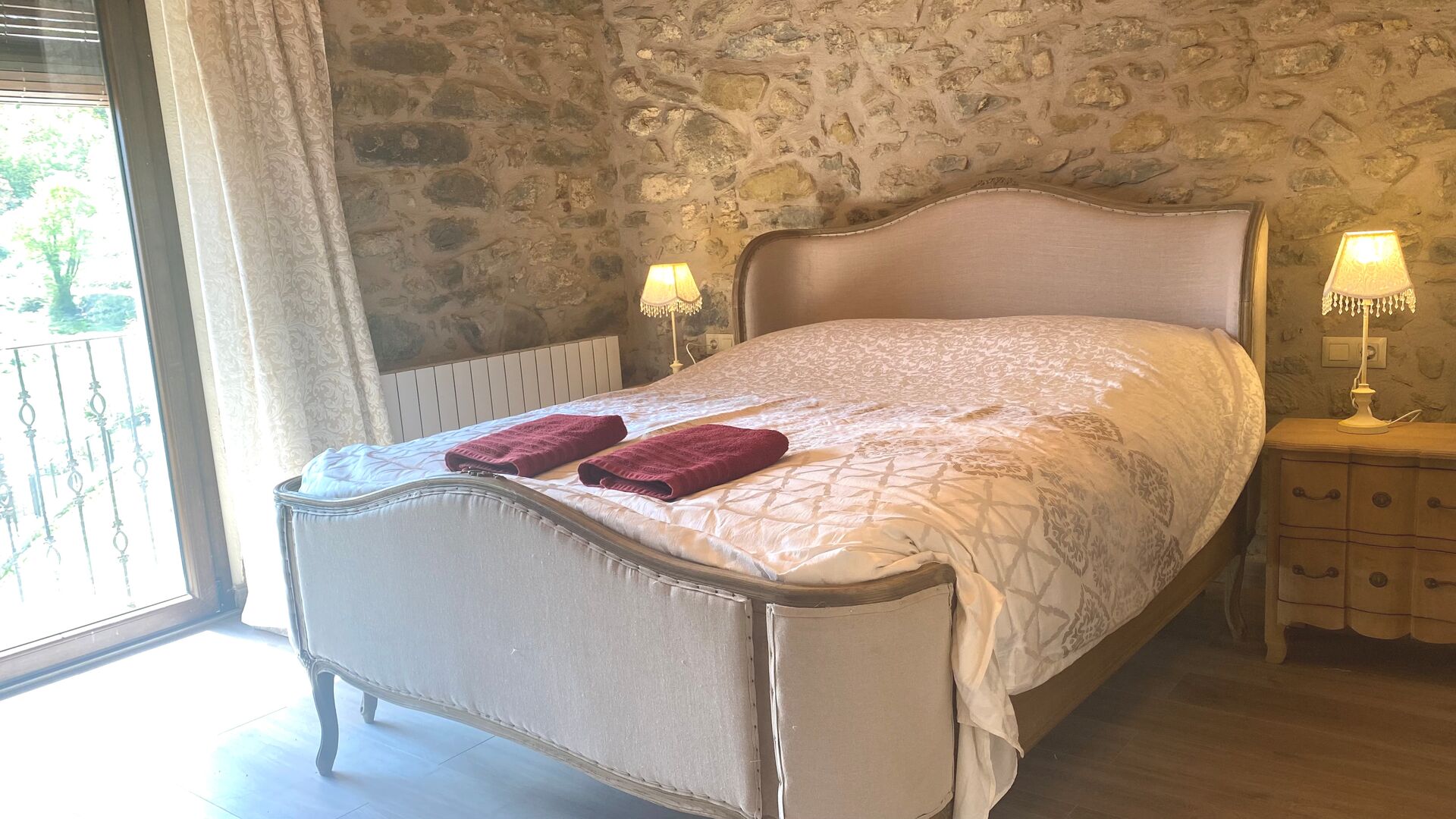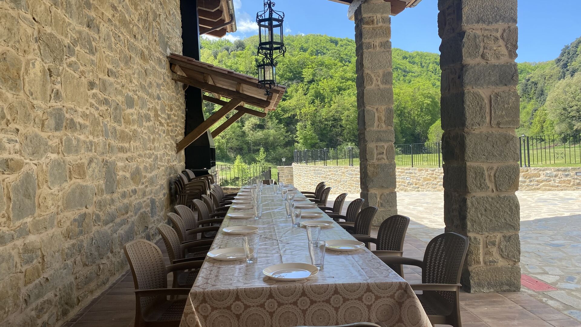 Deixa els teus sentits i gaudeix de la vista impressionant de les muntanyes fins a finals de maig, fins i tot uns quants cims encara amb neu, acompanyats pel tranquil xiulet del petit rierol que passa per sota la casa, els ocells i les abelles i, a la llunyania, les acollidores campanes de les vaques de l'Eva més amunt del turó. Tot això, mentre el sol català càlid i la brisa de la muntanya fan la vida plena de comoditat.