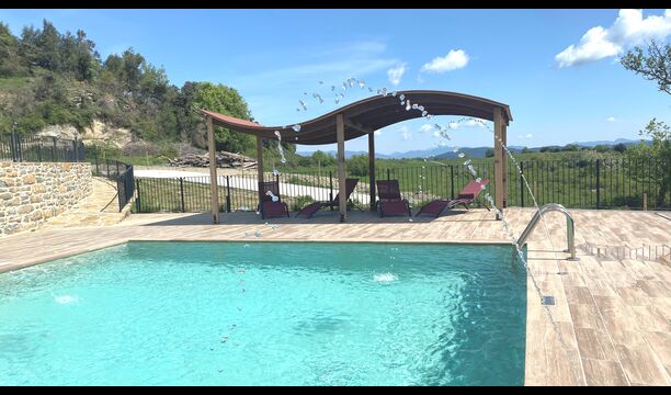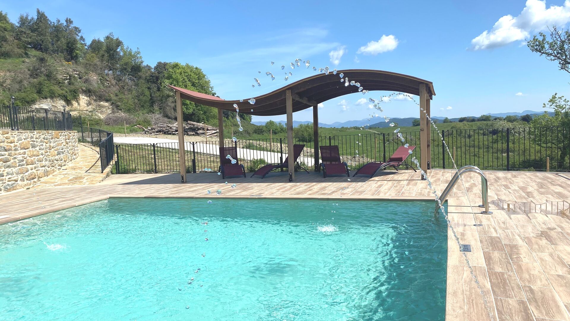 La gran zona de la piscina és el punt natural de relaxació. Hi ha moltes ganques de sol, i si fa massa calor, només podeu banyar-vos a la piscina gran de 12 x 7 metres o bé podeu beneficiar-vos de l'ombra sota la pèrgola al final de la piscina.