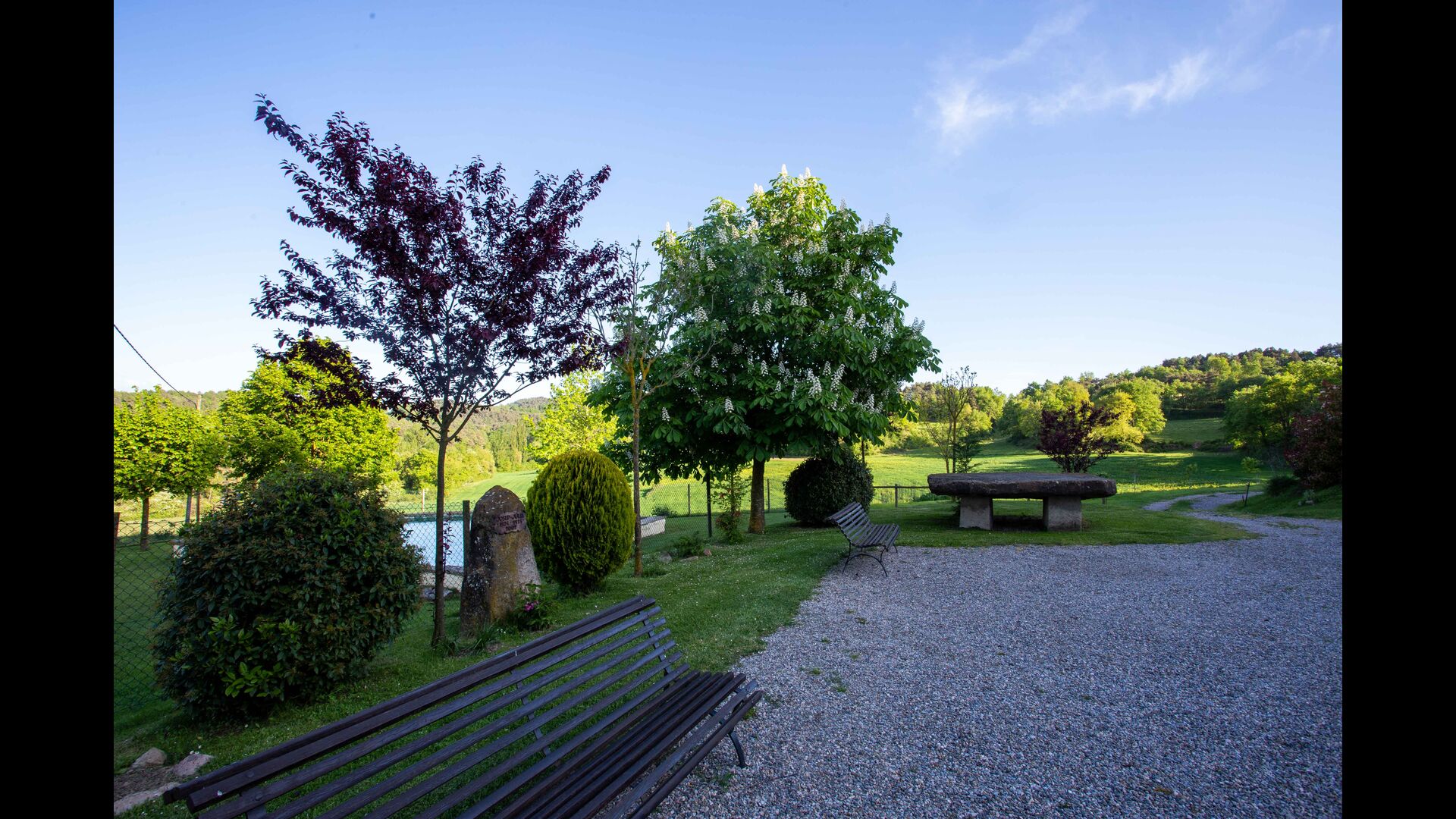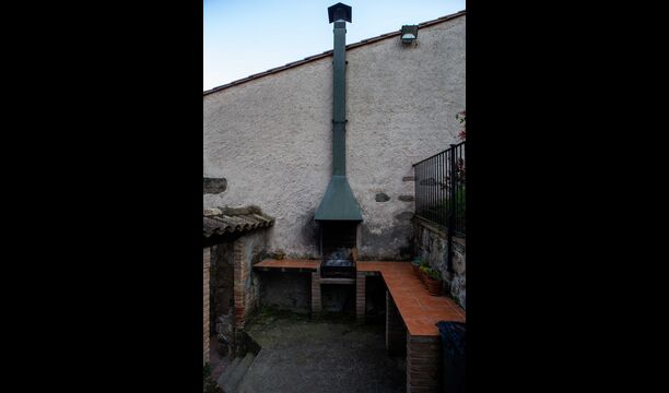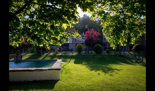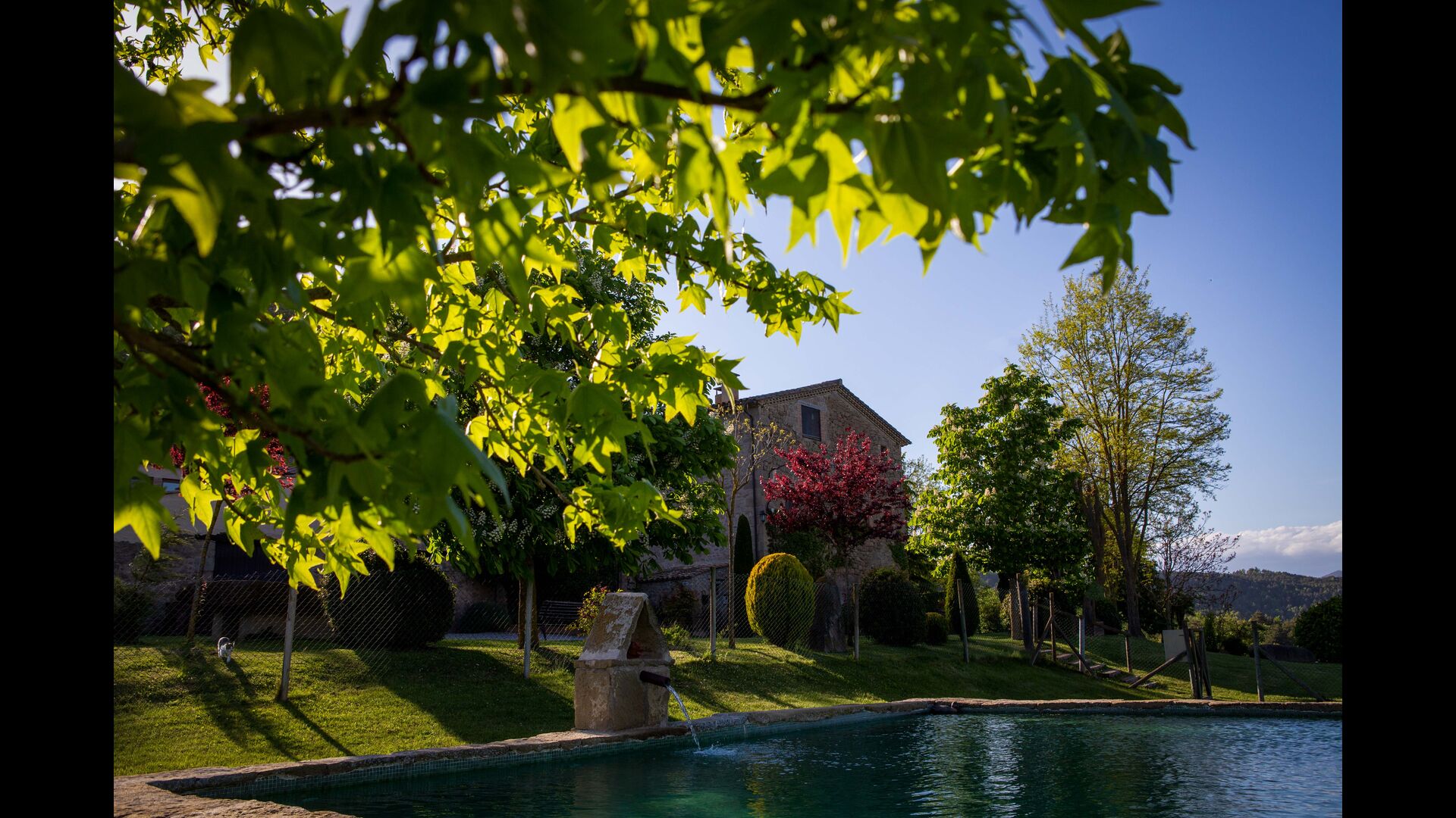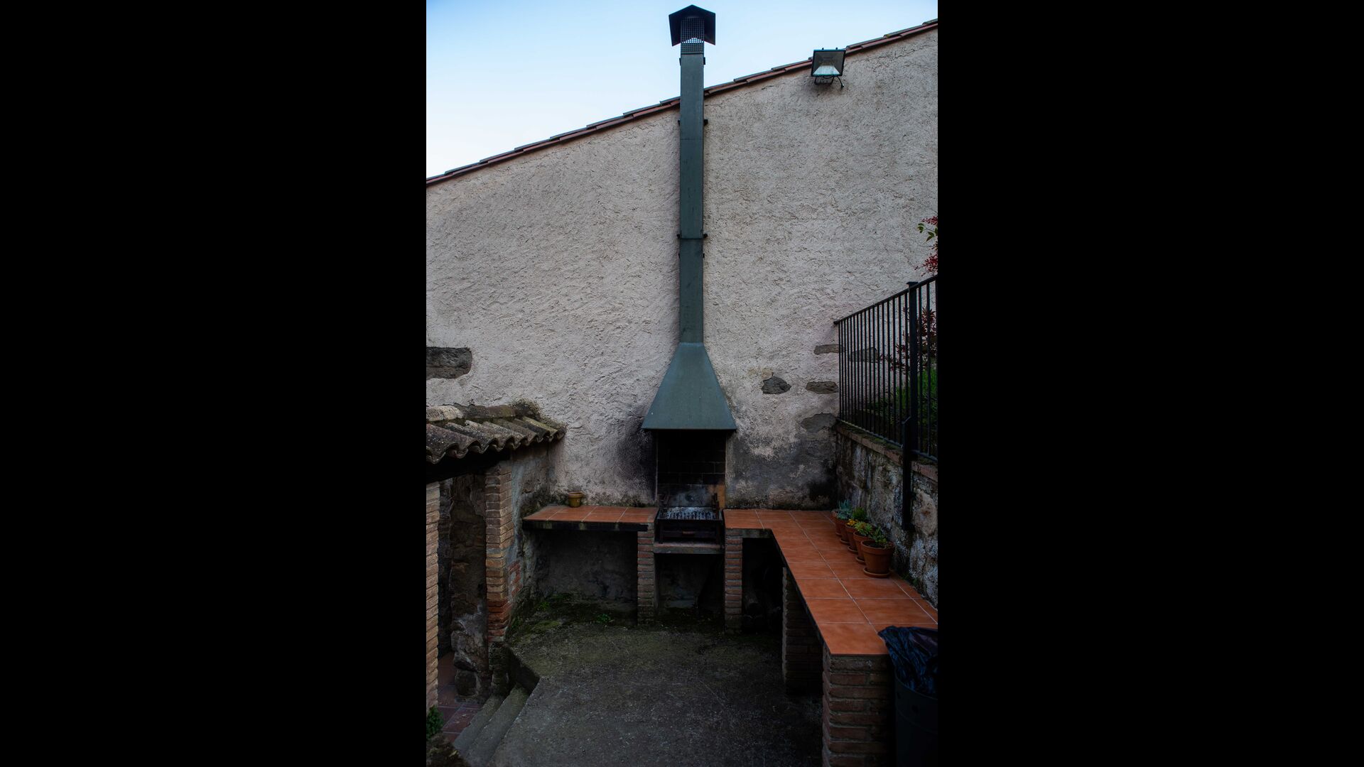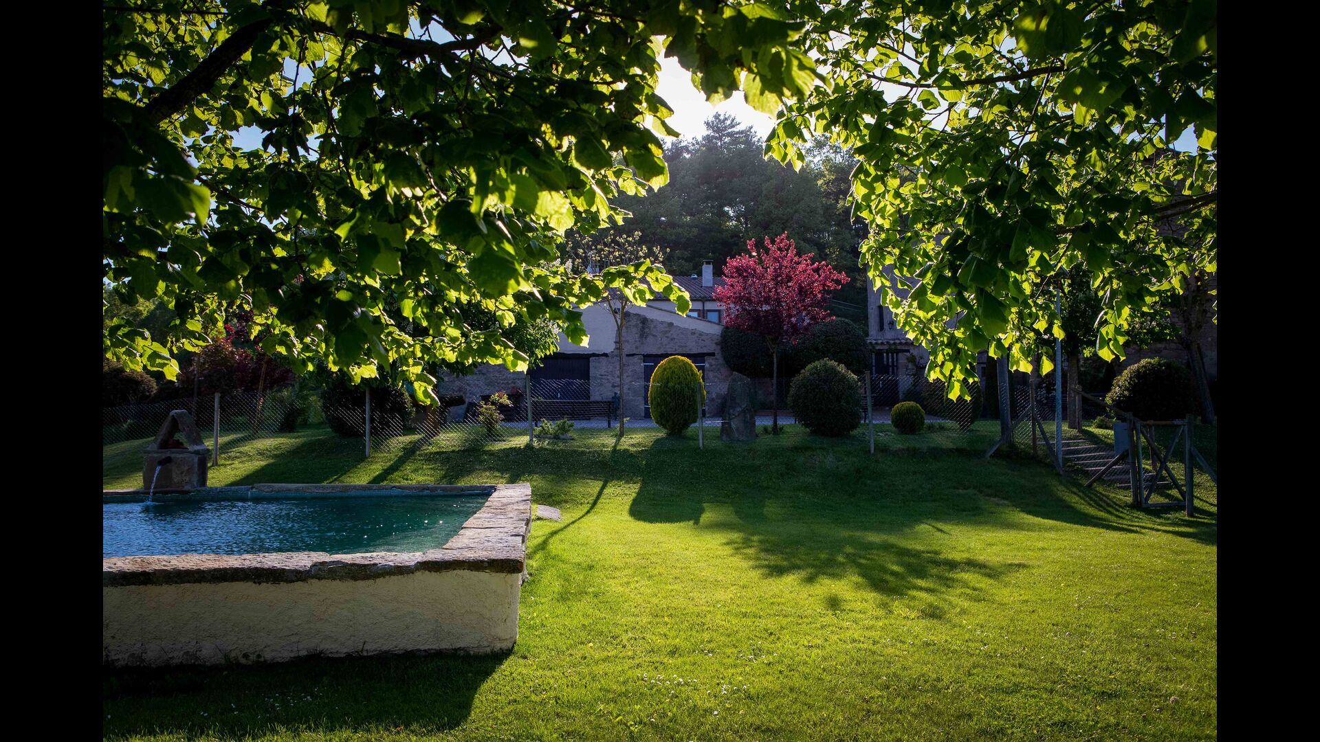 A l'exterior, hi ha un pati amb barbacoa, ideal per menjar a l'aire lliure. També hi ha una terrassa al nivell amb el pis superior, si prefereix sopar amb una vista. La piscina és molt especial. En lloc de construir una piscina tradicional, Joan i Alicia van decidir fer una piscina, que en major mesura coincideix amb la casa i la història. Per això, la piscina s'ha realitzat amb roques i amb una petita font que circula per l'aigua. És molt gran (9 x 8 metres) i funciona com una piscina habitual.