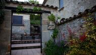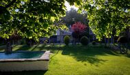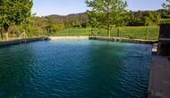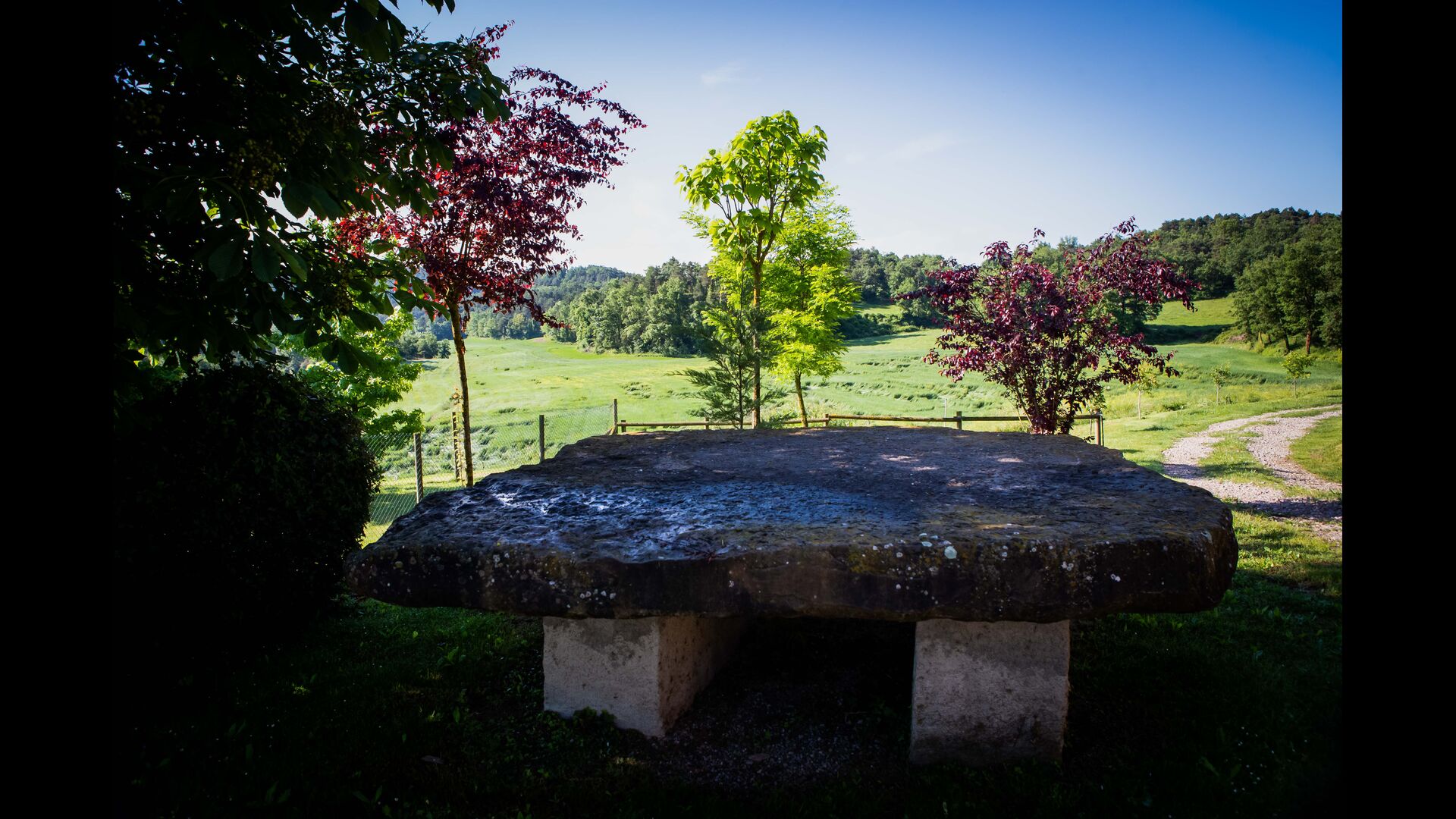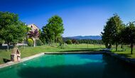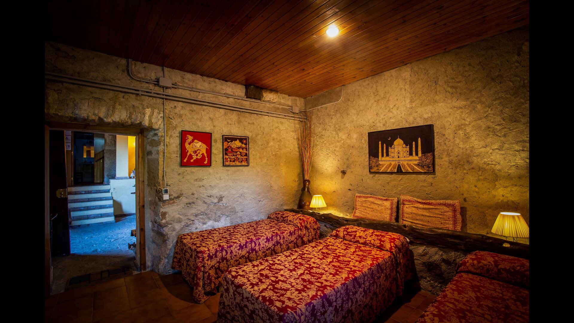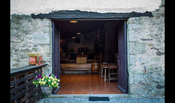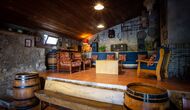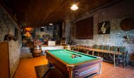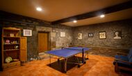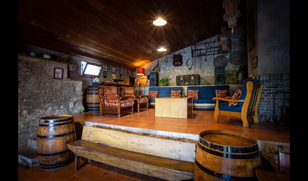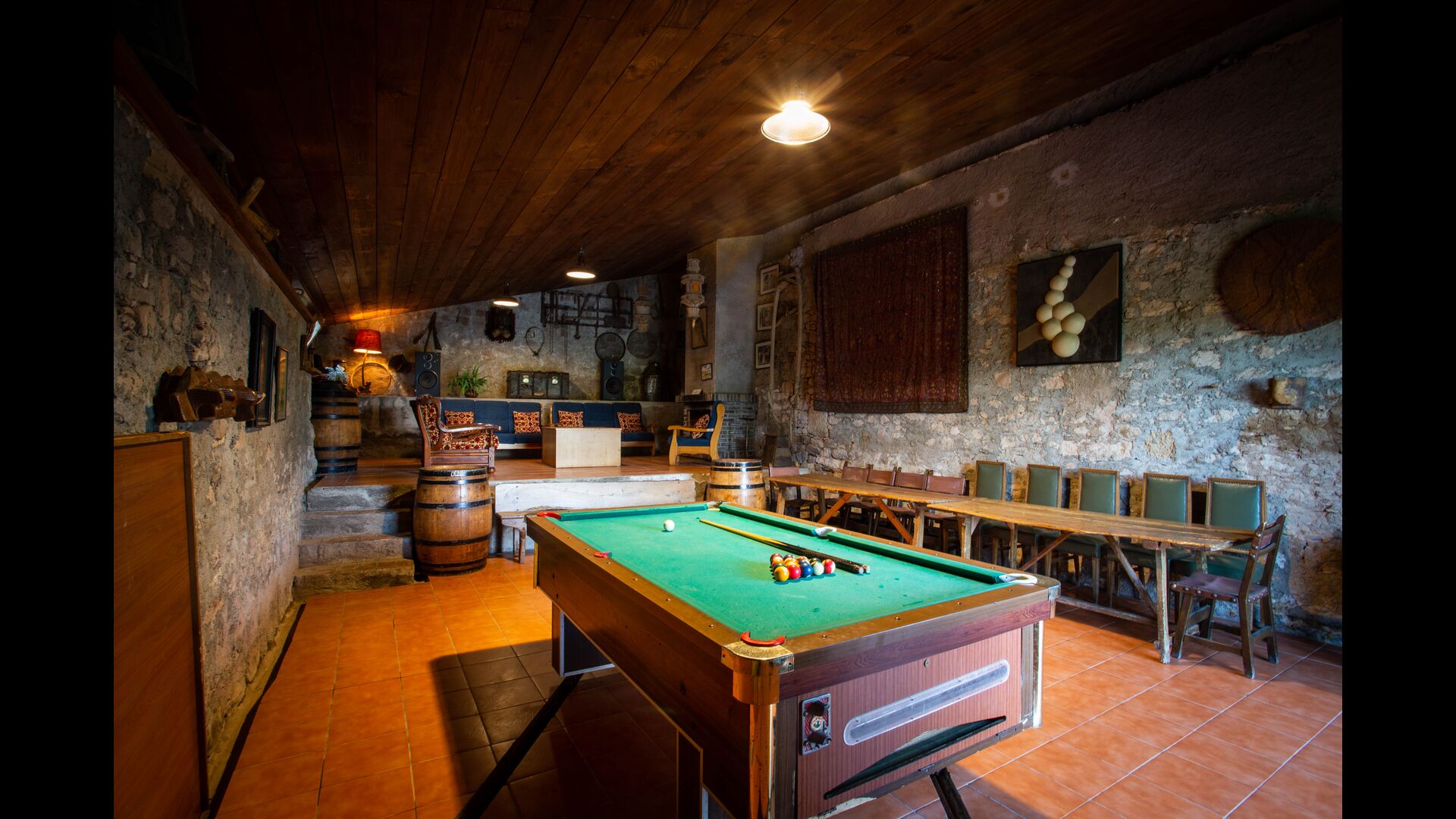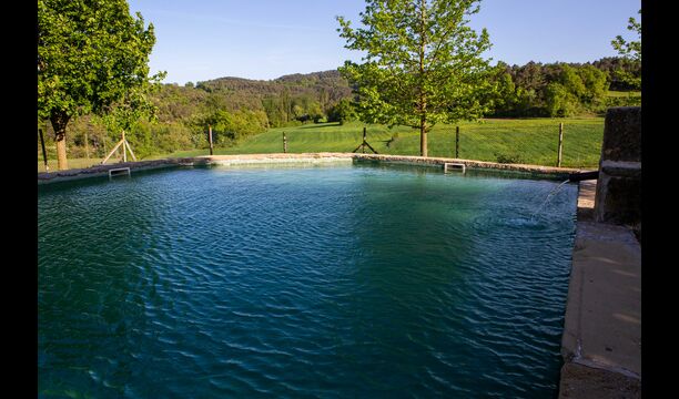 A l'exterior, hi ha un pati amb barbacoa, ideal per menjar a l'aire lliure. També hi ha una terrassa al nivell amb el pis superior, si prefereix sopar amb una vista. La piscina és molt especial. En lloc de construir una piscina tradicional, Joan i Alicia van decidir fer una piscina, que en major mesura coincideix amb la casa i la història. Per això, la piscina s'ha realitzat amb roques i amb una petita font que circula per l'aigua. És molt gran (9 x 8 metres) i funciona com una piscina habitual.