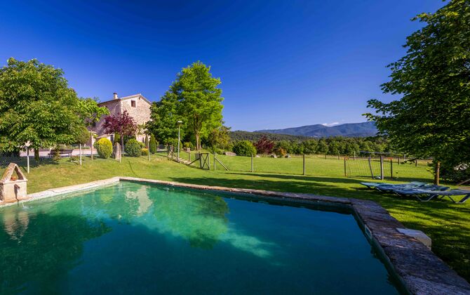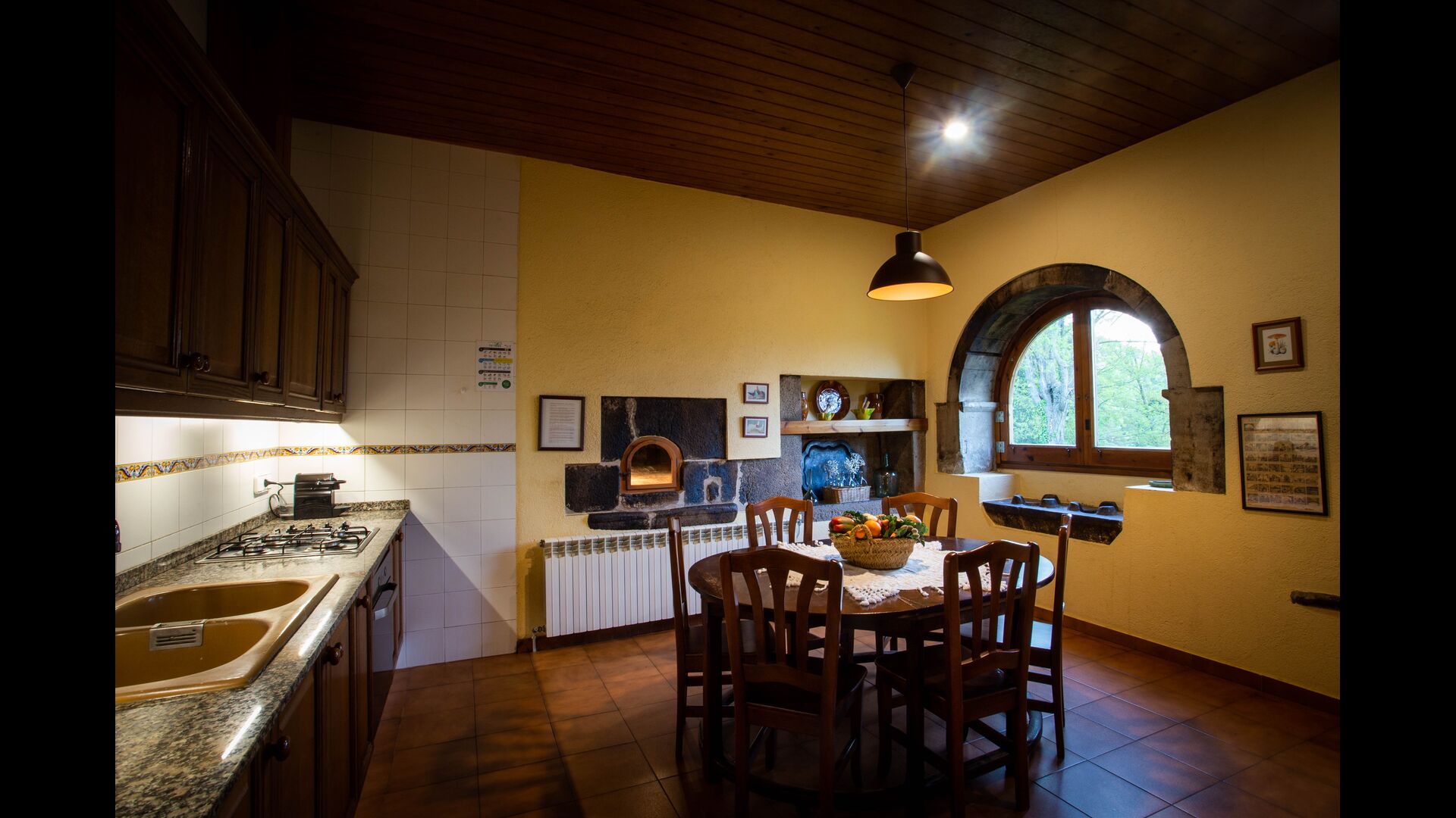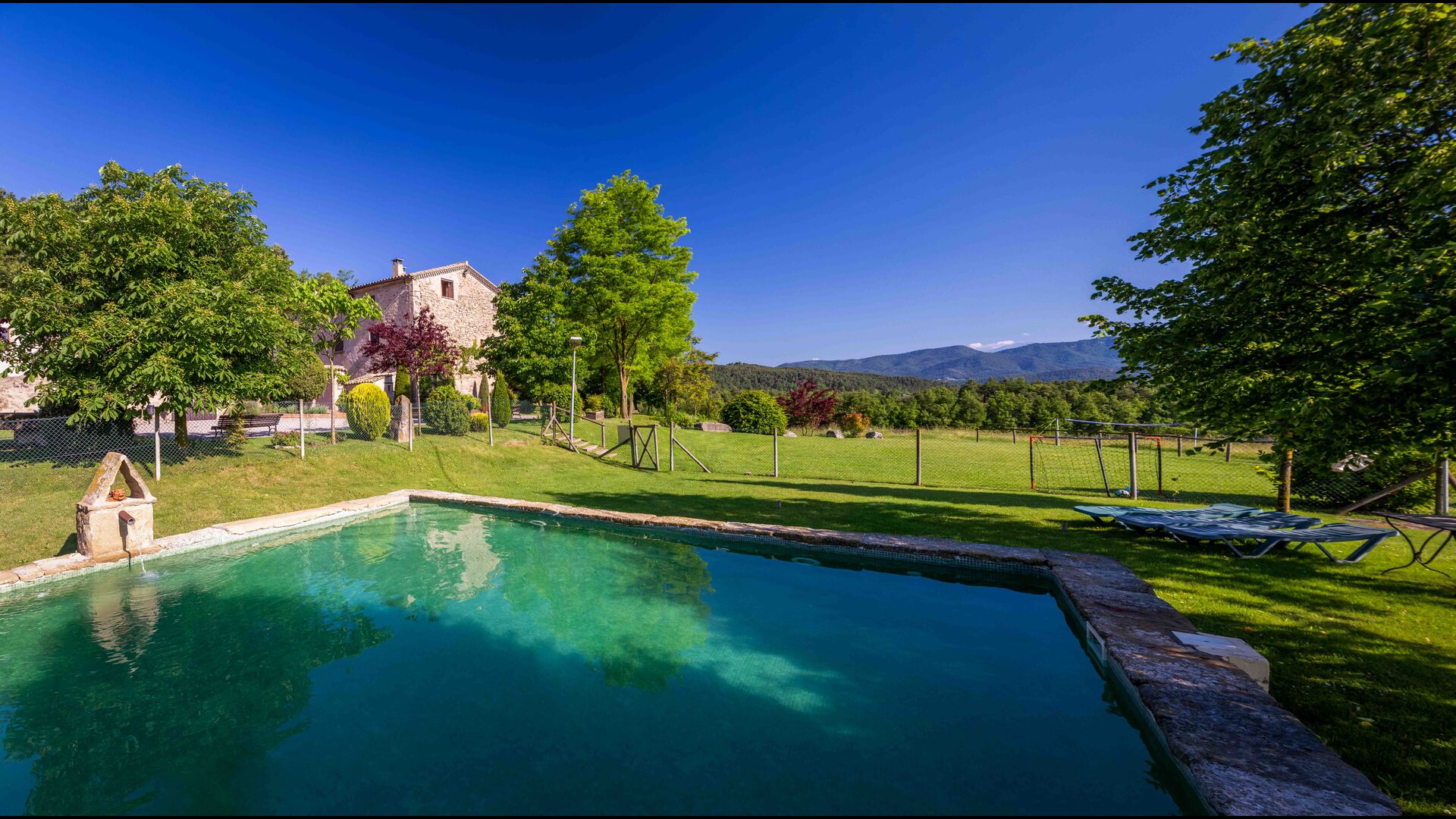 Casa Vinas gran està situada en un entorn tranquil i verd en una vall a la regió d'Osona, entre els Pirineus i Barcelona. La casa molt autèntica de vuit dormitoris li proporciona una base privada. No hi ha veïns propers i al voltant de la casa, hi ha diversos llocs agradables a el sol oa l'ombra com prefereixi per relaxar-se. La casa té dos pisos. A la planta baixa, hi ha una cuina totalment equipada amb rentavaixelles i microones, una agradable sala d'estar amb TV i llar de foc i una sala d'activitats amb ping-pong. Hi ha quatre habitacions que comparteixen dos banys. Hi ha dues habitacions dobles i dos triples i dos llits supletoris possibles. A la planta superior, hi ha una altra cuina totalment equipada, una altra sala d'estar i quatre habitacions dobles que comparteixen 2 banys i amb dos llits supletoris.