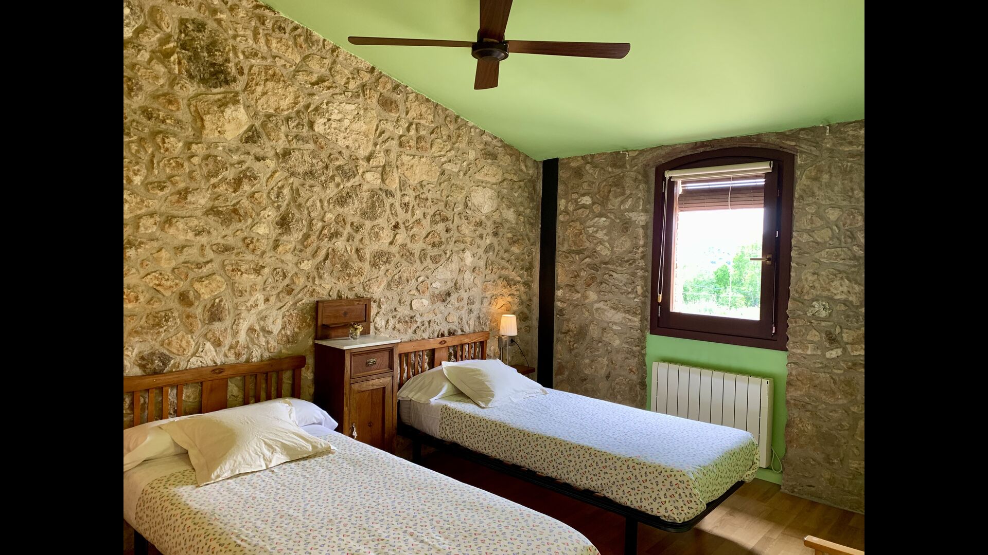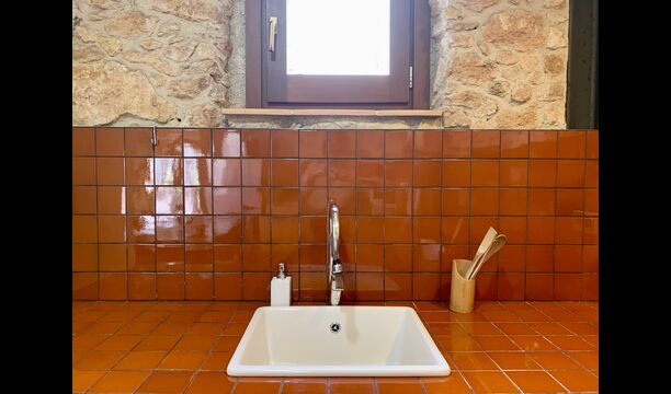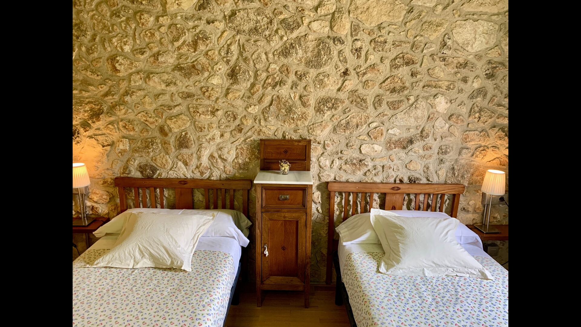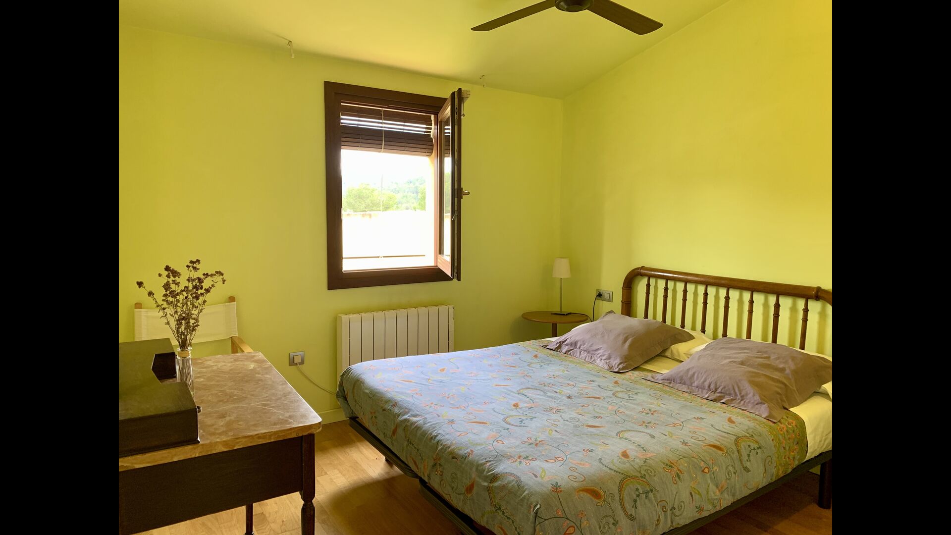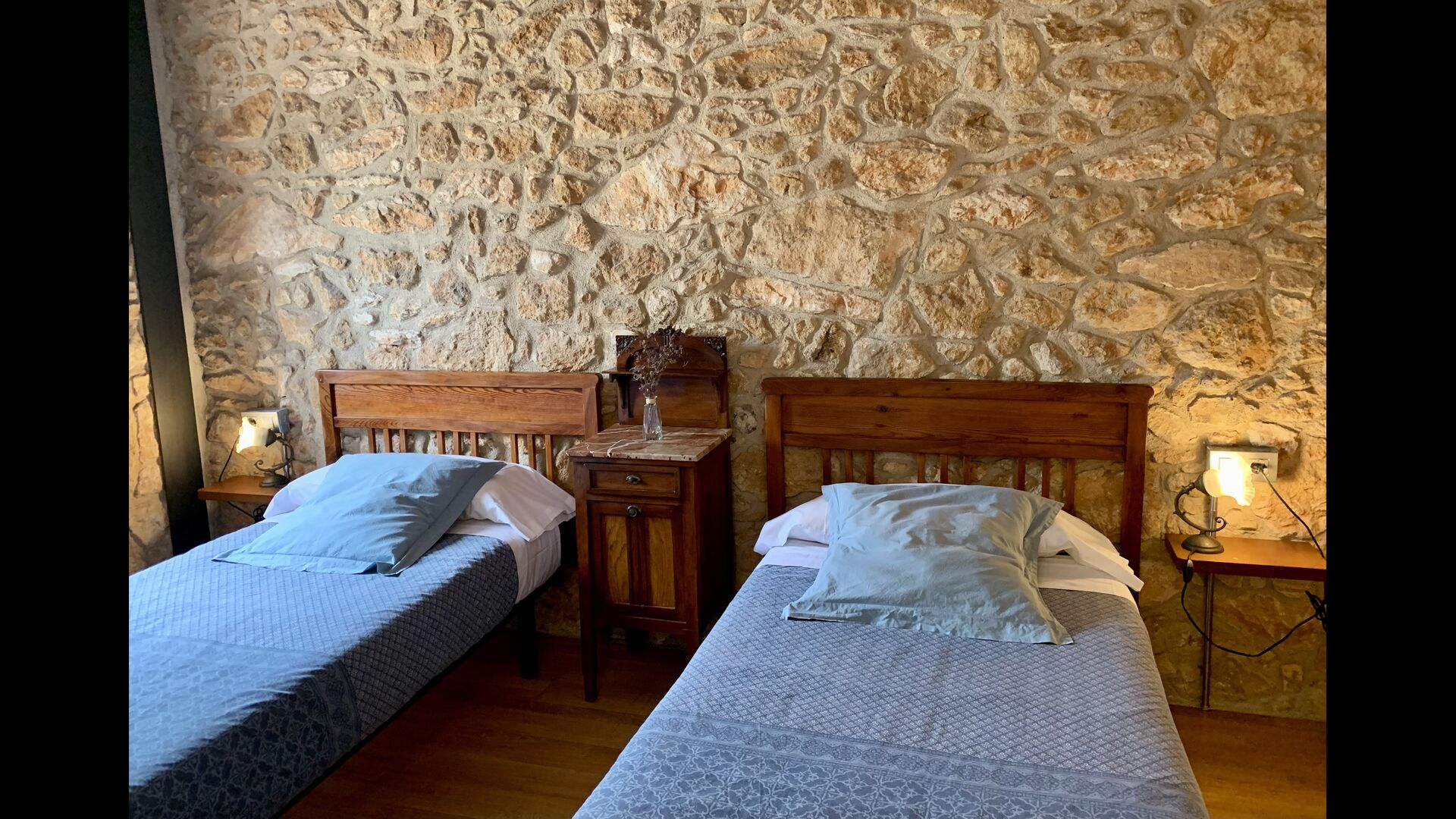 A l'interior de la Casa Hellas et reben un entorn acollidor, espaiós i funcional. La casa consta de dues plantes. La planta baixa consta d'un espai comú gran i obert que inclou una cuina àmplia i totalment equipada, un menjador i un còmode saló. La casa té aire condicionat perquè sempre et puguis refrescar a l'interior. També hi ha un bany compartit a la planta baixa, a prop de la terrassa i la piscina. Al centre de l'habitació hi ha una bonica escala oberta, que permet que la llum entri des dels dos costats de la casa i des de les claraboies del terrat. A la planta superior trobareu les quatre habitacions, totes amb bany privat. Les habitacions són d'una grandària força igual, dues d'elles orientades al carrer petit, i les altres dues a la zona enjardinada. Dos dels dormitoris tenen dos llits individuals, els altres dos llits dobles.