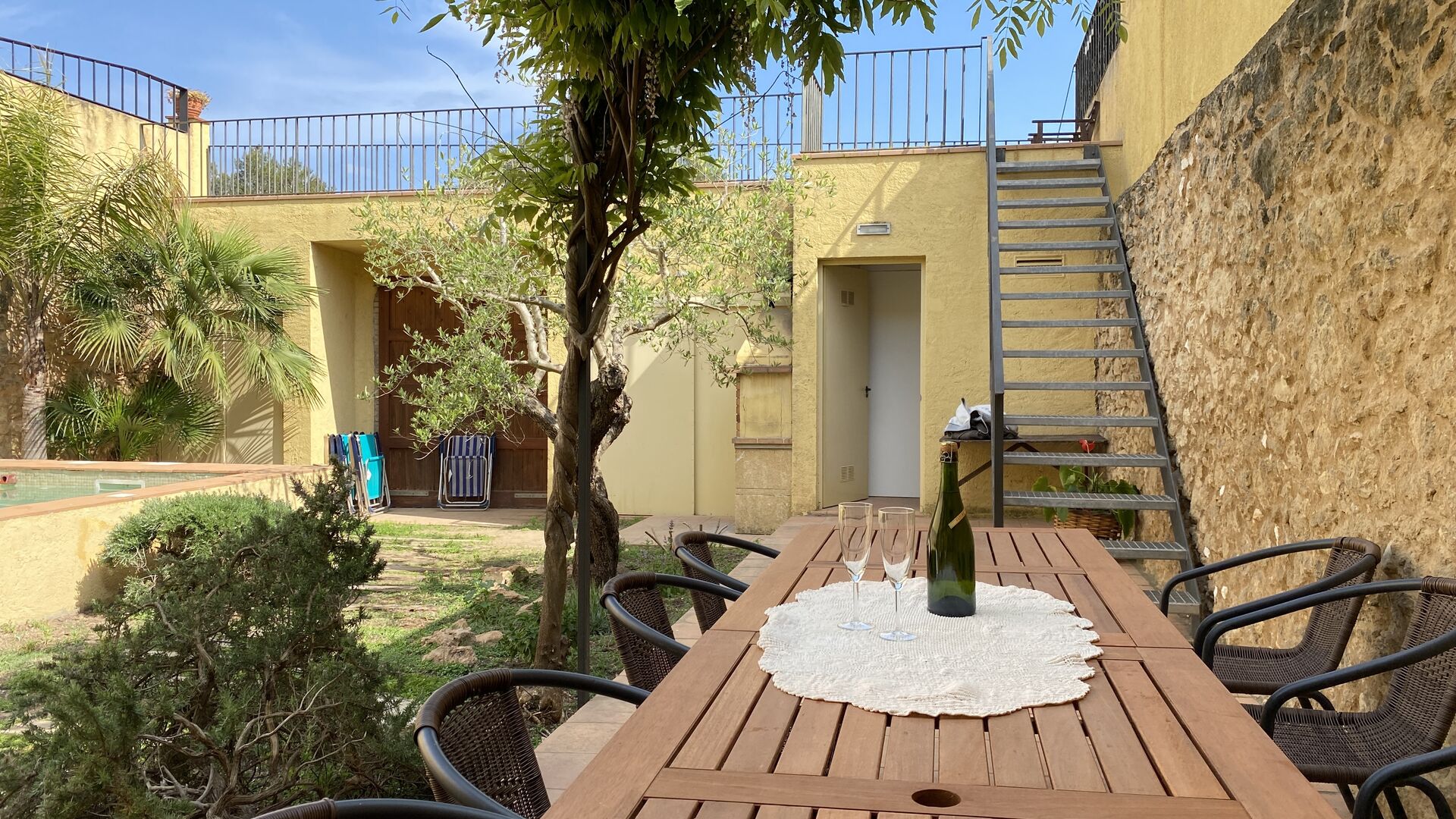 Casa Hellas té una bonica zona enjardinada amb piscina on podreu refrescar-vos, jugar i nedar durant els càlids dies d'estiu català. També hi ha una zona de barbacoa i una preciosa terrassa coberta de vinya, perfecta per sopar a l'aire lliure. Ens imaginem passar llargues nits d'estiu aquí, abraçant la tranquil·litat i gaudint d'una estona amb els amics o la família.
