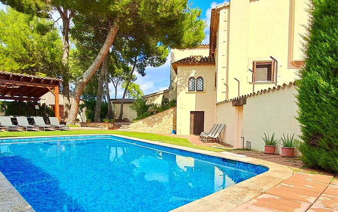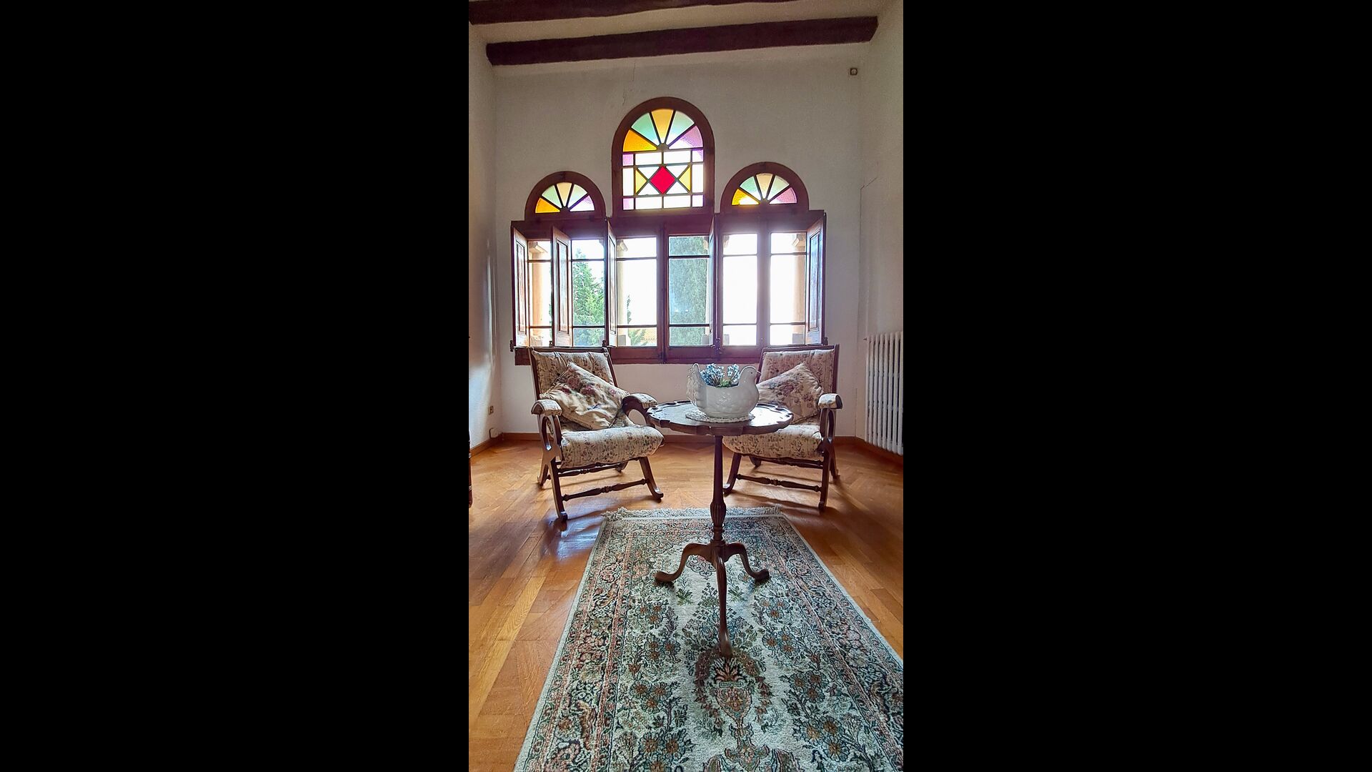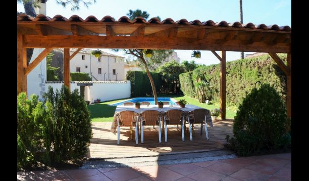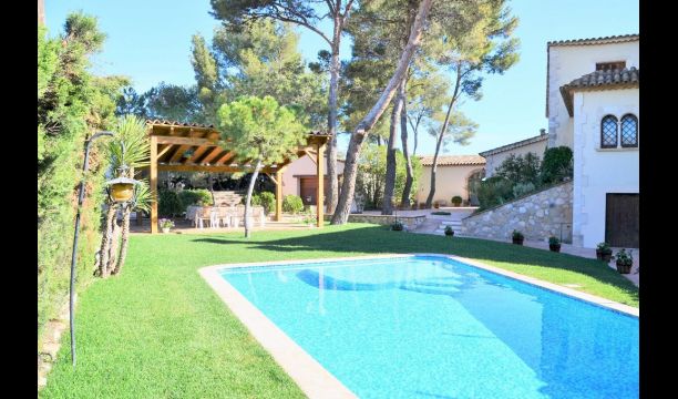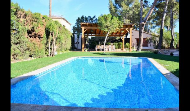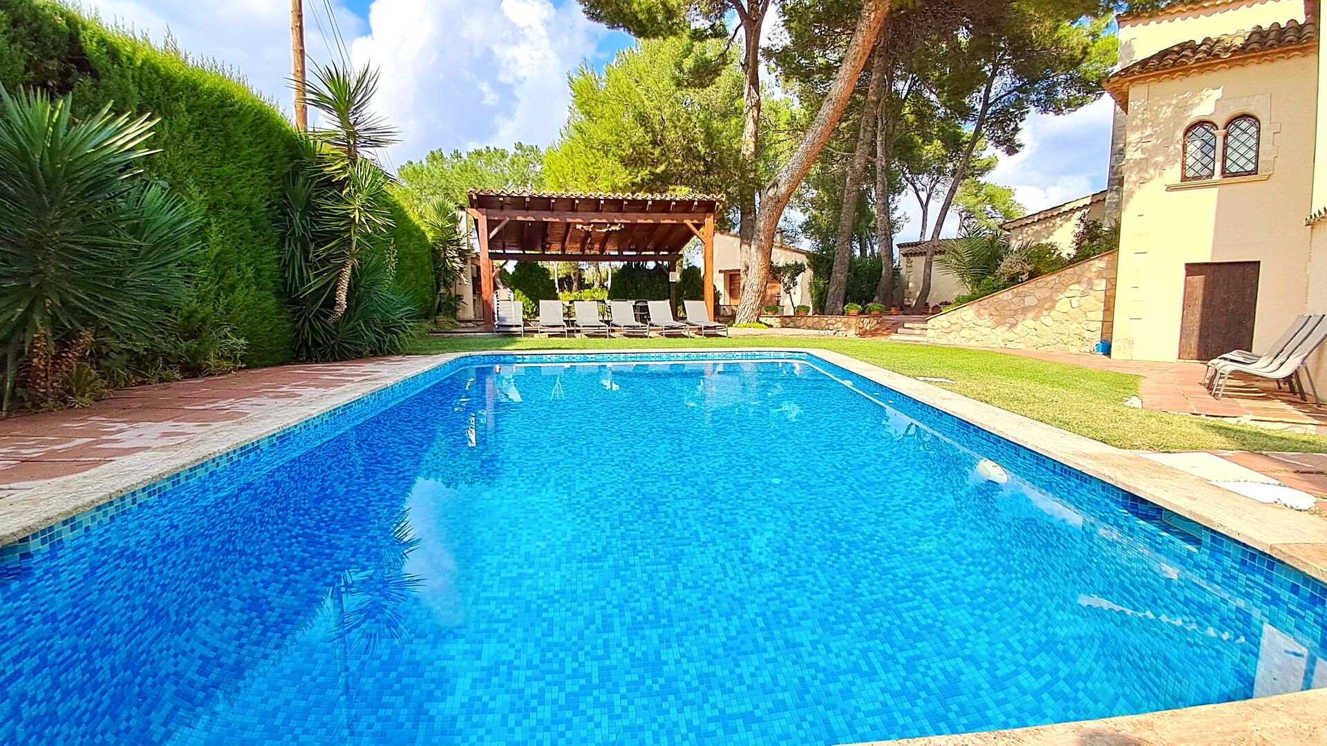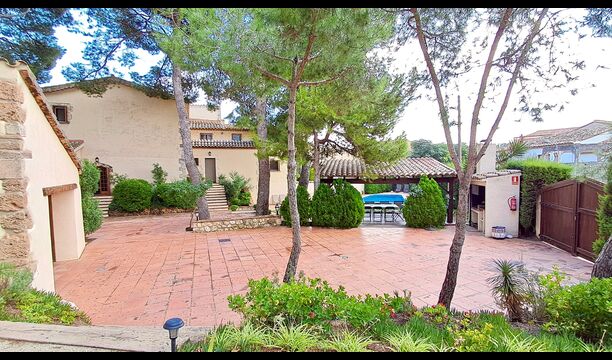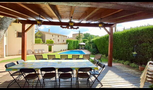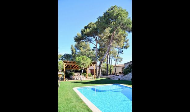 The garden on the other side of the house, is very spacious. Closest to the house, you will have the pool area with a covered terrace area. The swimming pool is 8 x 4 meters and with low part for small children. In the other end, some beautiful pine trees provide shade and excellent view over the vineyards and the MontserratMountain. A game of petanque between the trees might prove a good idea.