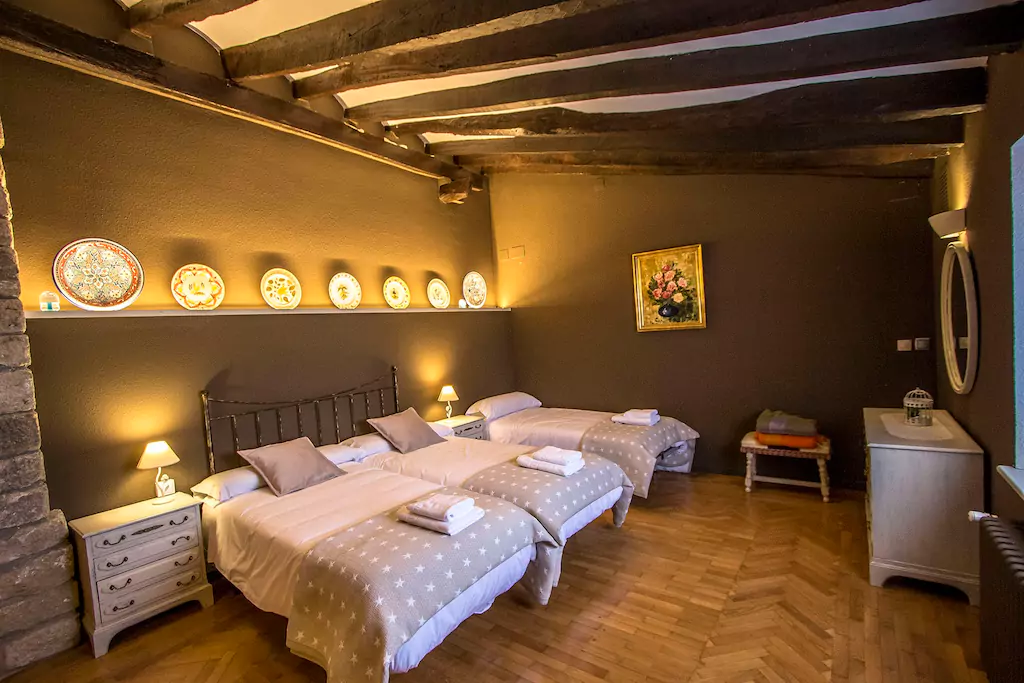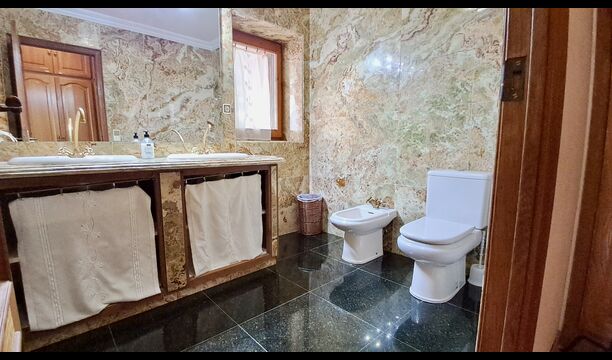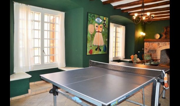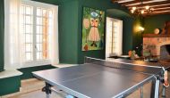 The house itself is 600 square meters, with 6 beautiful bedrooms and has room for 12+2 guests. The left part is the most antique, and where the noble people once lived. It has very high ceilings and a lot of space. The many different spaces have been used for a sofa corner with TV, a place for playing cards and a room with table tennis and armchairs in front of the fire place. The house is equipped with WIFI Internet. There are also some toilets next to the garden exit, perfect as you will probably spend a lot of time outside.