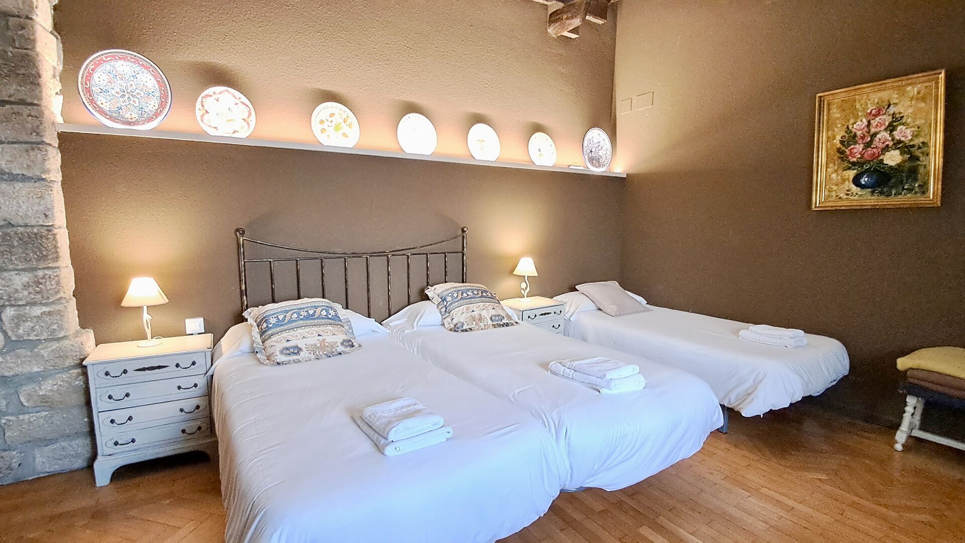 On the first floor, you find the 6 bedrooms. Four of the bedrooms are double rooms and 3 of them with bathroom ensuite. The last two bedrooms have 2 single beds each and room for an extra bed, so they can be converted to triple rooms.