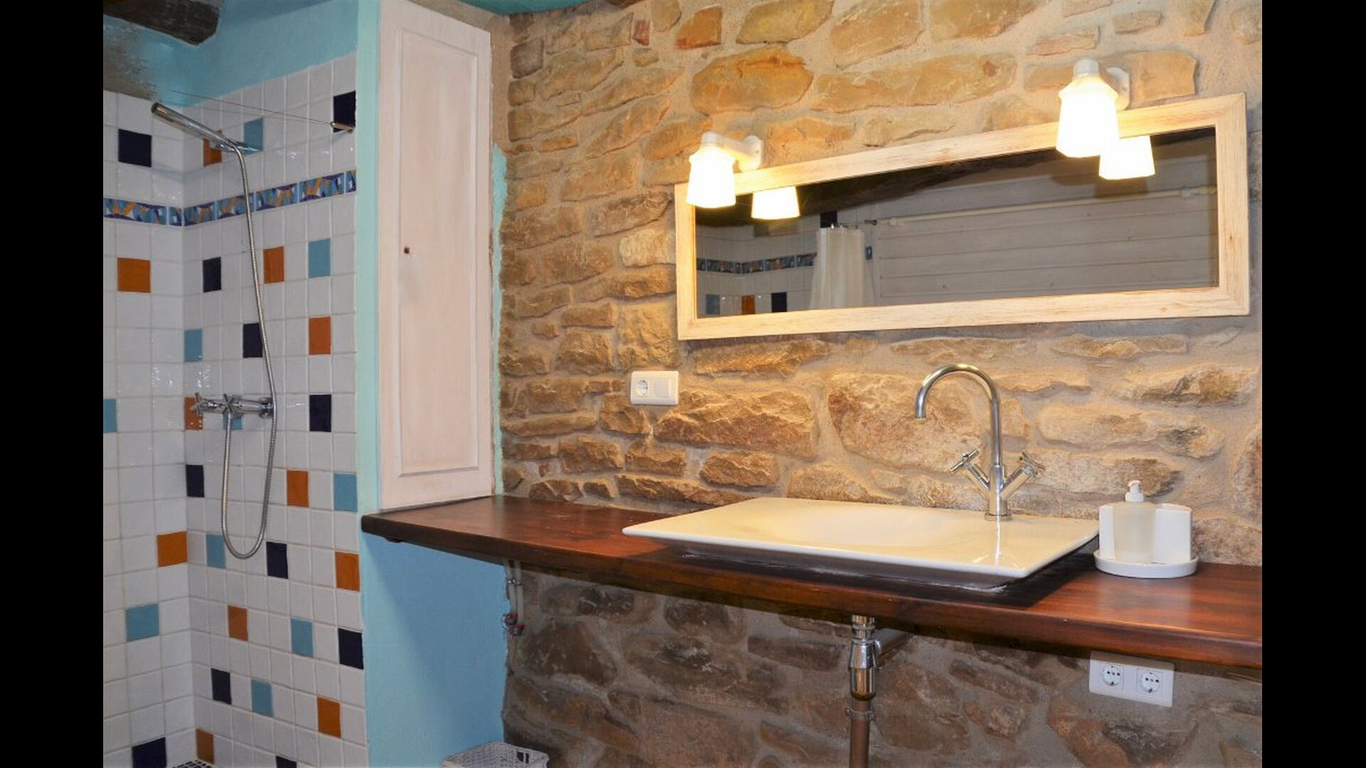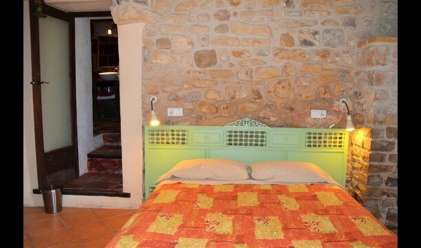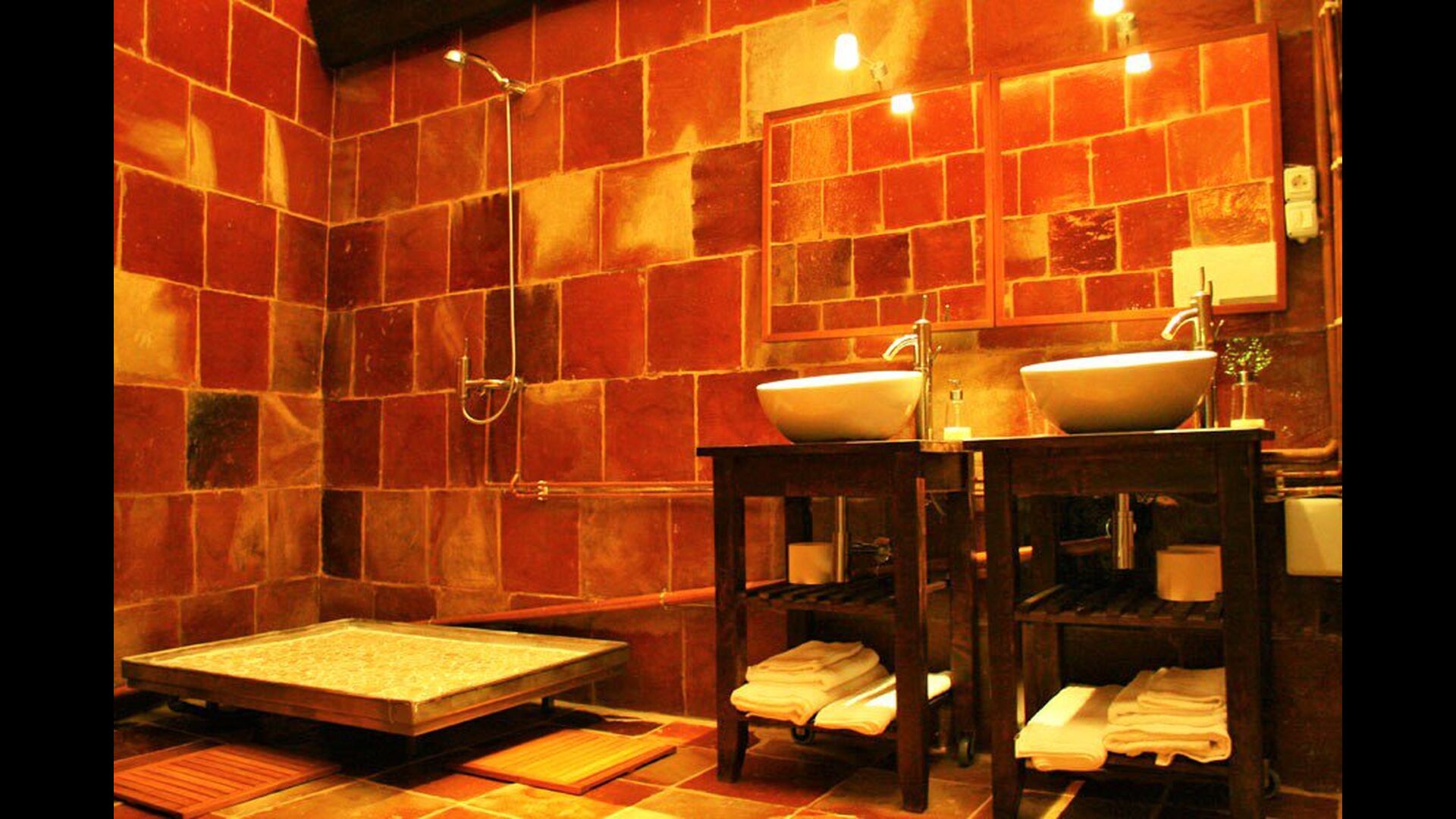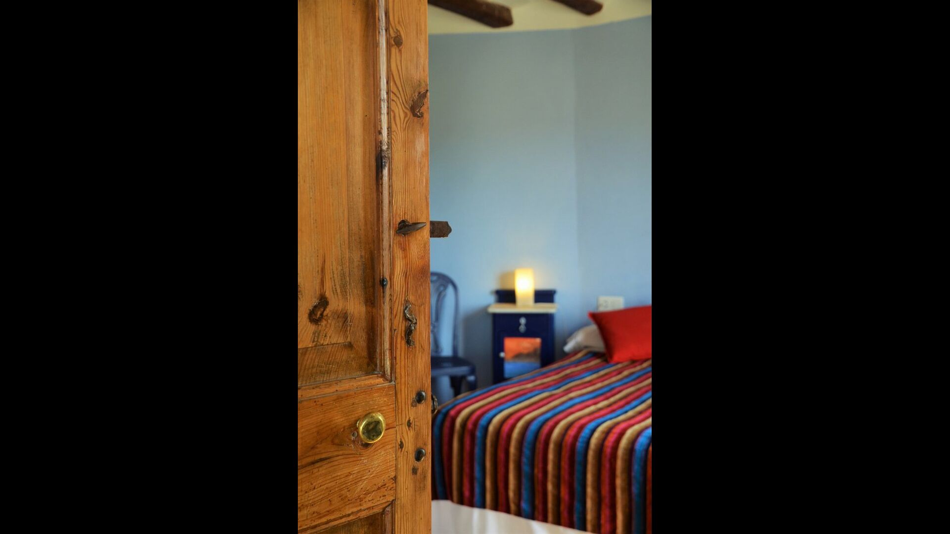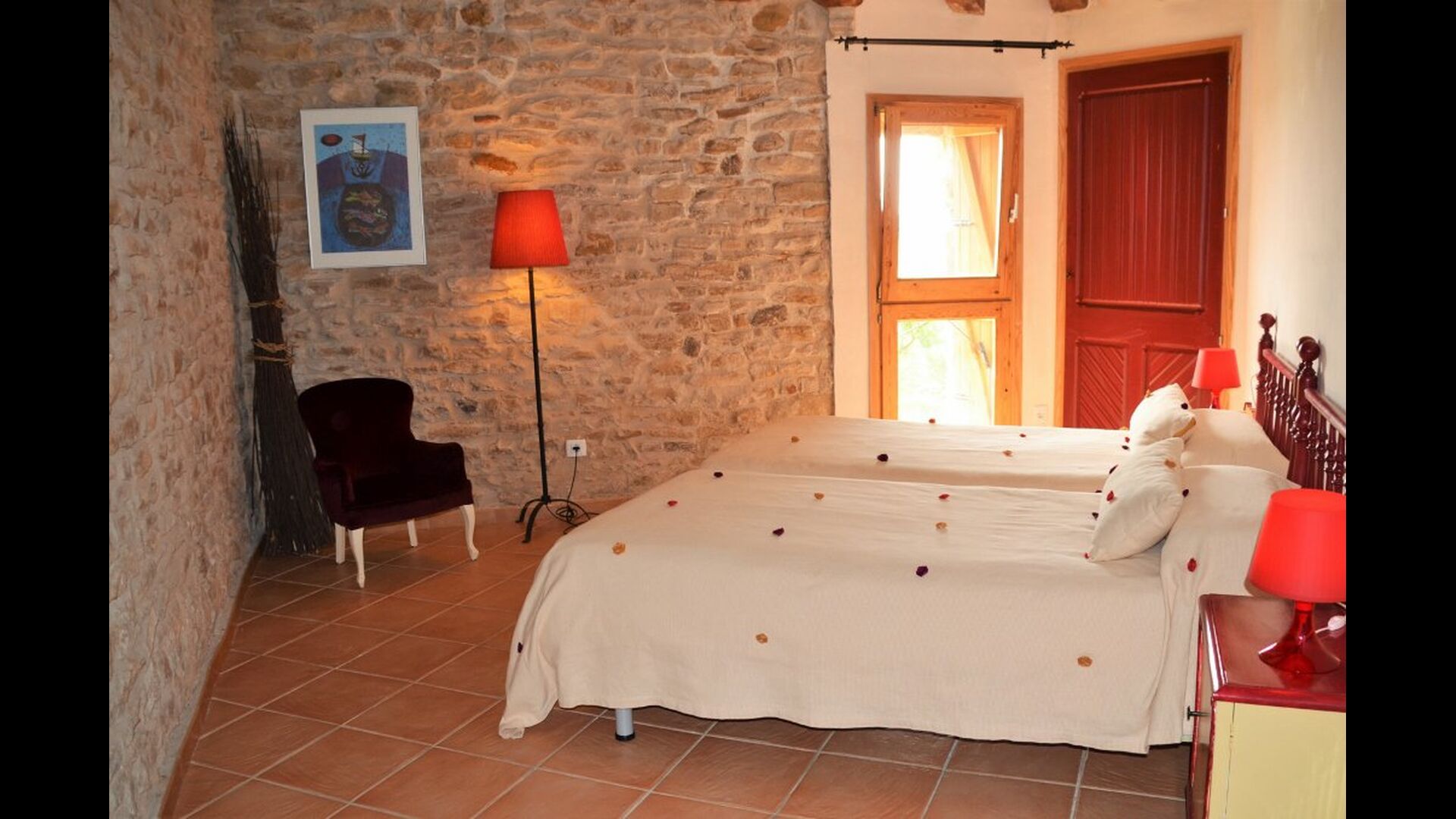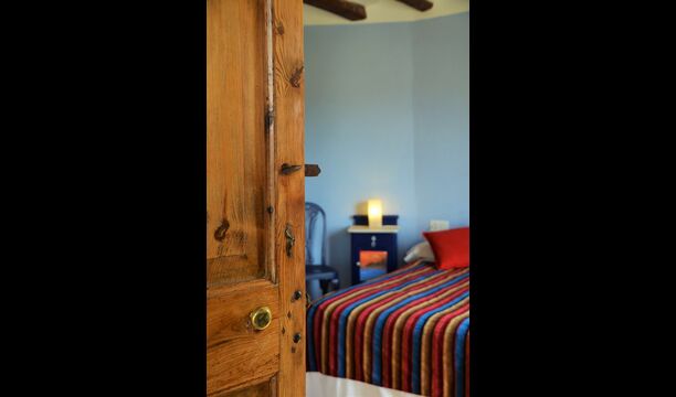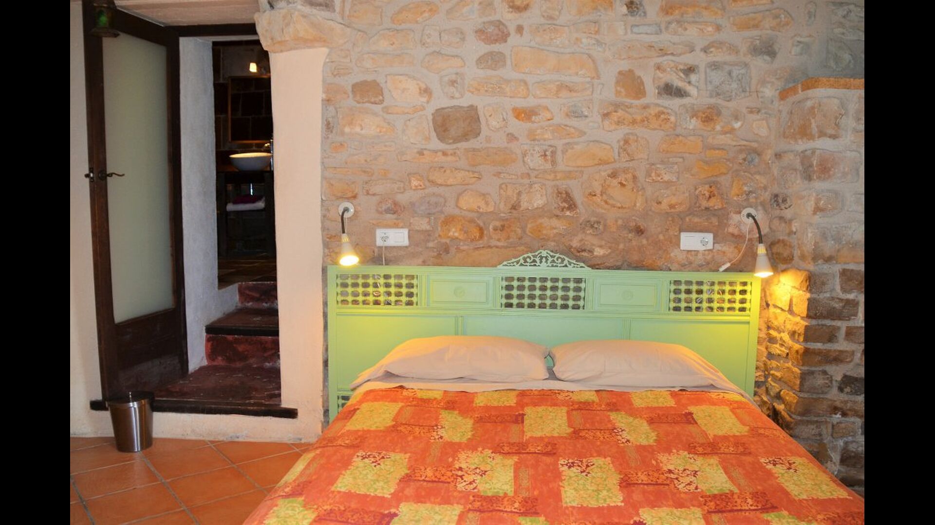 Per trobar la resta d'habitacions hem d'anar enrrera i torna al rebedor, d'on surt una escala de pedra que va cap avall i trobem a esquerra i dreta les habitacións restants, dues d'aquestes tenen bany a l'interior i les altres dues en comparteixen un.