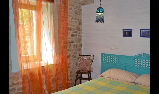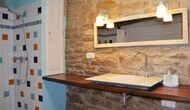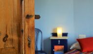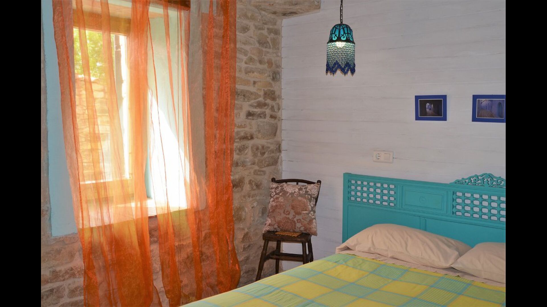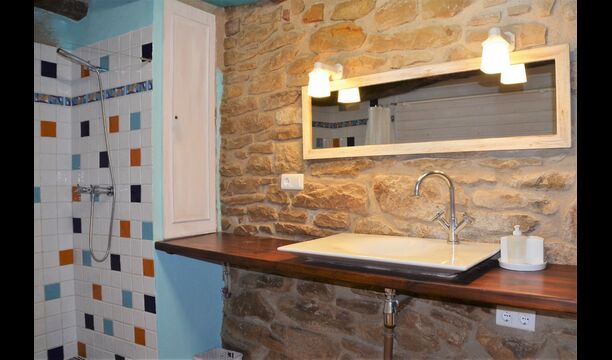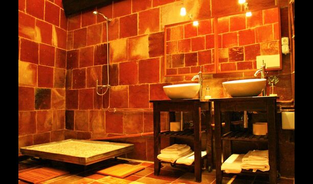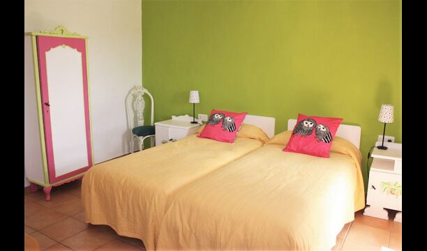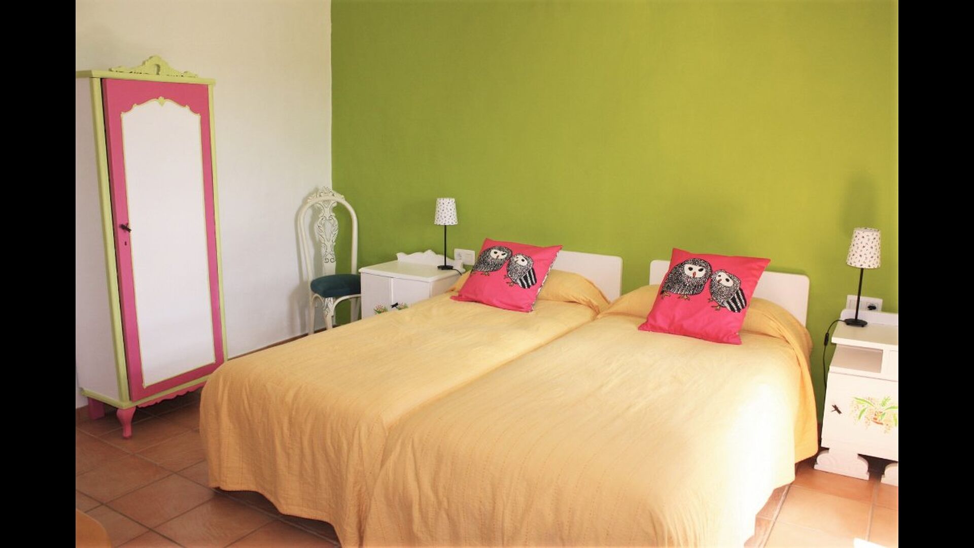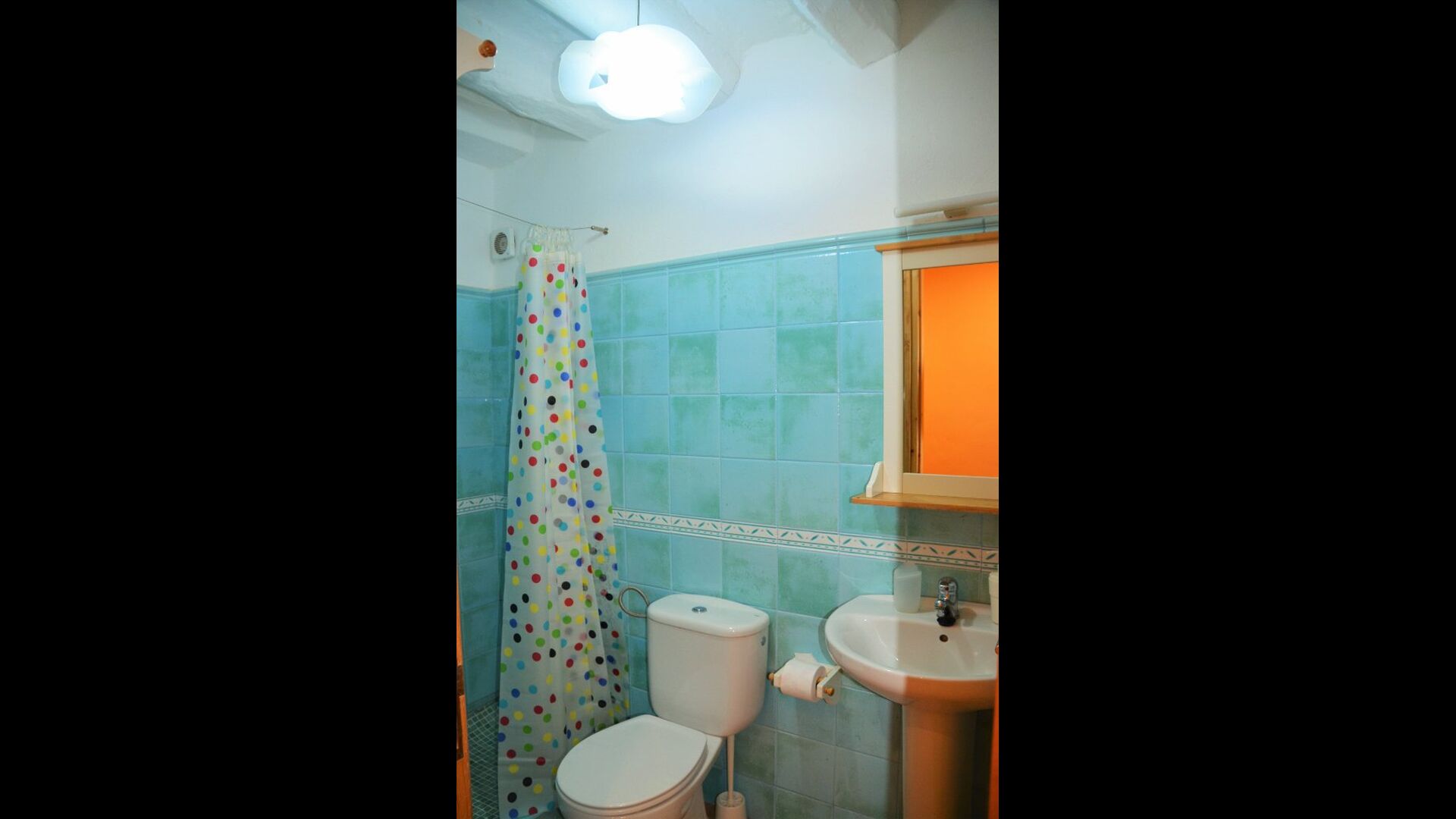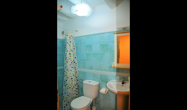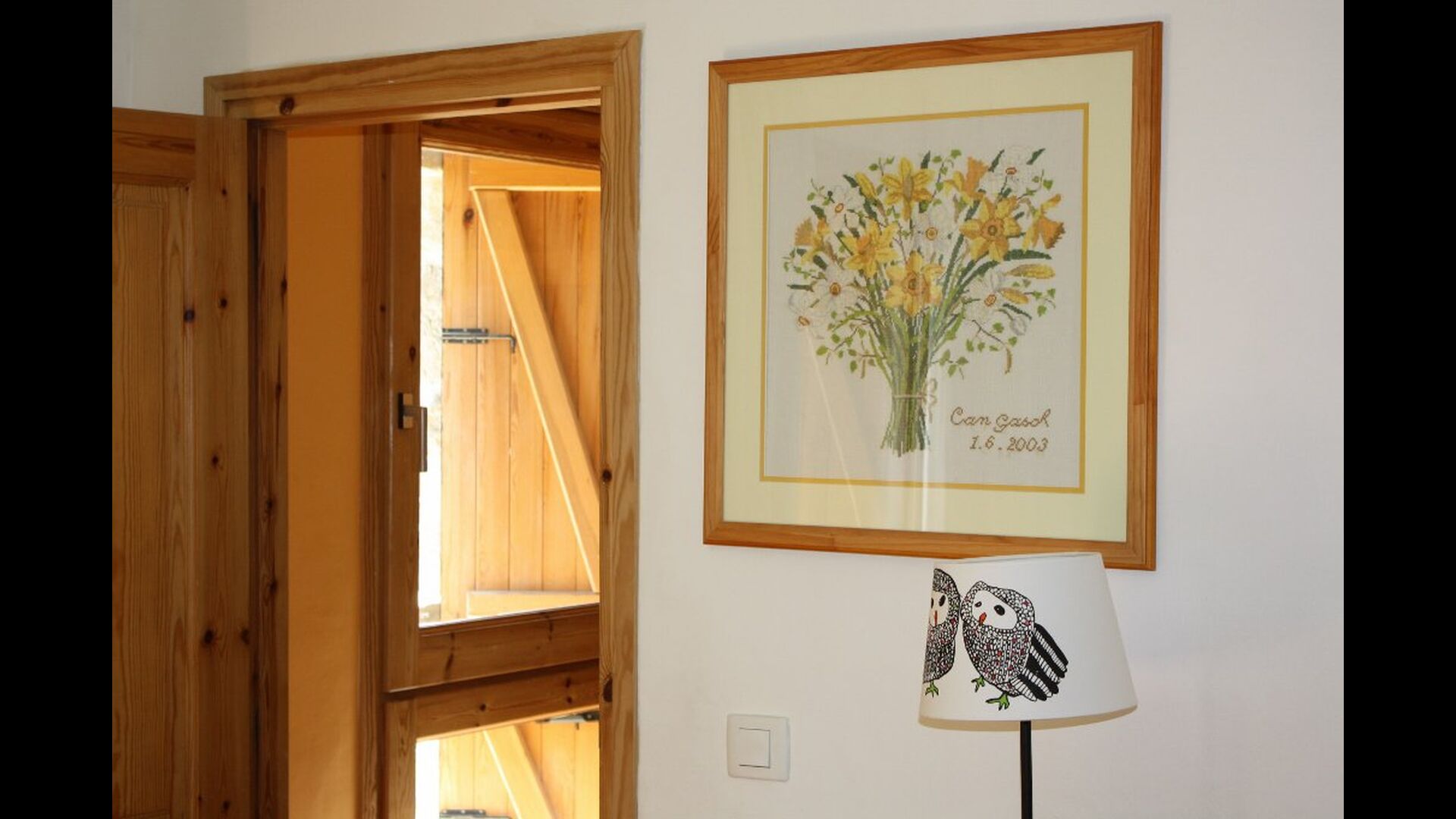 Per trobar la resta d'habitacions hem d'anar enrrera i torna al rebedor, d'on surt una escala de pedra que va cap avall i trobem a esquerra i dreta les habitacións restants, dues d'aquestes tenen bany a l'interior i les altres dues en comparteixen un.