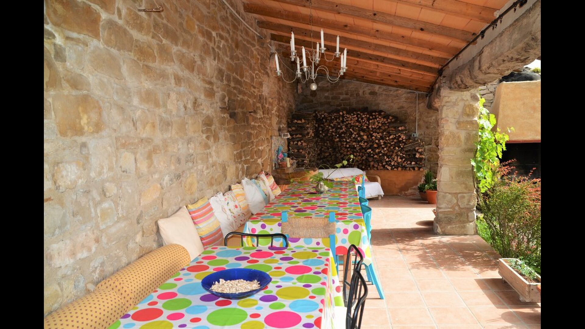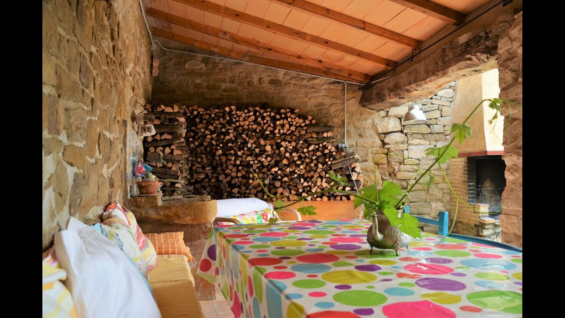 La vam comprar el 1999, i des de llavors li hem dedicat molt del nostre temps. Hem fet una restauració acurada i per fases, respectant sempre que hem pogut la seva estructura i estètica. l'hem deixat completament preparada per gaudir d'una estança confortable amb totes les comoditats d'avui dia. La nostra casa La casa està situada en un turó a MONS, entre camps de cereals i amb la serra de Queralt i del Montclar en el fons.