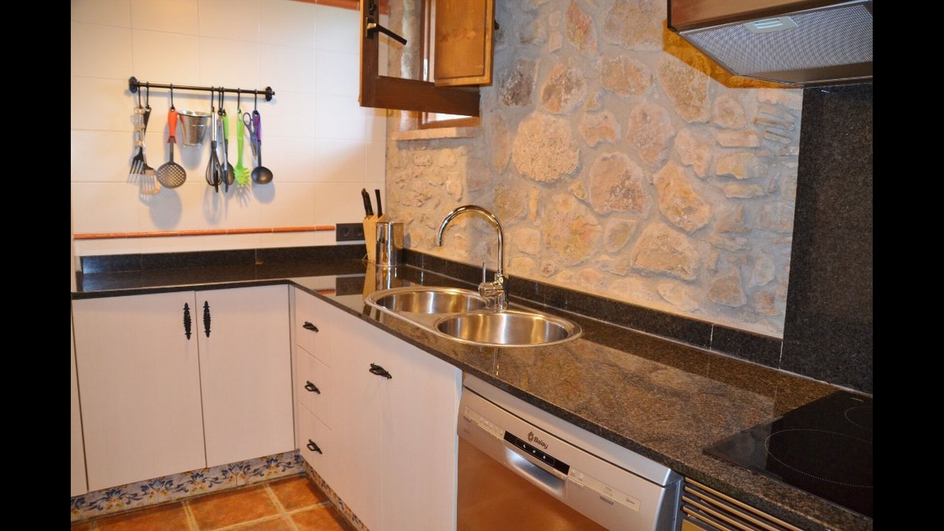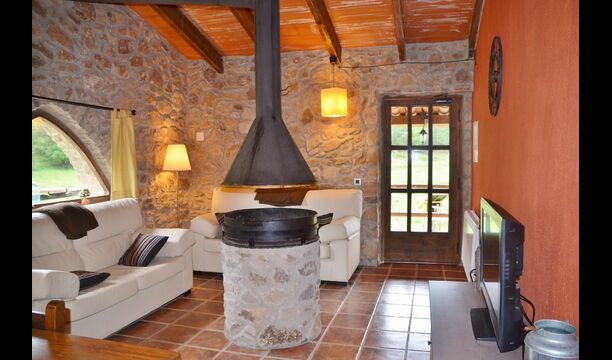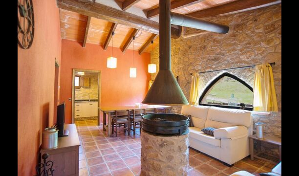 This holiday home for 6 persons, Can de Pirineus - Noguer 6 + 3P, has a size of 100 m2 and is perfect for a family. When you enter the house, you meet the common room: In one of the ends, there are two comfortable sofas and a TV with a DVD-player. In the middle of the living room, there is, very uniquely, a pretty fireplace. The dining table is connected to the sofa corner. The high and beamed ceiling and the stone walls create a cozy, rural atmosphere.