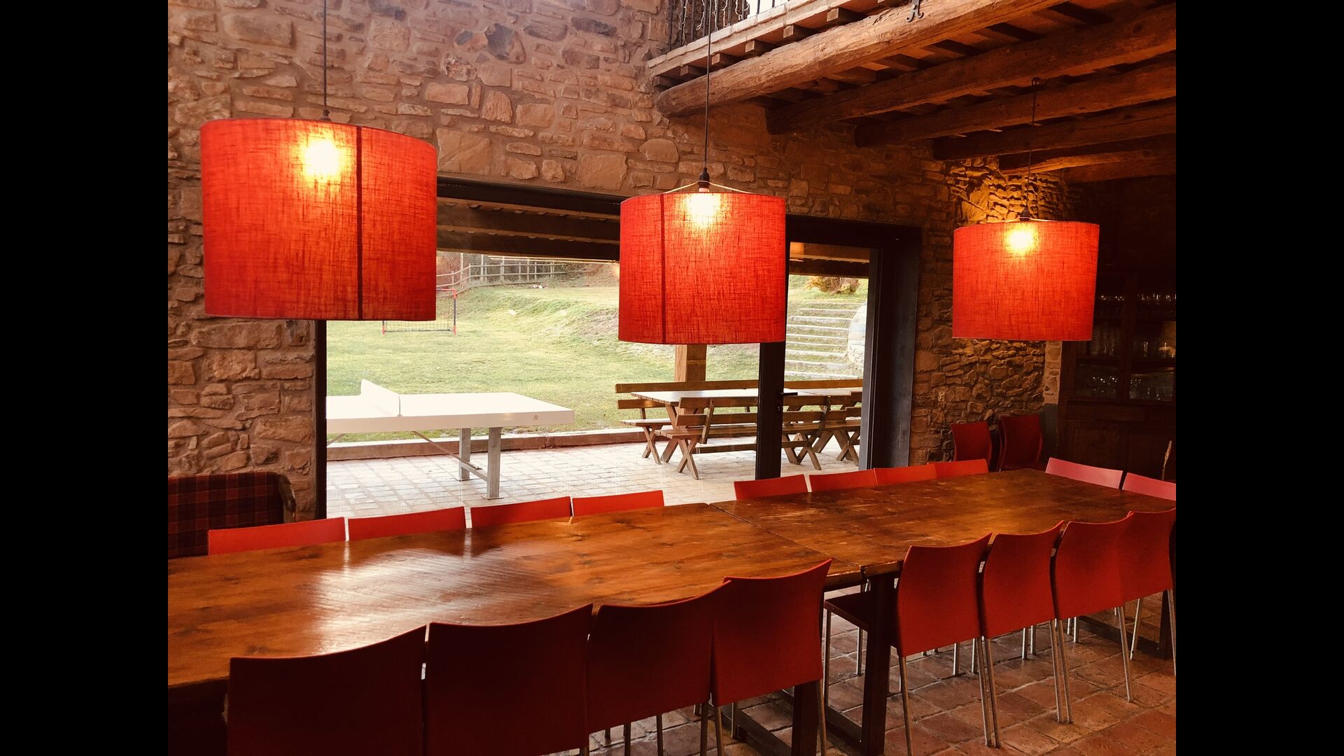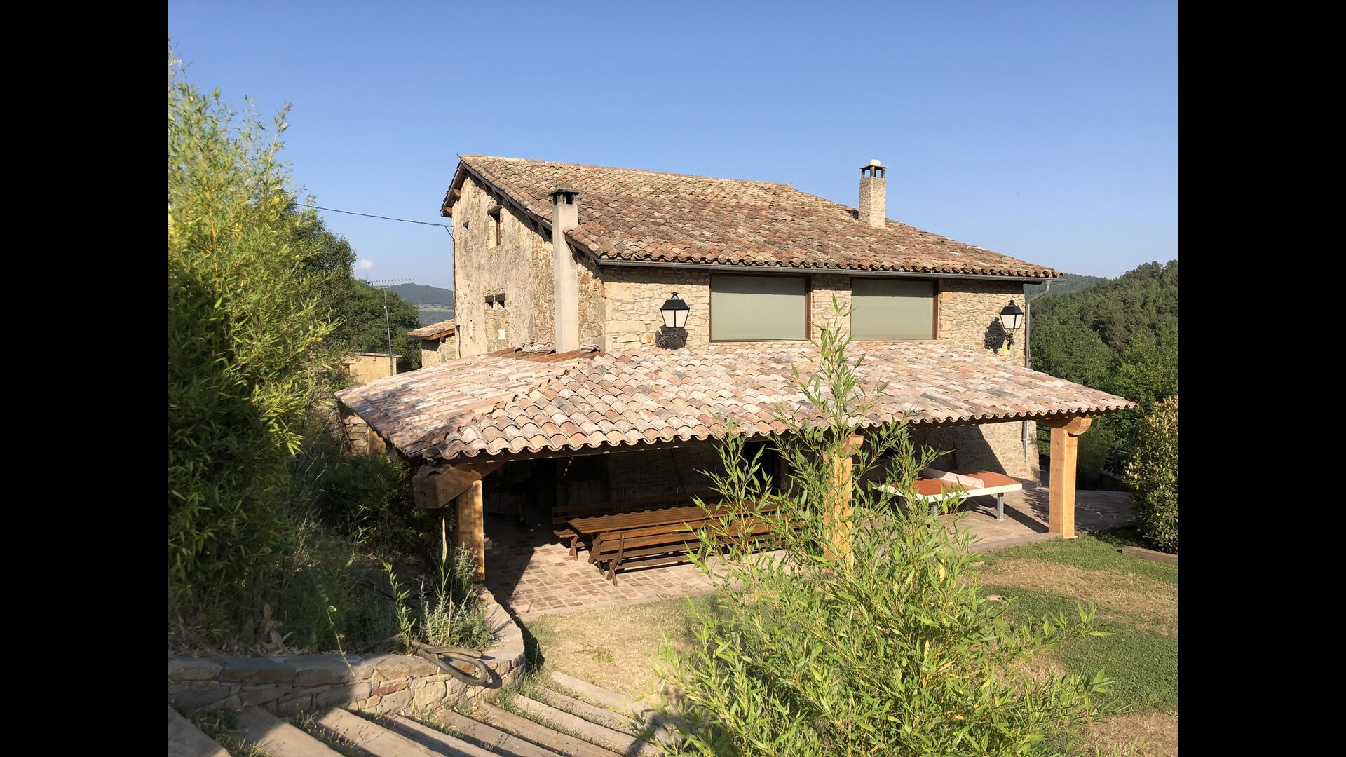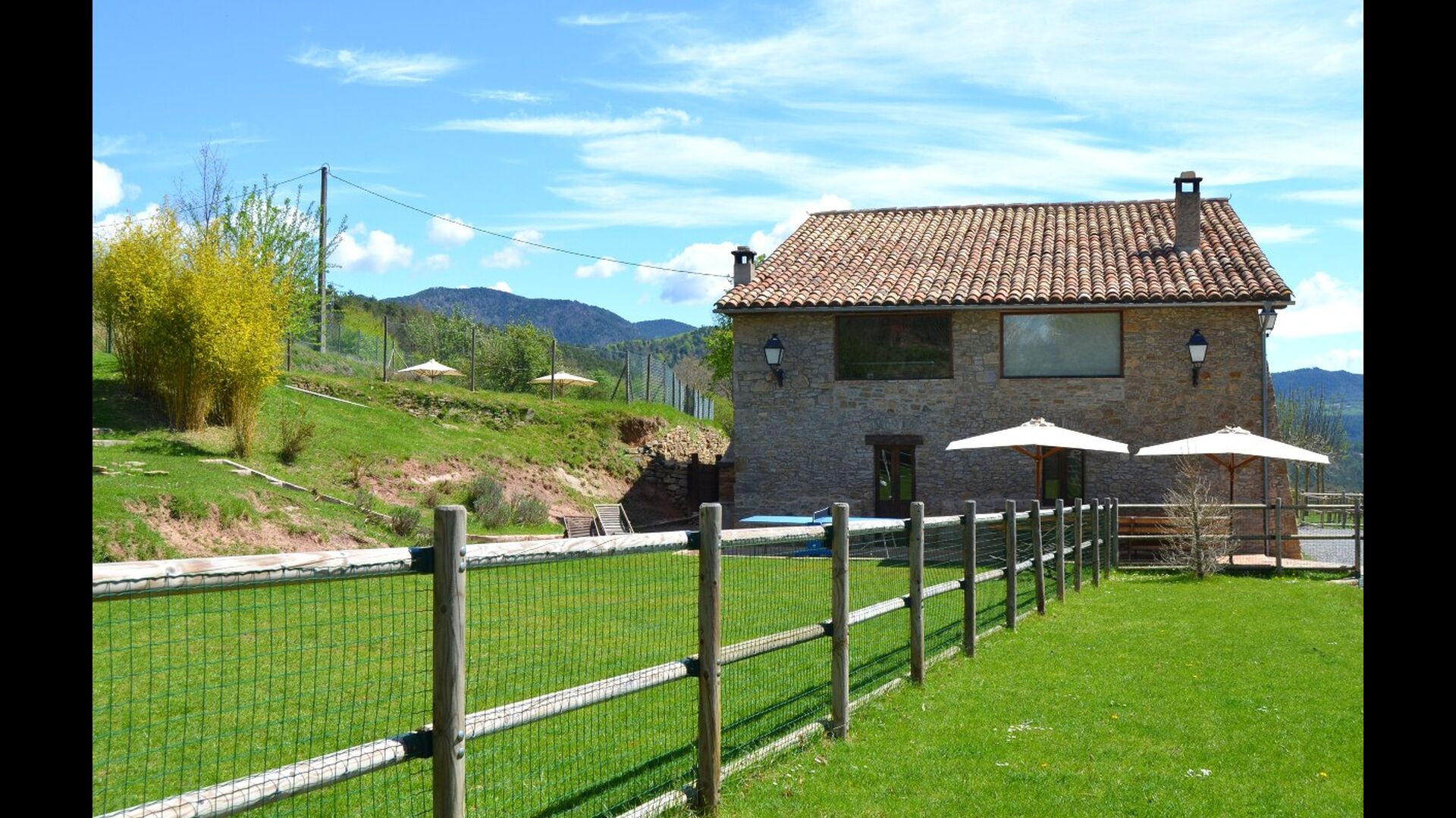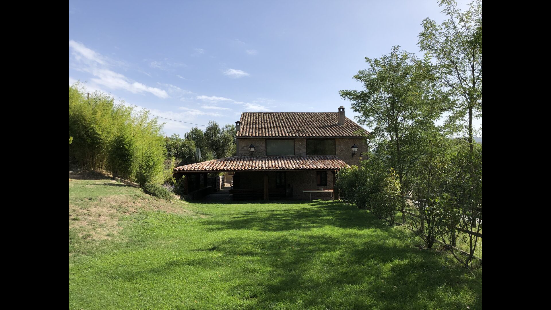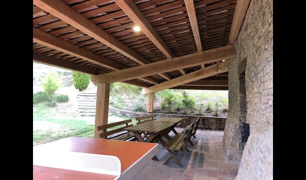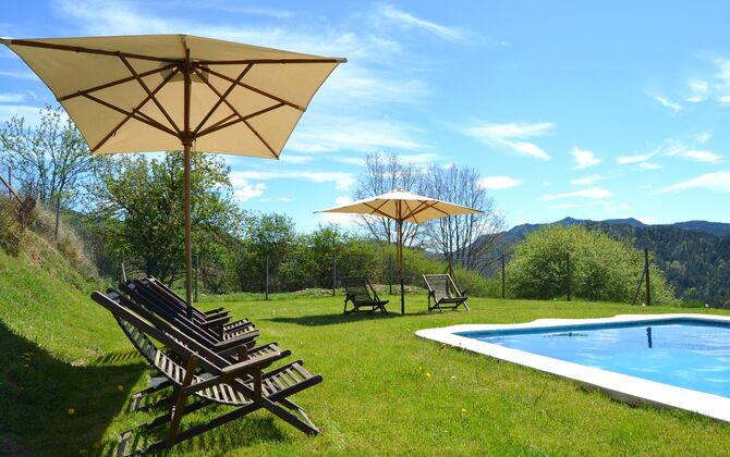 Casa Barnada lies at the beginning of the Pyrenees - a beautiful, large and family friendly holiday home of very high quality. The house is located slightly elevated above the sparsely crowded mountain road that connects Berga and Ripoll. Here you live in peace with the mountains in the background - a view that gives a unique and relaxed atmosphere. Bernador has a large garden with an elegant screening. With fencing and trees the holiday home is very private. There is a large lawn with space for ball games in one end. In the other end there is a large terrace – perfectly connected to the kitchen inside the house.