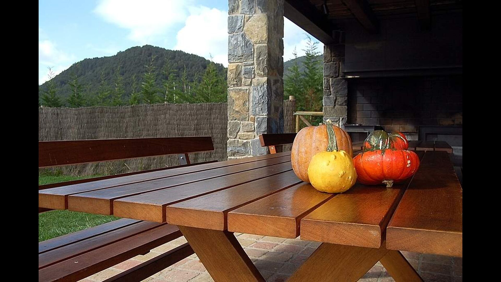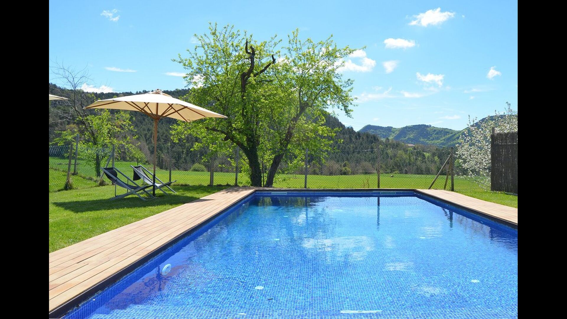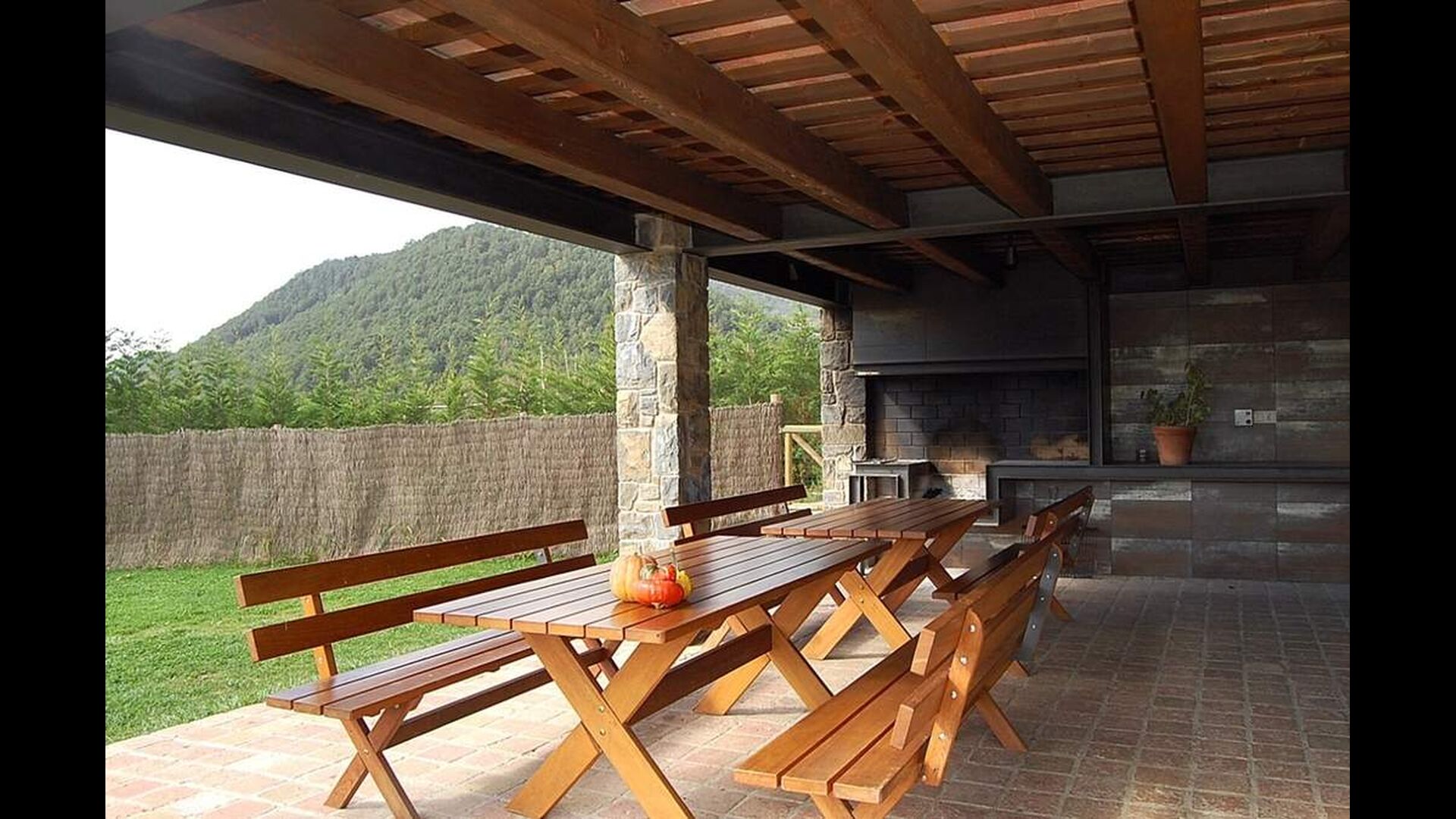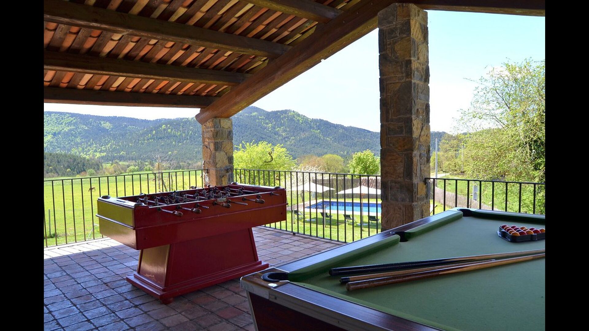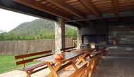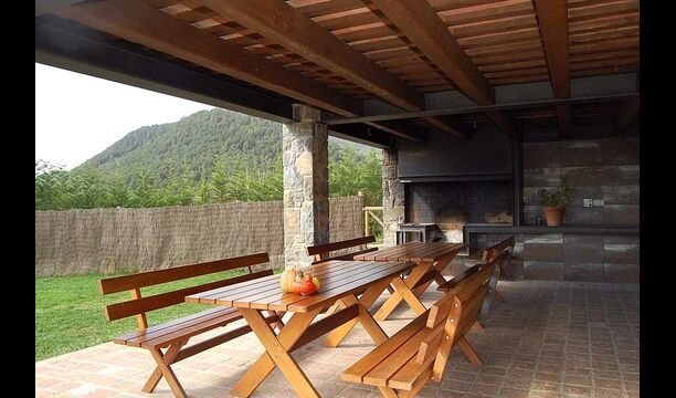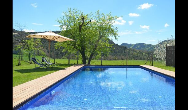 A l’exterior, Casa Ferrera disposa d’una terrassa coberta amb zona de menjador, que s’obre a àmplies zones enjardinades que condueixen a una piscina privada i tancada. Envoltats de natura i amb vistes obertes al paisatge i a les muntanyes, els espais exteriors són ideals per relaxar-se, menjar a l’aire lliure o perquè els infants juguin amb total seguretat.