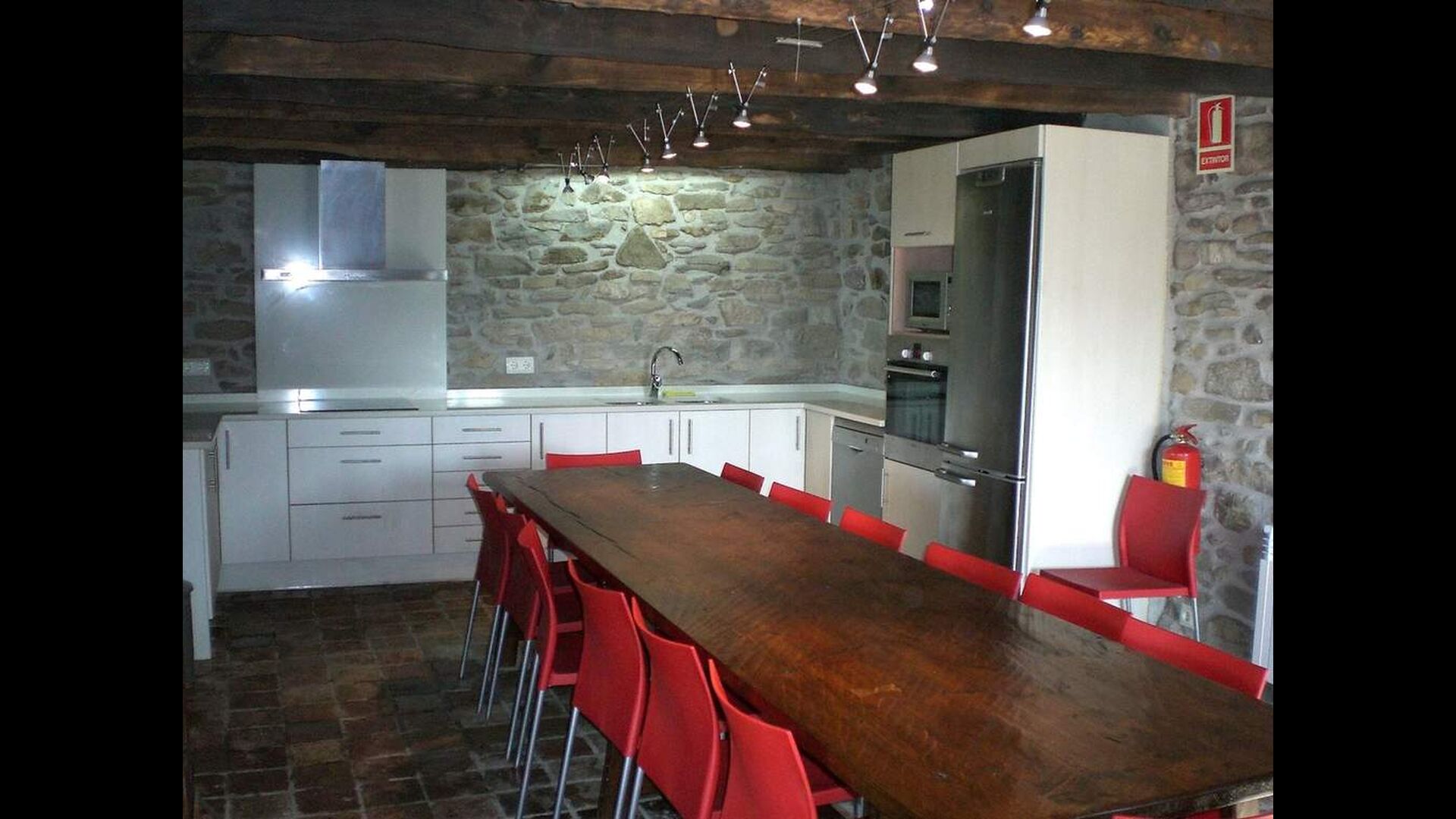 Casa Ferrera combina l’arquitectura tradicional catalana amb el confort modern. A la planta baixa hi ha una acollidora sala d’estar amb llar de foc i televisió, una àmplia zona de menjador perfecta per a àpats compartits i una cuina totalment equipada, pensada per a estades en grup. Un bany amb rentadora aporta un plus de comoditat per a estades prolongades.