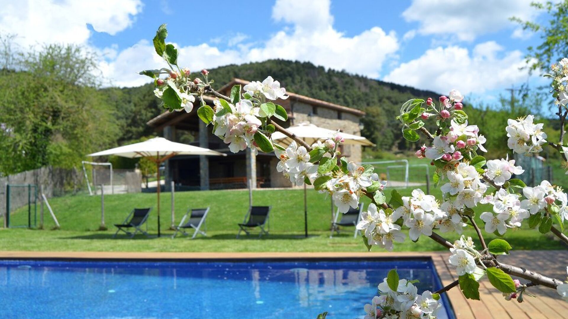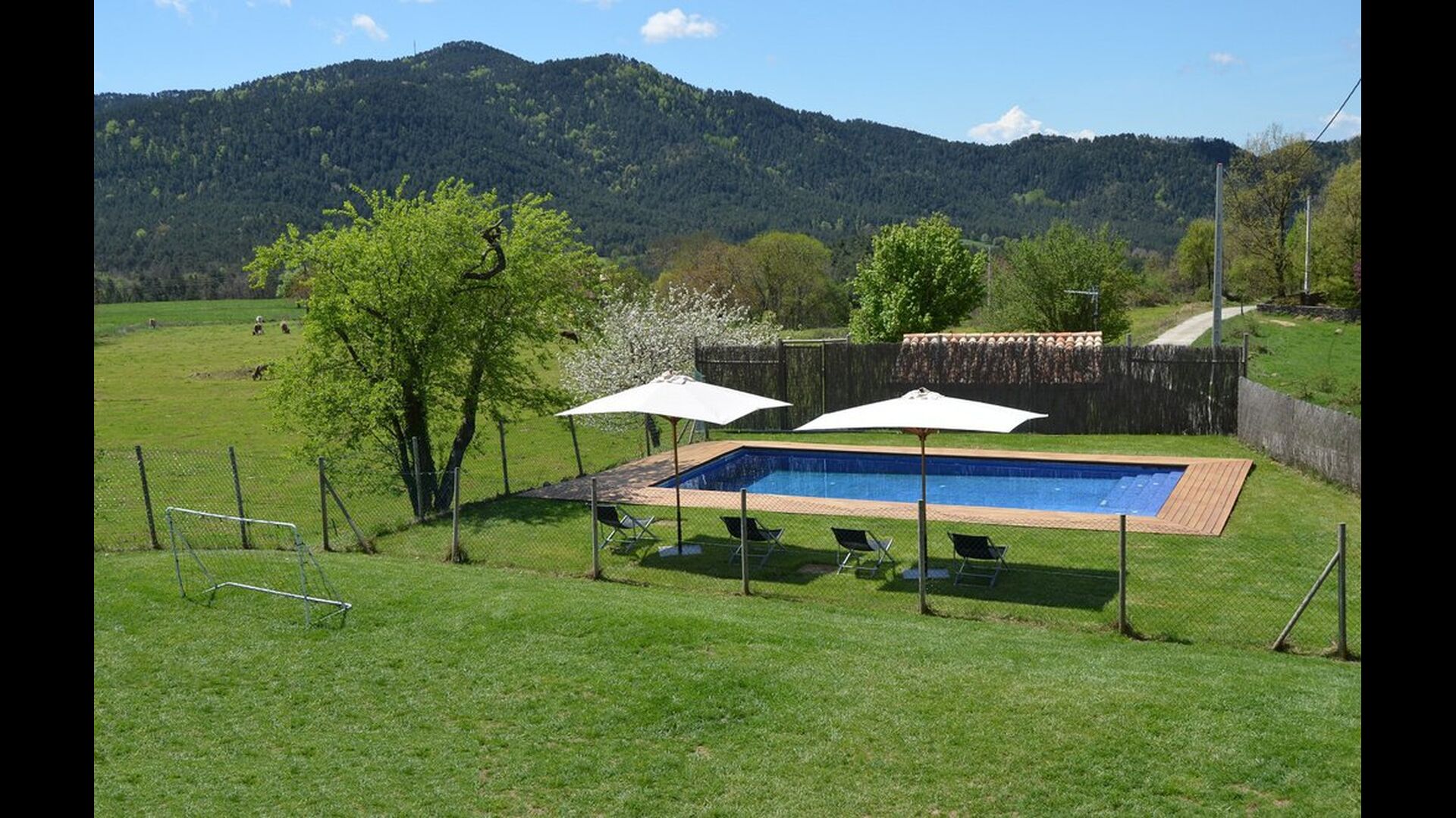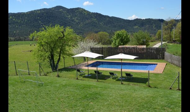 Situada entre prats verds i turons boscosos als peus dels Pirineus catalans, Casa Ferrera és una casa rural amb caràcter i de gran capacitat, ideal per a famílies nombroses o grups d’amics que busquen comoditat, privacitat i una autèntica experiència en plena natura.
