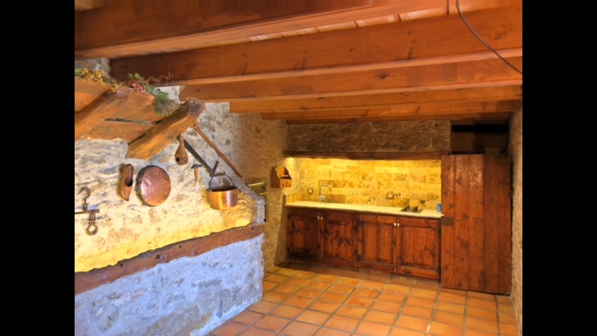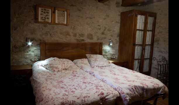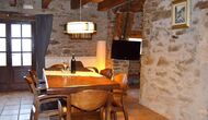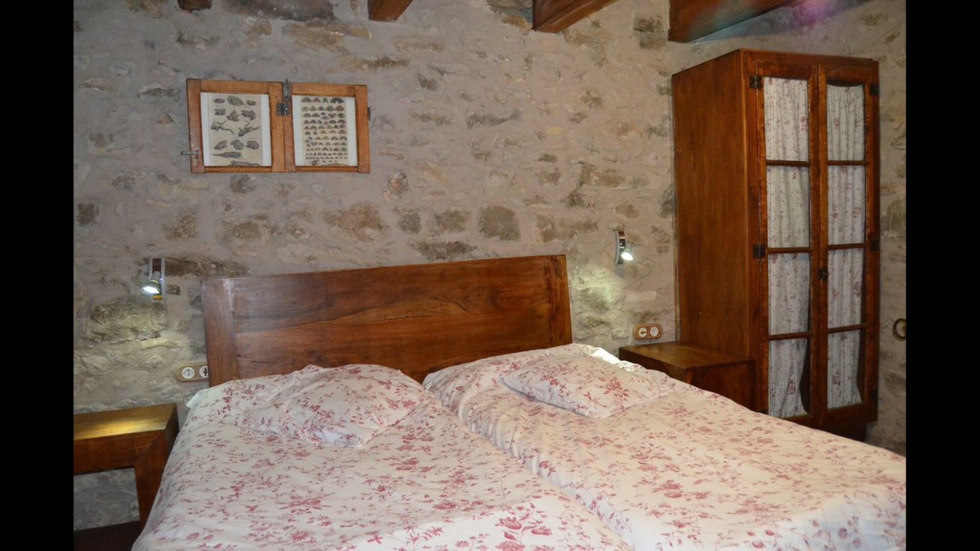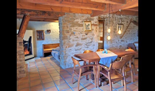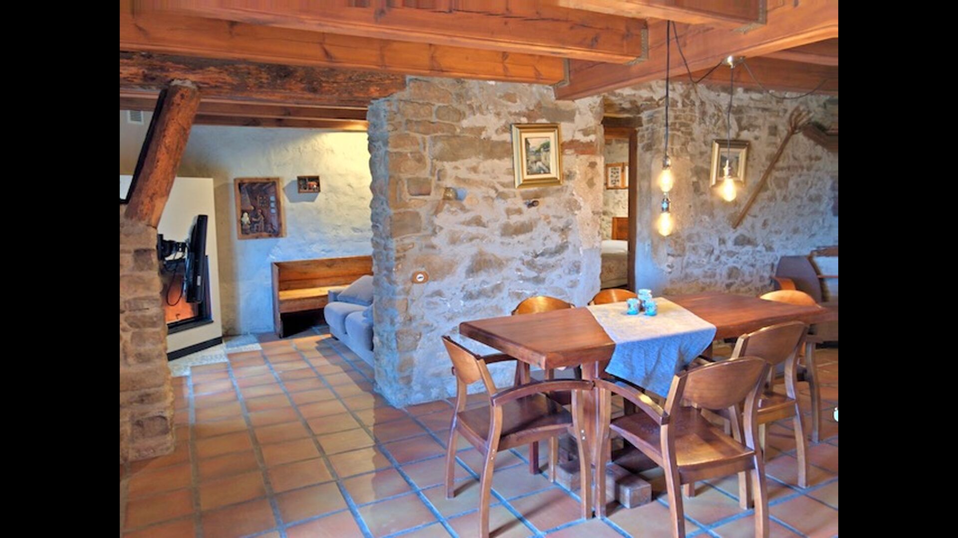 This apartment has a size of 100 m2. Overall it is arranged very authentic, and it is clear, that there is great respect for the original materials and structures. There are many small details that give a true Catalan atmosphere. The apartment has a small cozy sitting area with a fireplace and a TV, where you can read a book inside the shadows. Besides this there is a nice little dining room with a beautiful wooden table. Finally there is a kitchen with oven, dishwasher and other things. The apartment has its own patio area outside, where you can sit in the shade when it gets too hot under the sun. Here can the fresh mountain air and the quiet atmosphere be enjoyed. The best thing about the apartment is almost the breathtaking views that can be enjoyed in all directions. You can, especially in the evening hours, experience a wonderful calmness that is unique to the mountains.