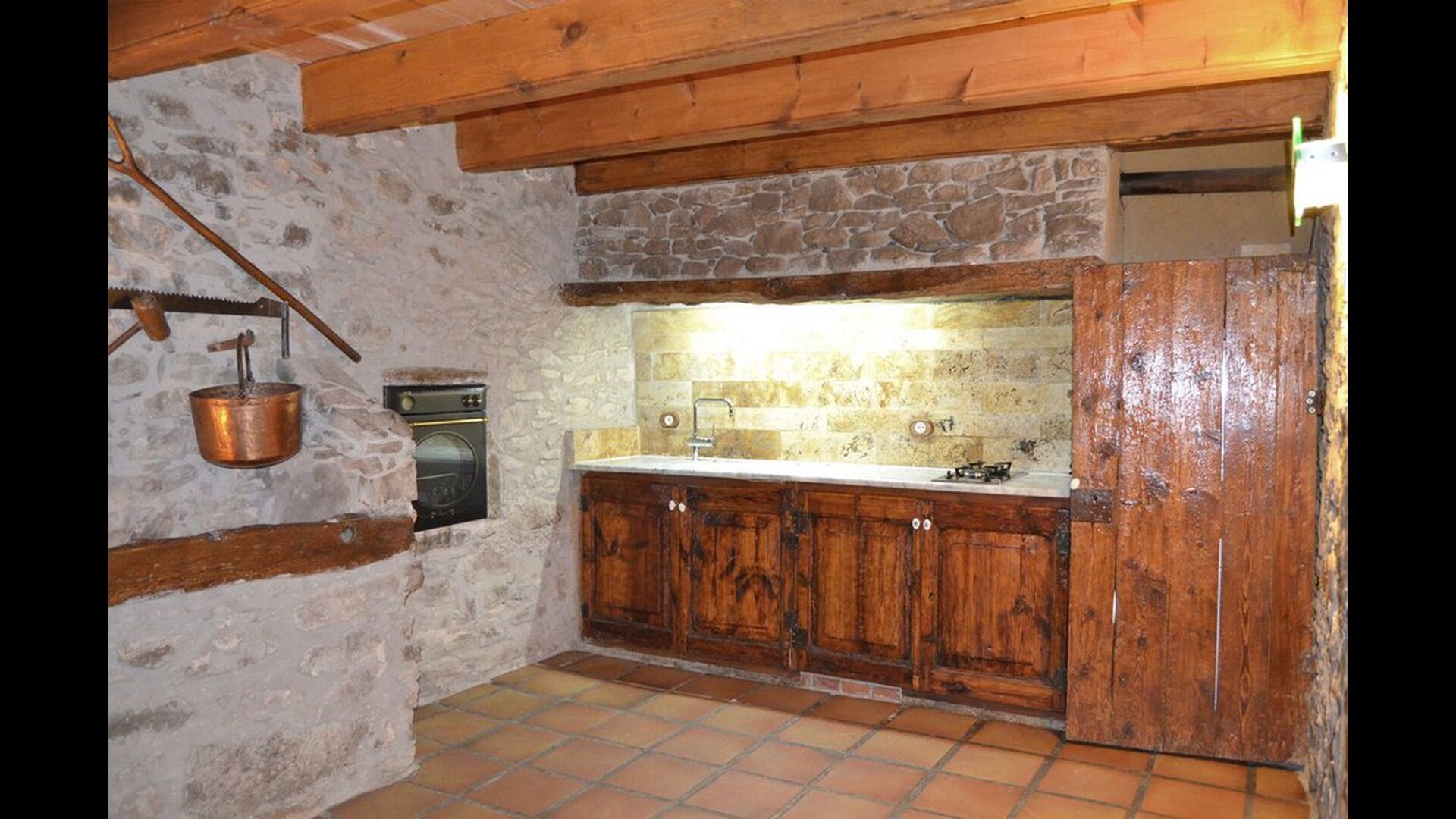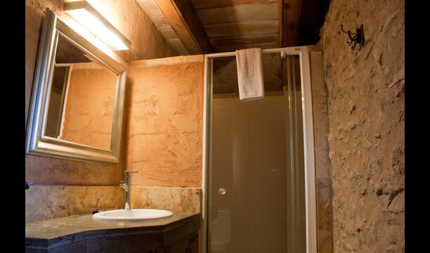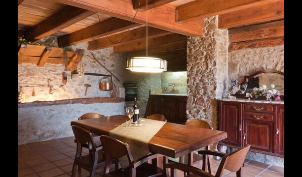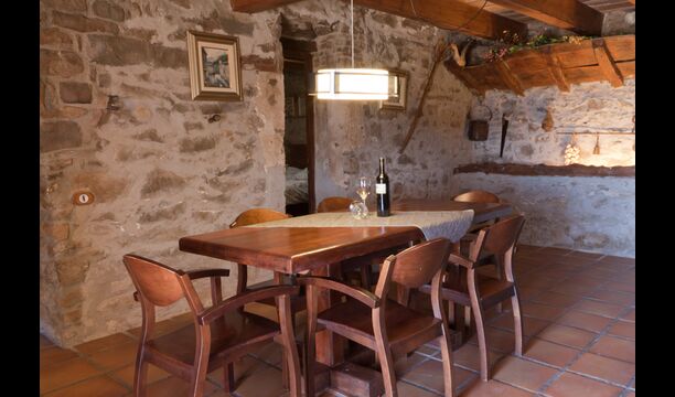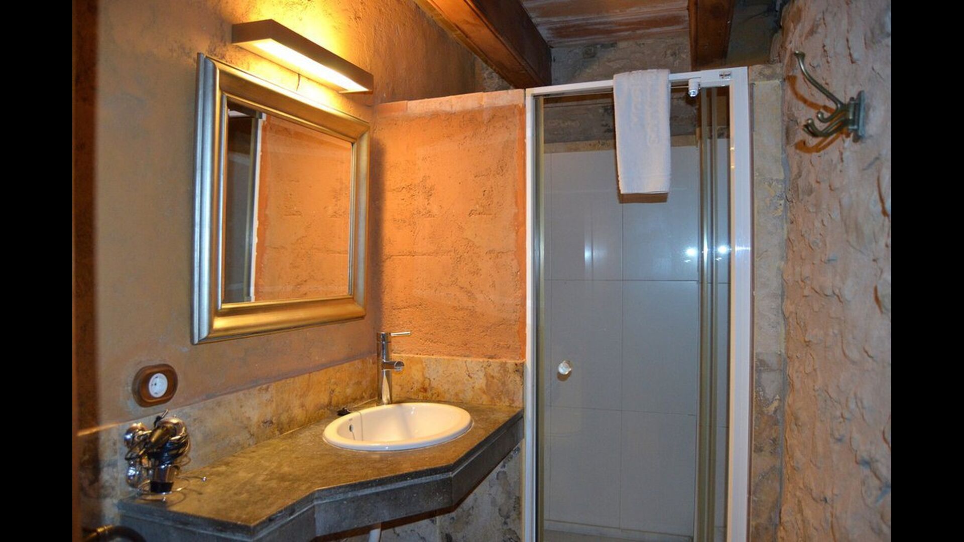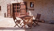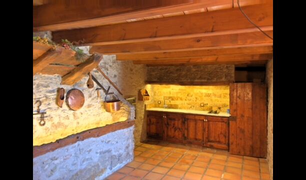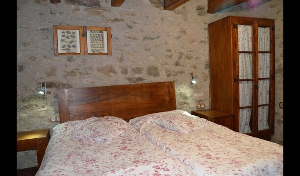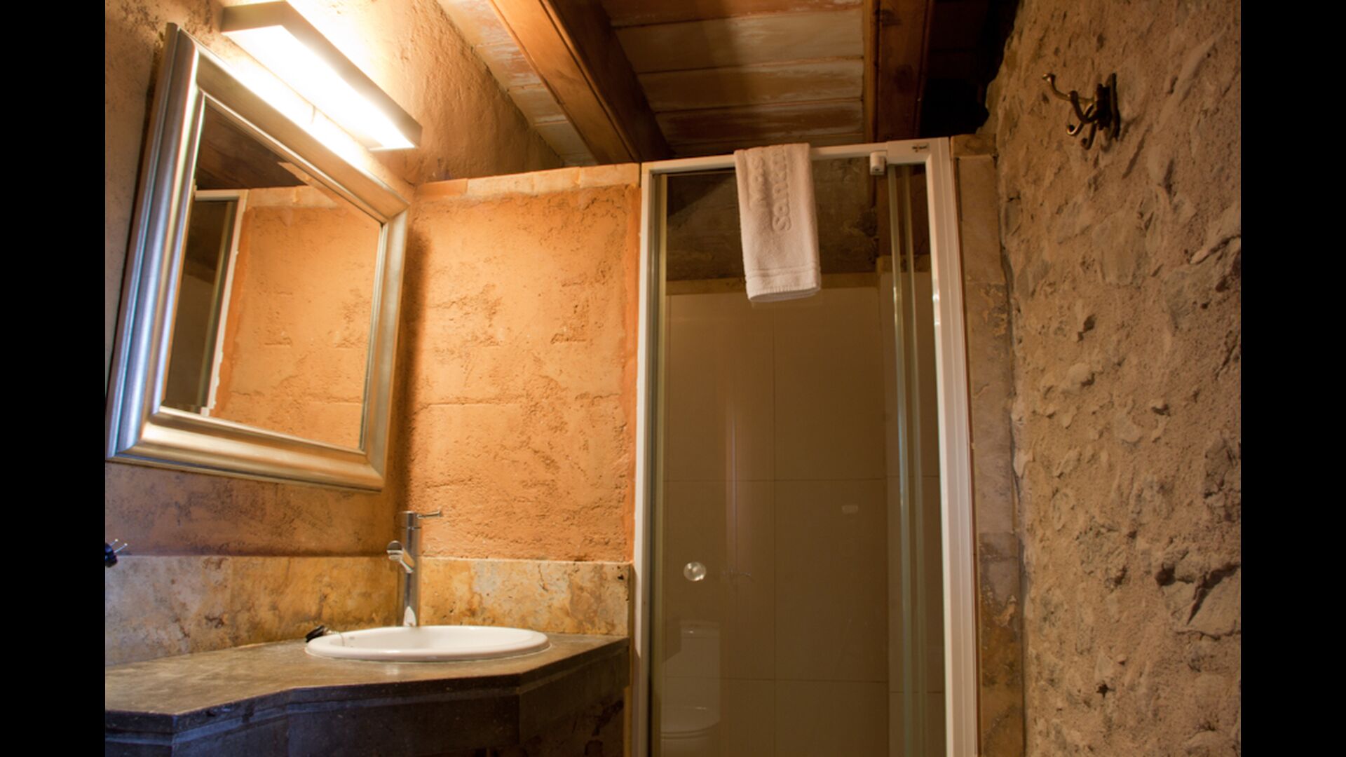This apartment has a size of 100 m2. Overall it is arranged very authentic, and it is clear, that there is great respect for the original materials and structures. There are many small details that give a true Catalan atmosphere. The apartment has a small cozy sitting area with a fireplace and a TV, where you can read a book inside the shadows. Besides this there is a nice little dining room with a beautiful wooden table. Finally there is a kitchen with oven, dishwasher and other things. The apartment has its own patio area outside, where you can sit in the shade when it gets too hot under the sun. Here can the fresh mountain air and the quiet atmosphere be enjoyed. The best thing about the apartment is almost the breathtaking views that can be enjoyed in all directions. You can, especially in the evening hours, experience a wonderful calmness that is unique to the mountains.