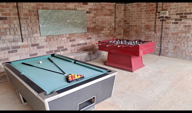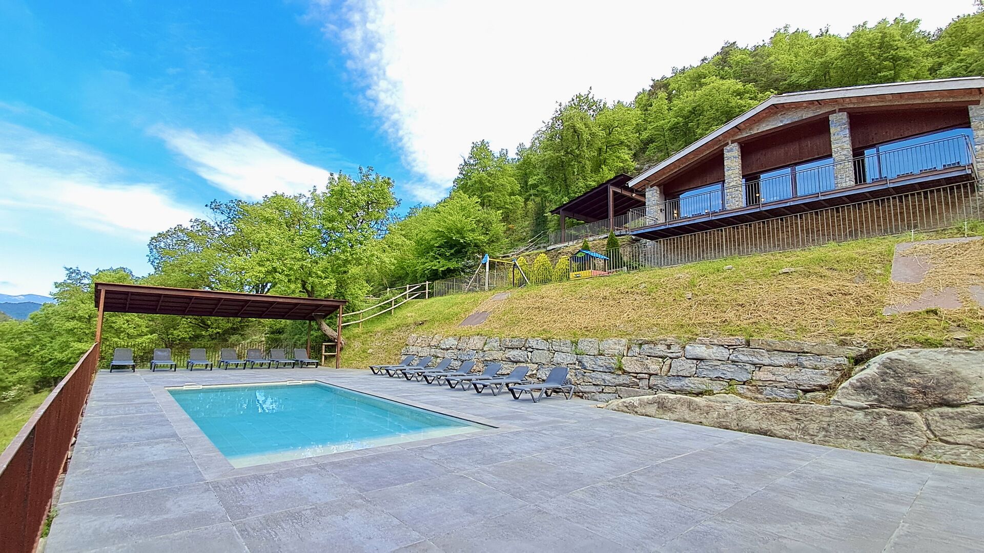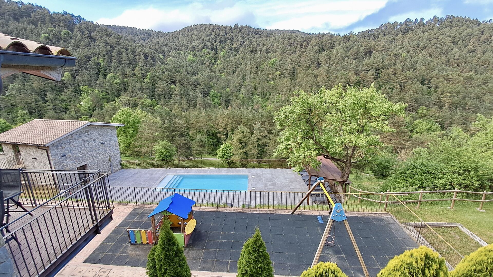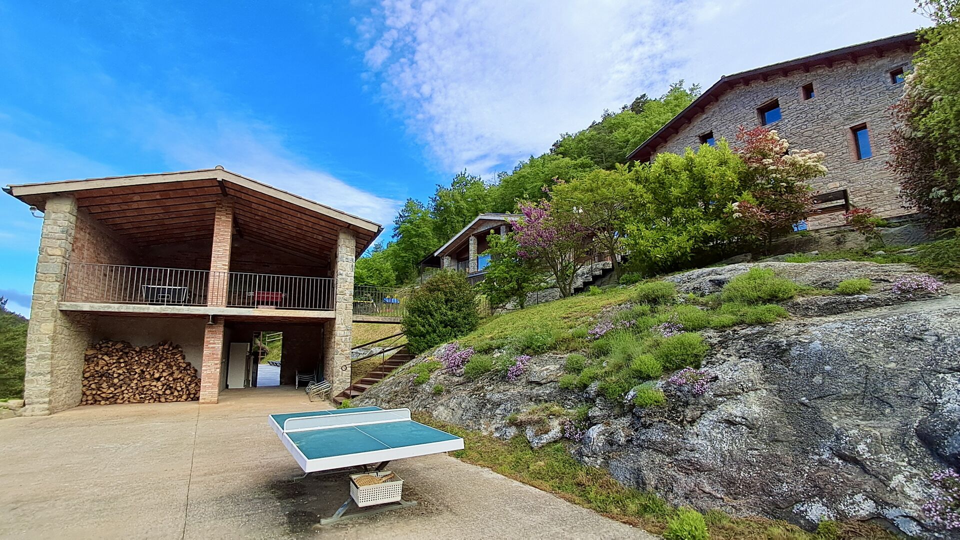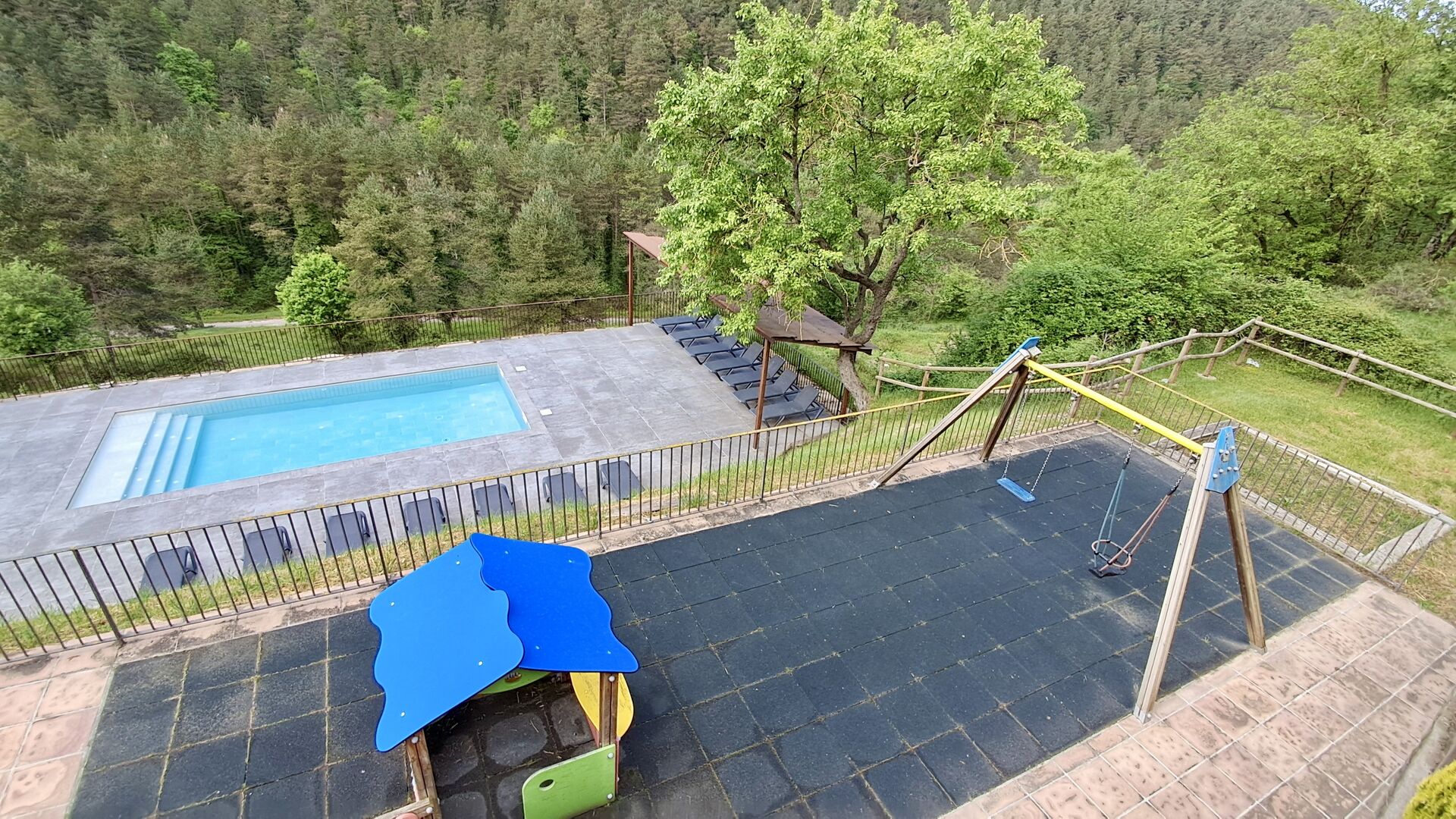 Els espais exteriors de La Beumela estan pensats per gaudir-ne en totes les estacions. Els hostes poden relaxar-se a la terrassa panoràmica assolellada, gaudir dels àpats a la zona de barbacoa amb taules exteriors o refrescar-se a la piscina exterior privada. Per a l’entreteniment, hi ha una zona de jocs coberta amb futbolí i billar, així com un espai infantil amb gronxadors, sorral i una caseta de jocs. També hi ha una petita pista multiesportiva i una zona de petanca.