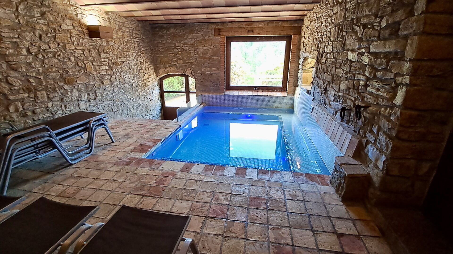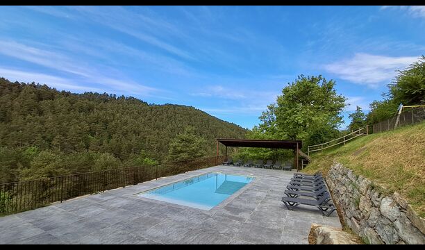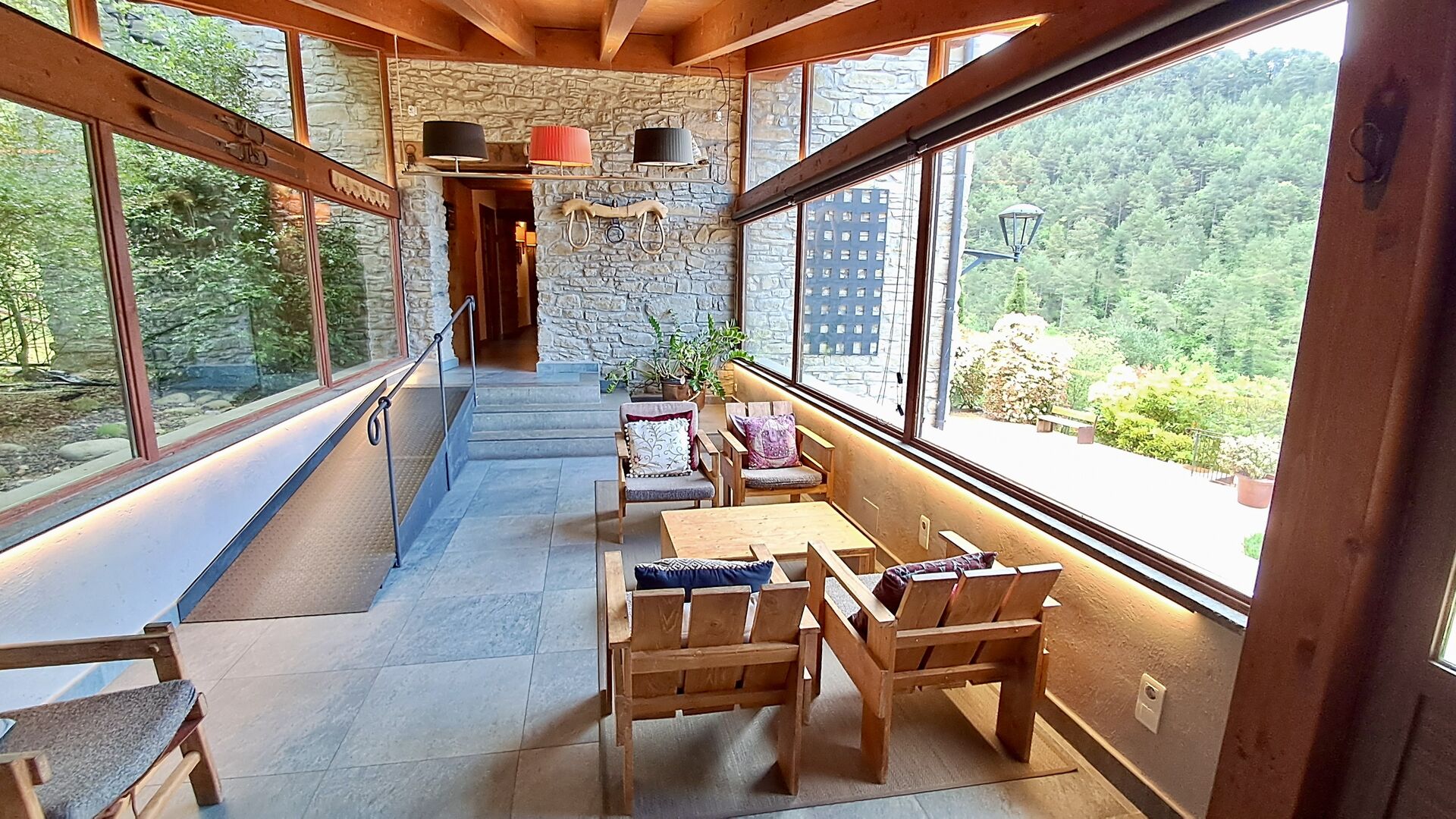 Un dels grans atractius és la piscina interior climatitzada amb zona de spa, que ofereix vistes espectaculars de la natura i un espai ideal per relaxar-se en qualsevol època de l’any.