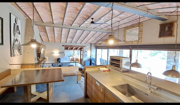 La finca ha estat completament renovada pensant en la comoditat, tot conservant l’encant arquitectònic i la identitat històrica de la masia original.
