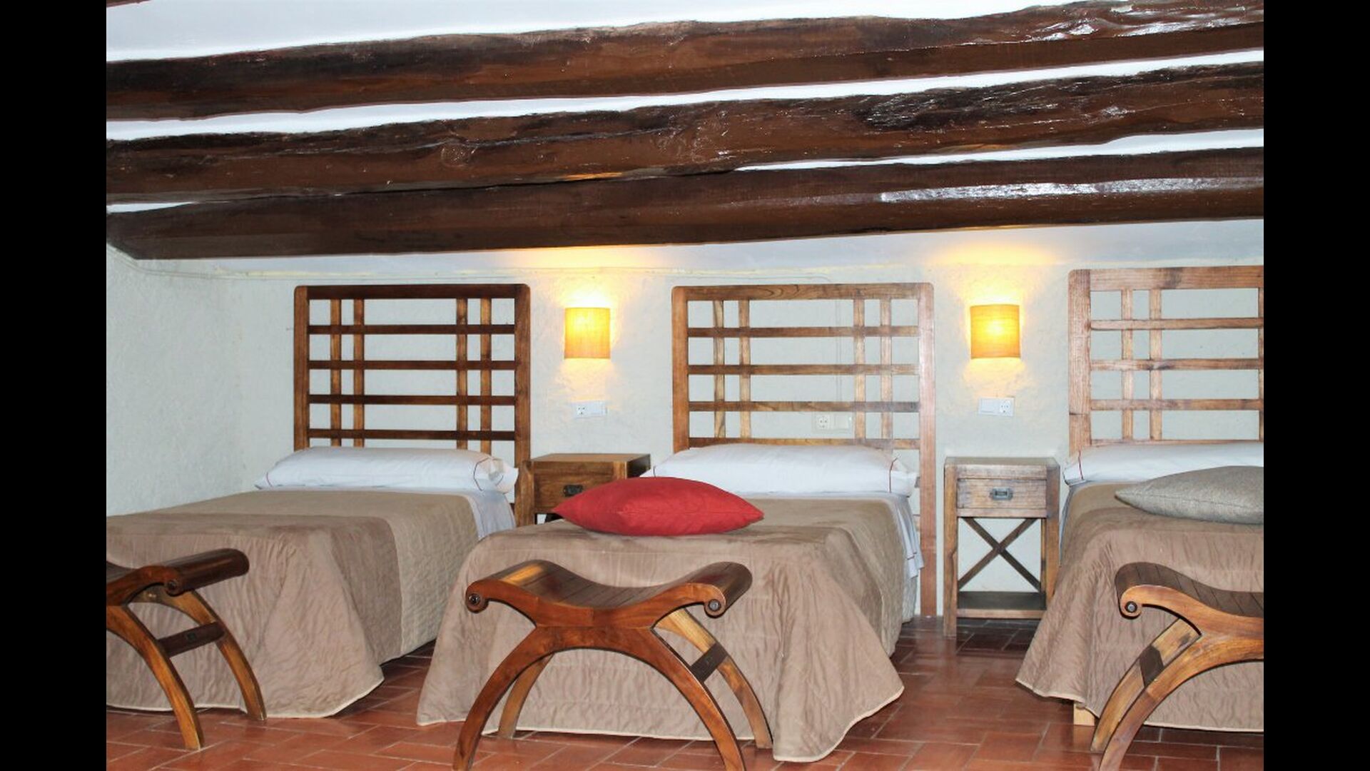 When you enter through the main door, there is a cosy living room with leather sofa, sitting area and large flat-screen TV. There are beautiful stone walls and beamed ceiling. Next to this, there is a well equipped kitchen with two refrigerators, large freezer, microwave, oven, coffee machine, dishwasher and much more. Connected to the kitchen, there is a cosy dining room with a nice table carved from one piece of wood and direct access to the garden