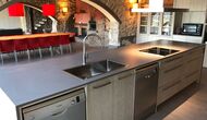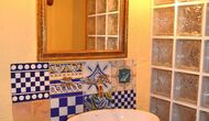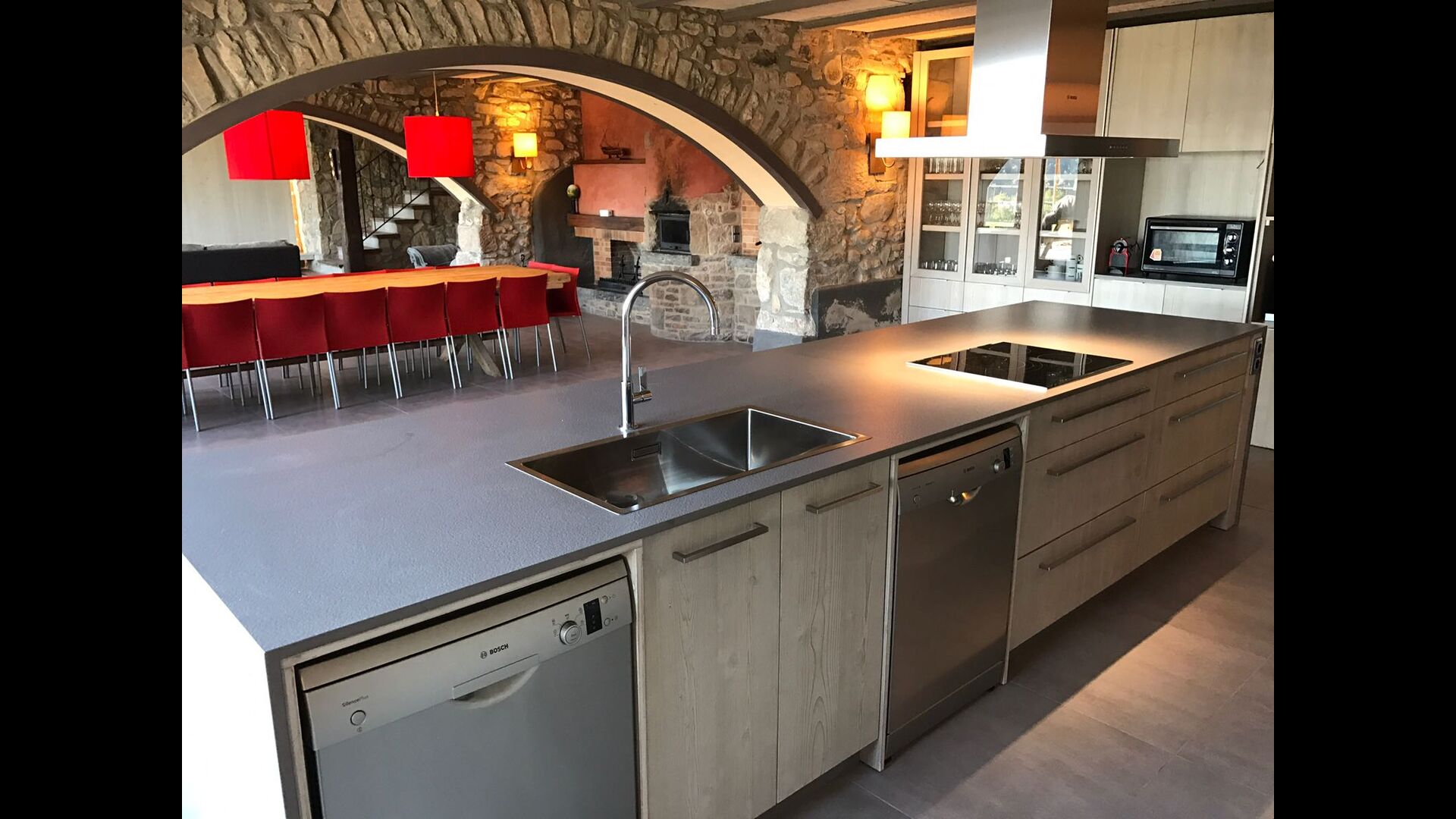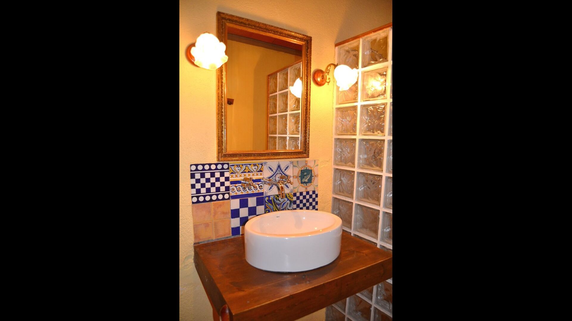 The ground floor of the house has 3 double doors, so you can open the house to the garden, connecting it with the living room and the dining area with a beautiful and very long wooden table. In addition, you will then have easy access to the big, well-equipped and functional kitchen with dishwasher, ceramic hotplates, oven, microwave, two fridges, freezer, Nespresso, toaster and electric paella pan. Furthermore, there is a toilet with shower, useful when you are in the garden.