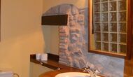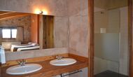The second floor is divided in two parts. In one end, there is a big room with seven beds, ideal for children sleeping together. It has a big bathroom with two washbasins, a separate shower and a separate toilet. In the other end, there are two double rooms and a triple room each with bathrooms ensuite.