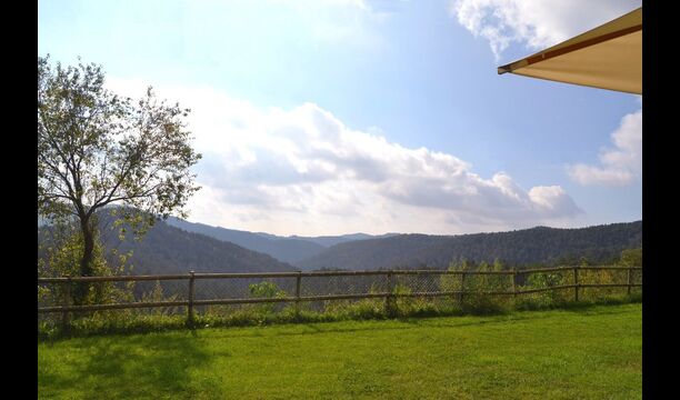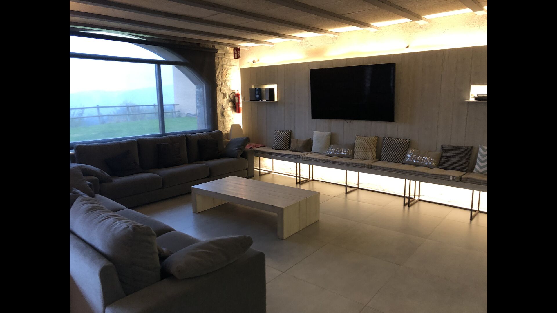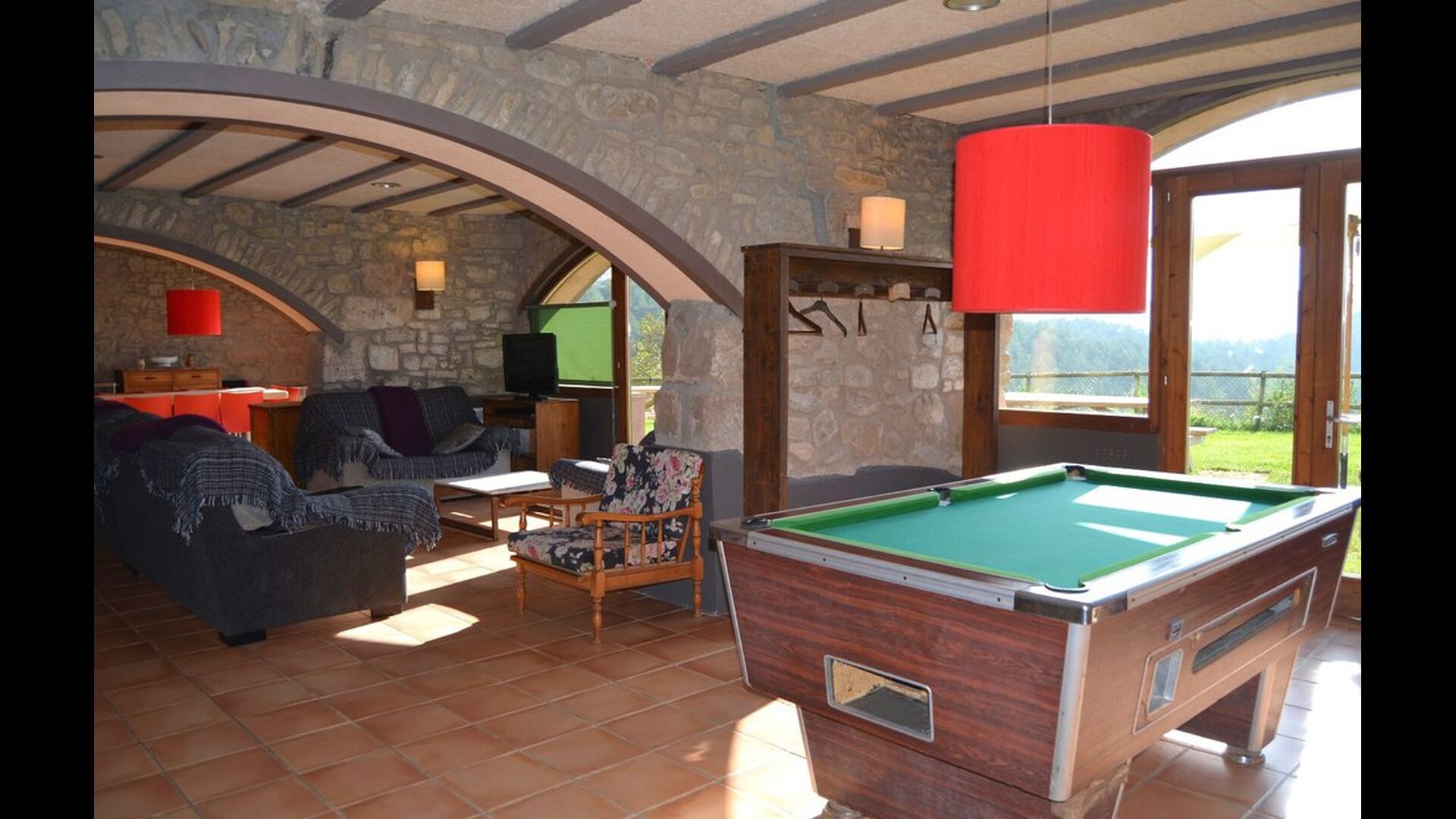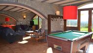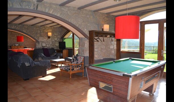 The big quality of this house is the possibility of being together. All facilities are centred in the big garden, where you can also play ball. You can be at the terrace with barbecue, by the swimming pool or in the game room, and still feel that you are all together. Moreover, the view from the garden is spectacular, as it faces a big valley with forest and in the distance fields and small villages.