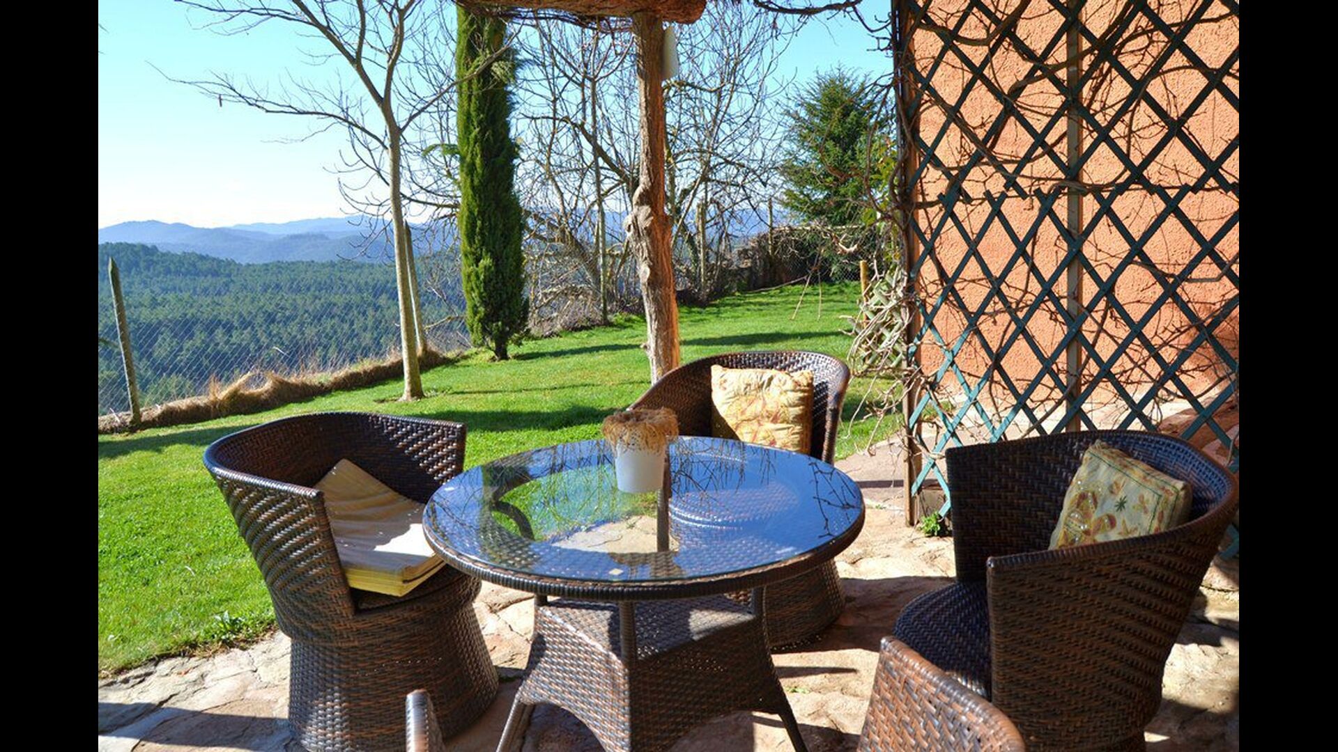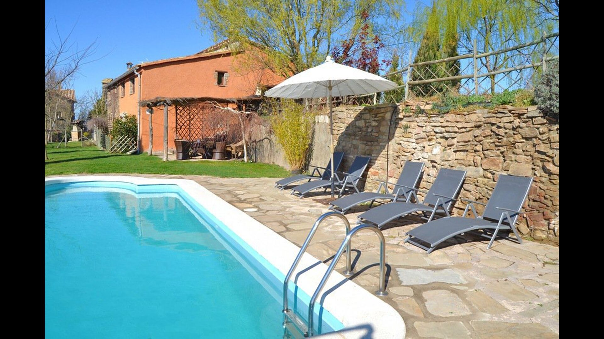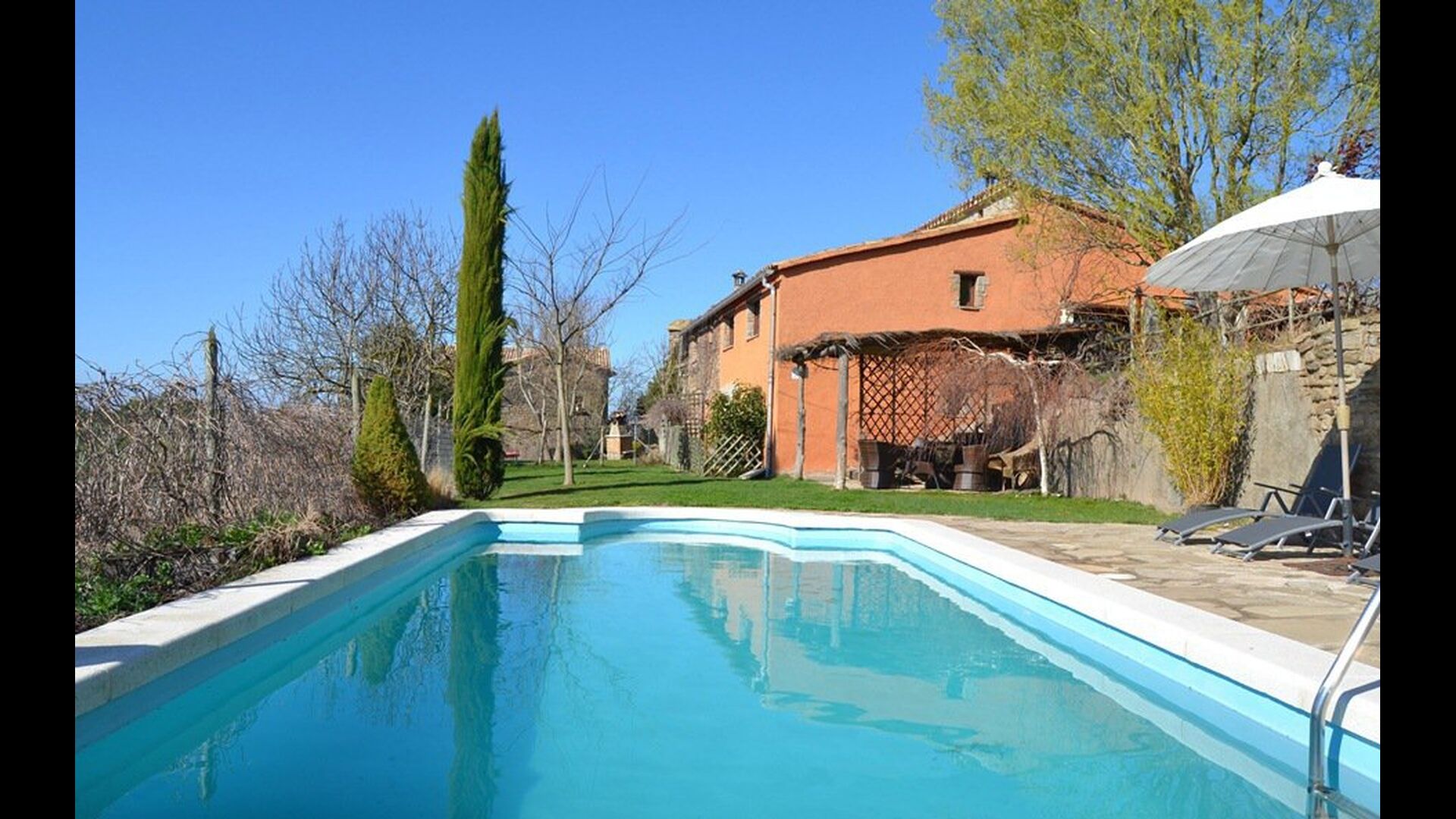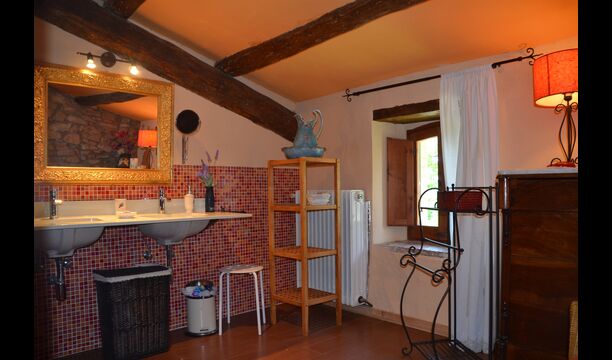 Can Salvatore - Masova is a 250m2 house situated in beautiful surroundings on the top of a hill. On the ground lies a second holiday home, each with its own private garden, swimming pool, terraces and BBQ area. The only thing that the two holiday homes share is a playground which also has a table tennis. The location in the very heart of Catalonia is really ideal! It is 4.km. from the village Olost, 15 km. to the beautiful city of Vic, which has a fabulous market on Tuesdays and Saturdays, and there are just 75 km. to Barcelona and 100km. Costa Brava.