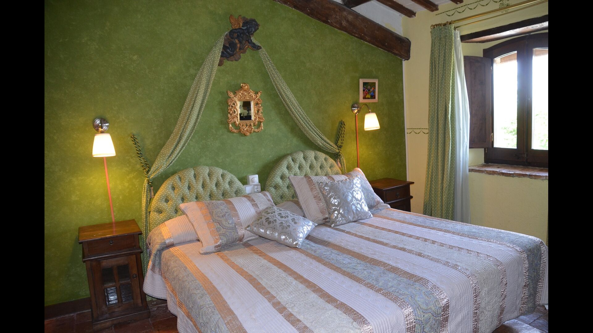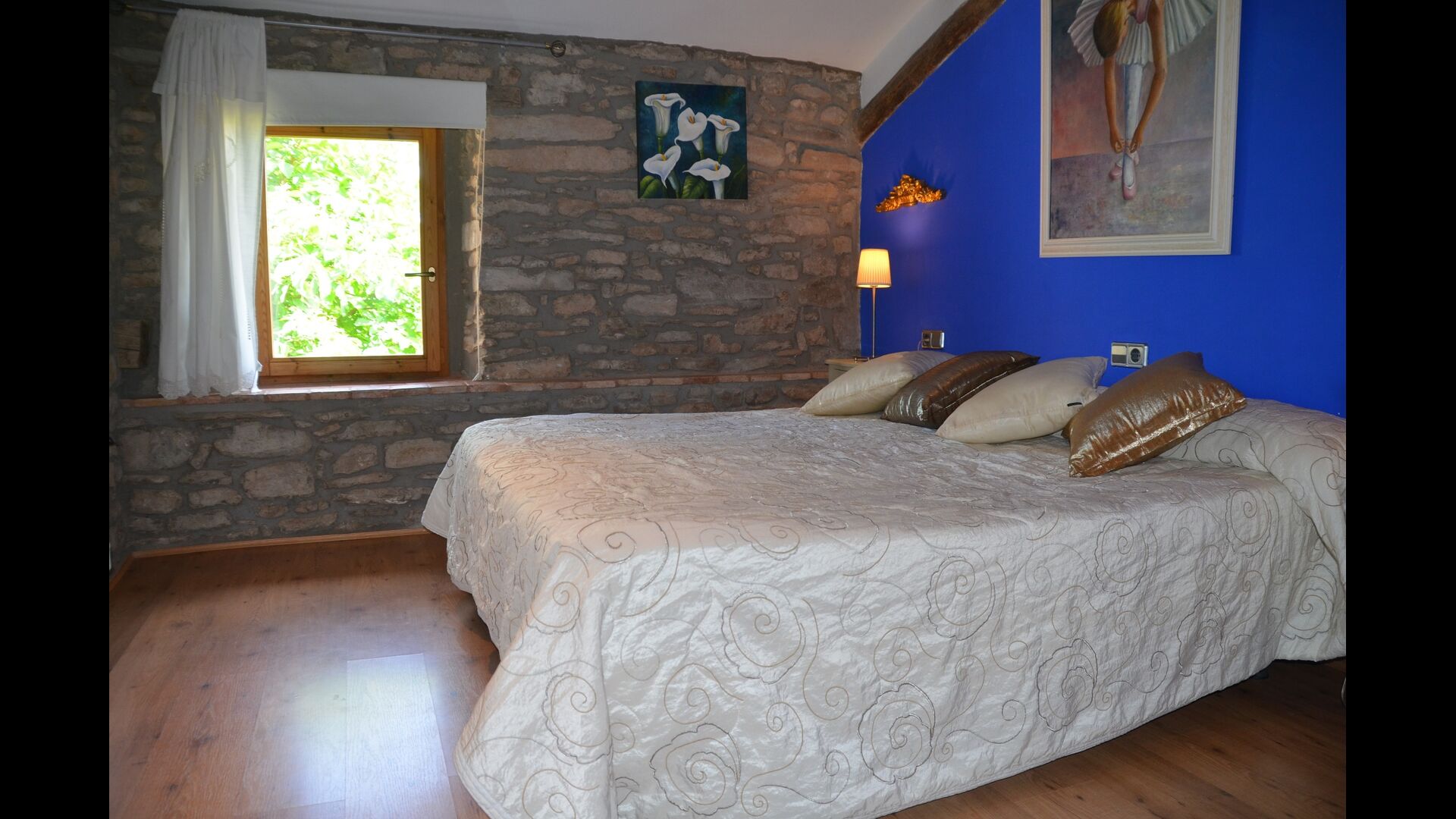 The holiday home has two floors,has room for 12+3 guests and it is lovingly decorated. Can Salvatore - Masova has 5 bedrooms, which are all decorated with extraordinary materials and there is really gone the extra mile in order to create extraordinary and cozy rooms. All 5 bedrooms have TV. One Each room is decorated in a unique color and a sort of theme, making each room very personal and each room has its very own charm. There are also five bathrooms in the house, where as one is ensuit.