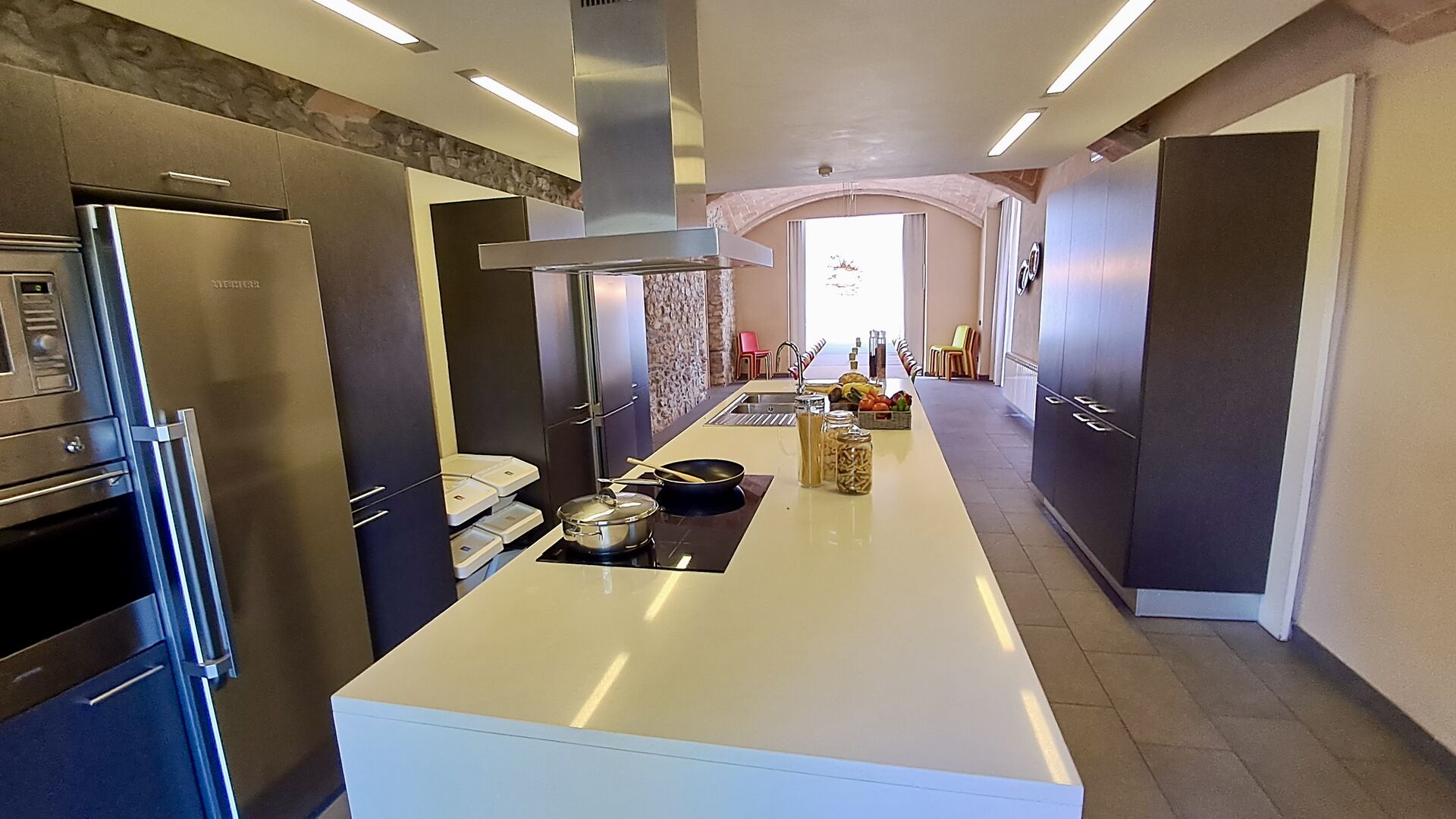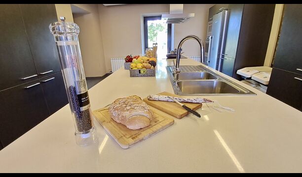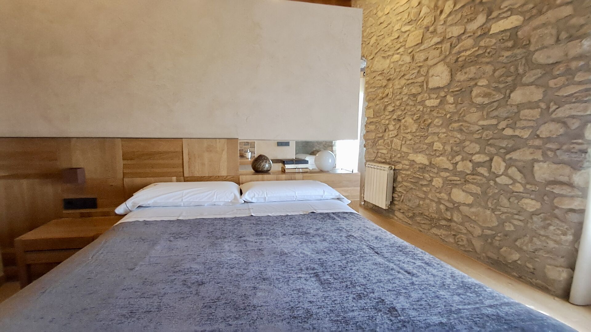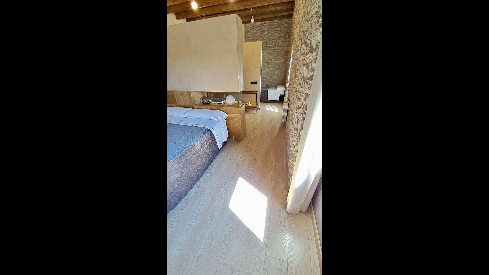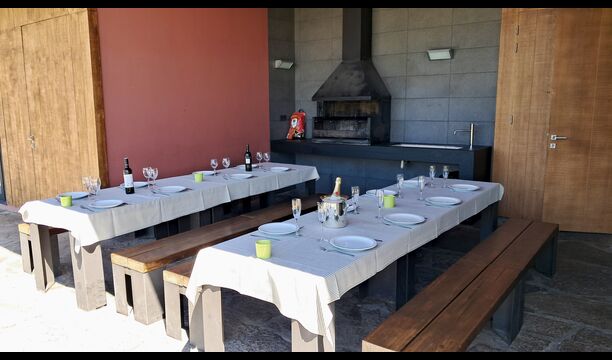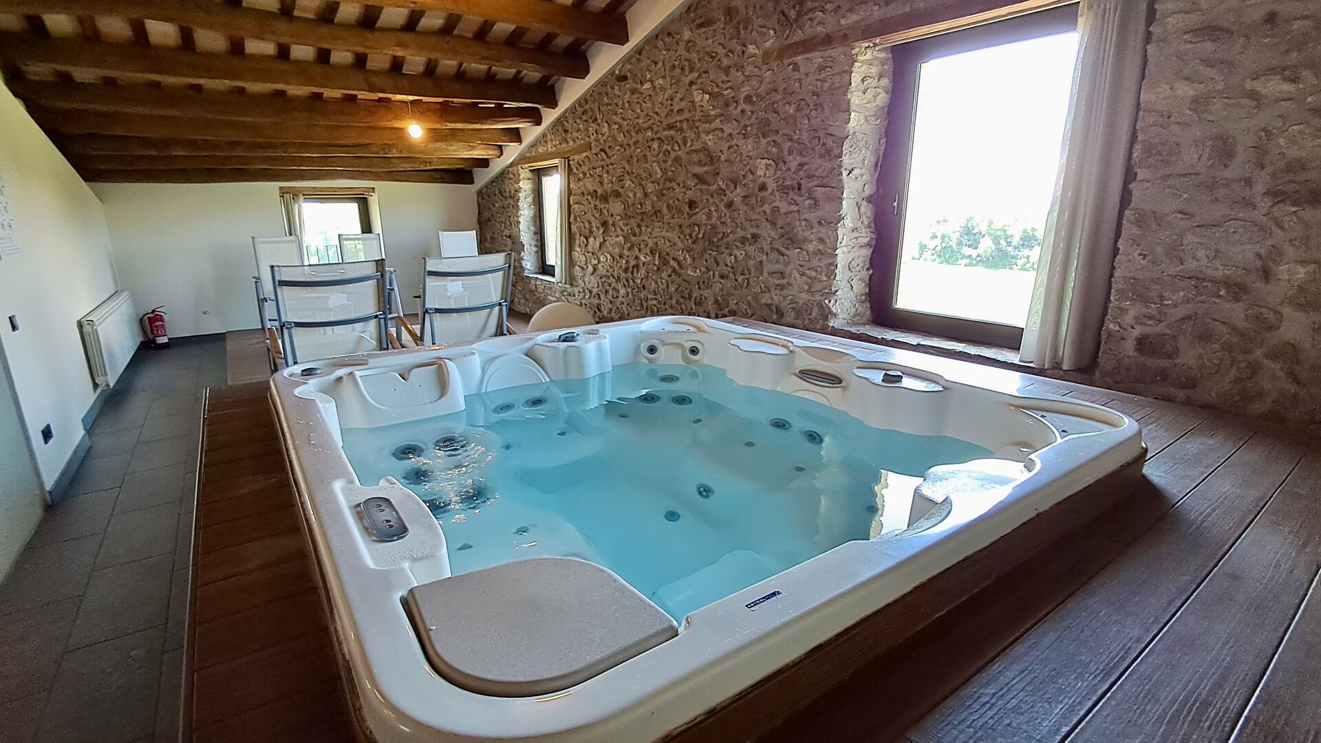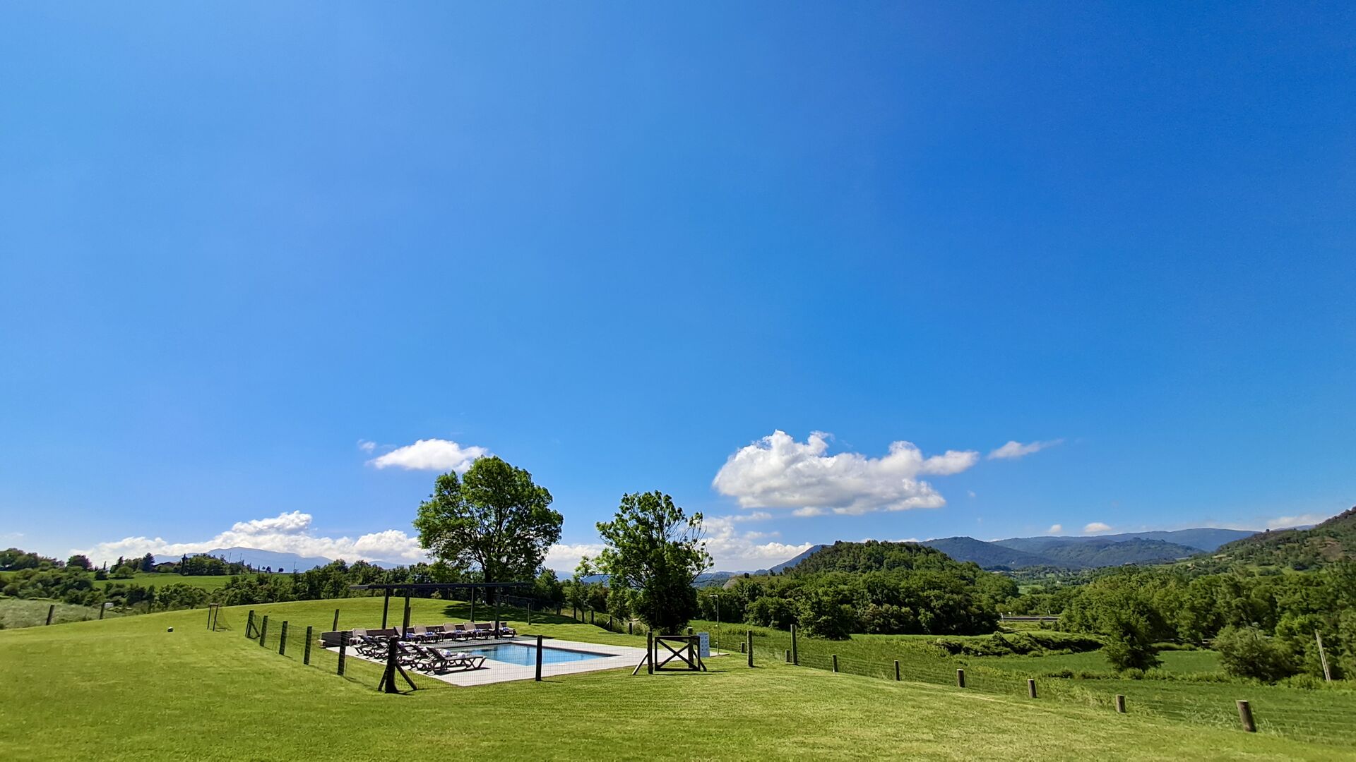 Els 2000 m2 de jardí que la rodegen tenen la seva pròpia piscina privada amb hamaques. A més a més, també te una terrassa coberta amb BBQ, una pica i aigua, on pots gaudir de les càlides i encantadores tardes. La cuina, que està situada amb un accés fàcil a la terrassa, té totes les facilitats modernes que un pot necessitar – cafetera nespresso, forn, microones, dues neveres i una preciosa taula llarga a l’estil tradicional. En resum, aquesta casa rural és la perfecte pels convidats, que busquen el millor confort.